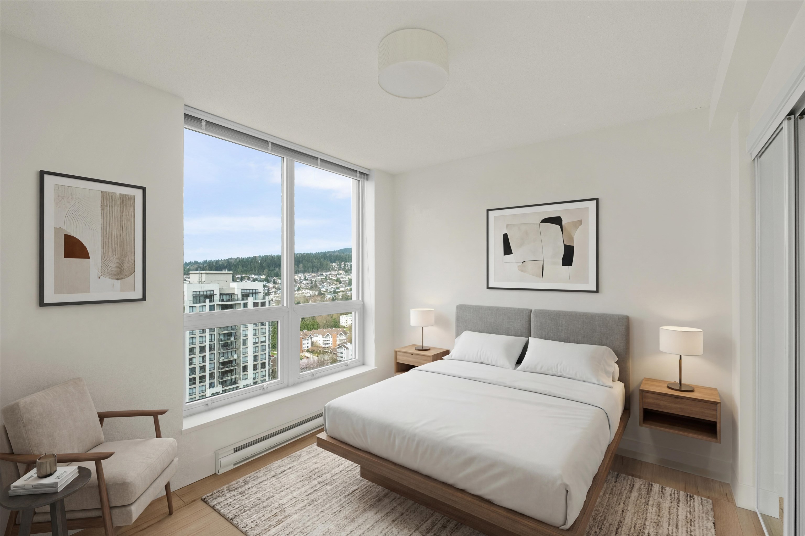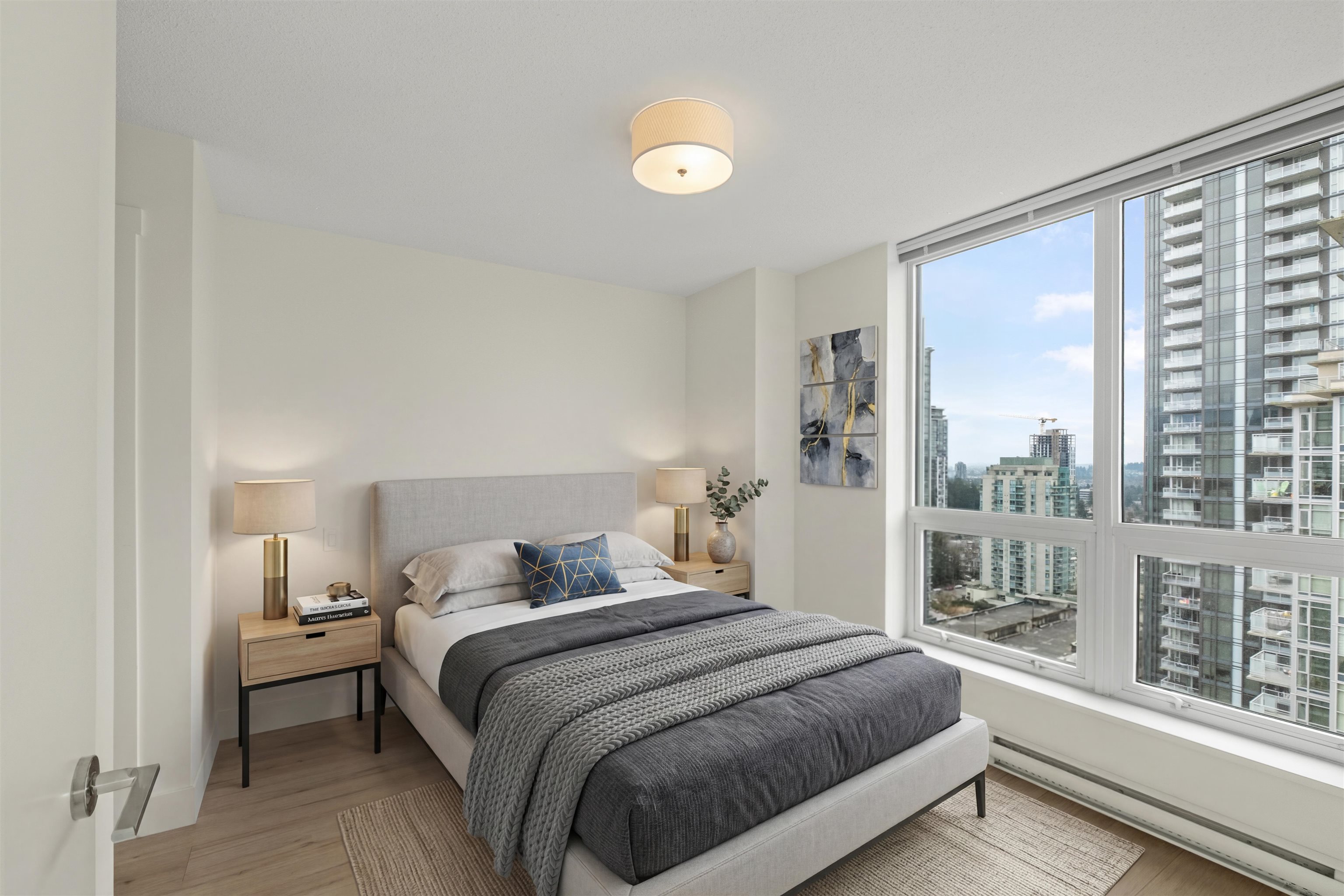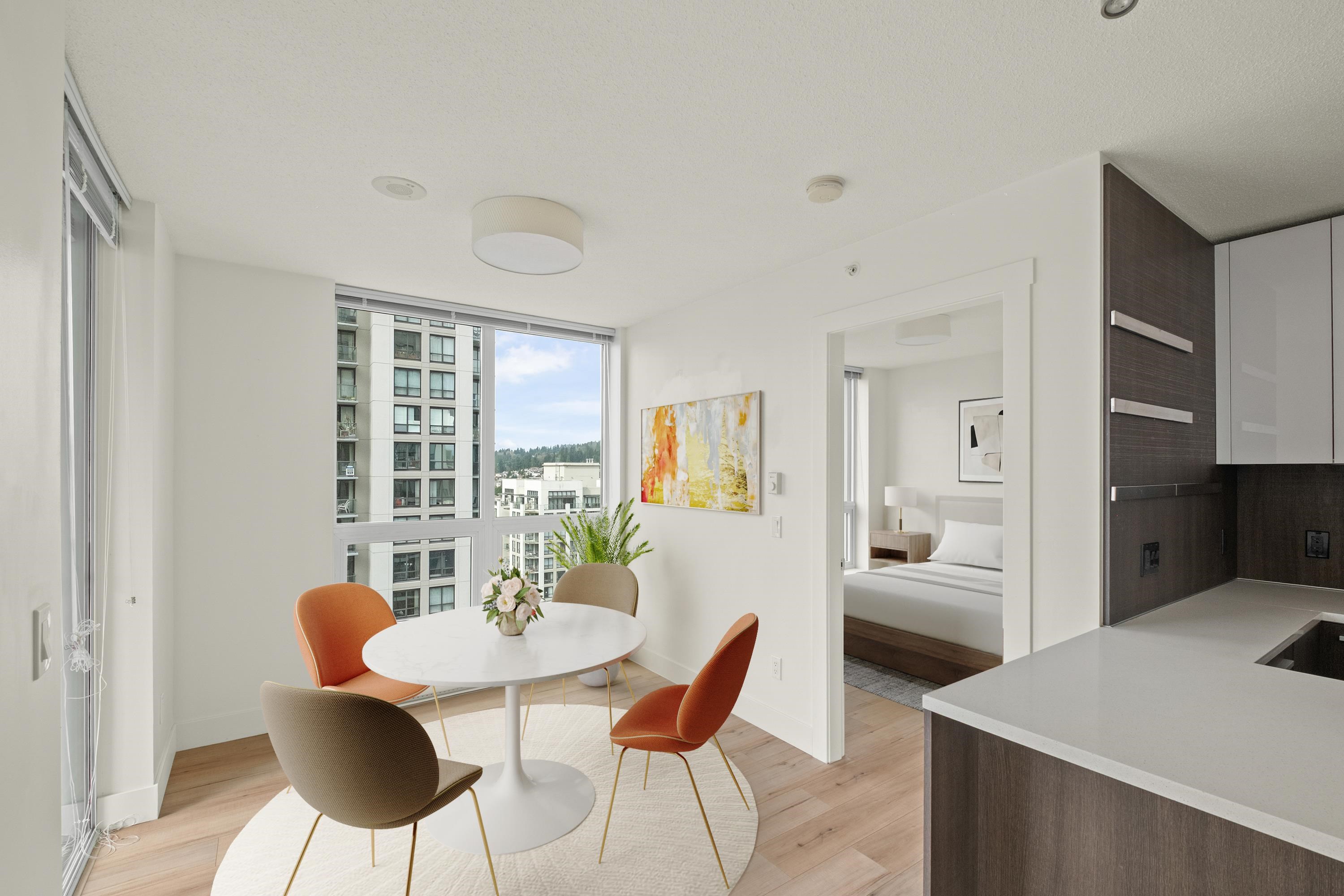 Beautiful north-east-facing unit with great natural light and open layout. Features include high ceilings, a modern kitchen with stainless steel appliances, quartz countertops, and laminate flooring throughout. Enjoy building amenities such as a fitness center, lounge, landscaped terrace, and more. Includes 1 parking stall and 1 storage locker. Conveniently located close to the SkyTrain, shopping, restaurants, parks, and schools. Showings: Saturday, April 25, 2026 - 2:00 pm to 3:30 pm Sunday, April 26, 202...