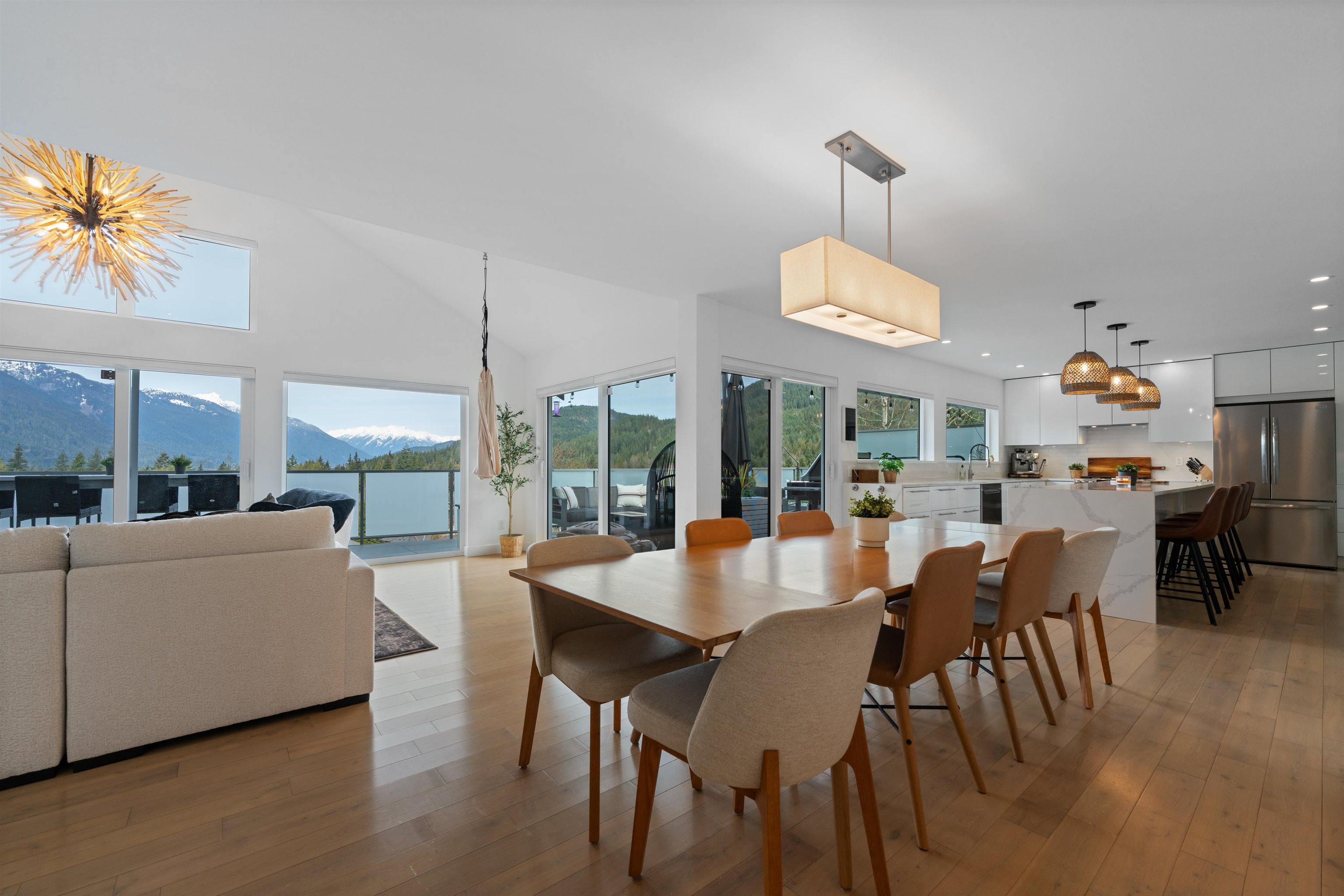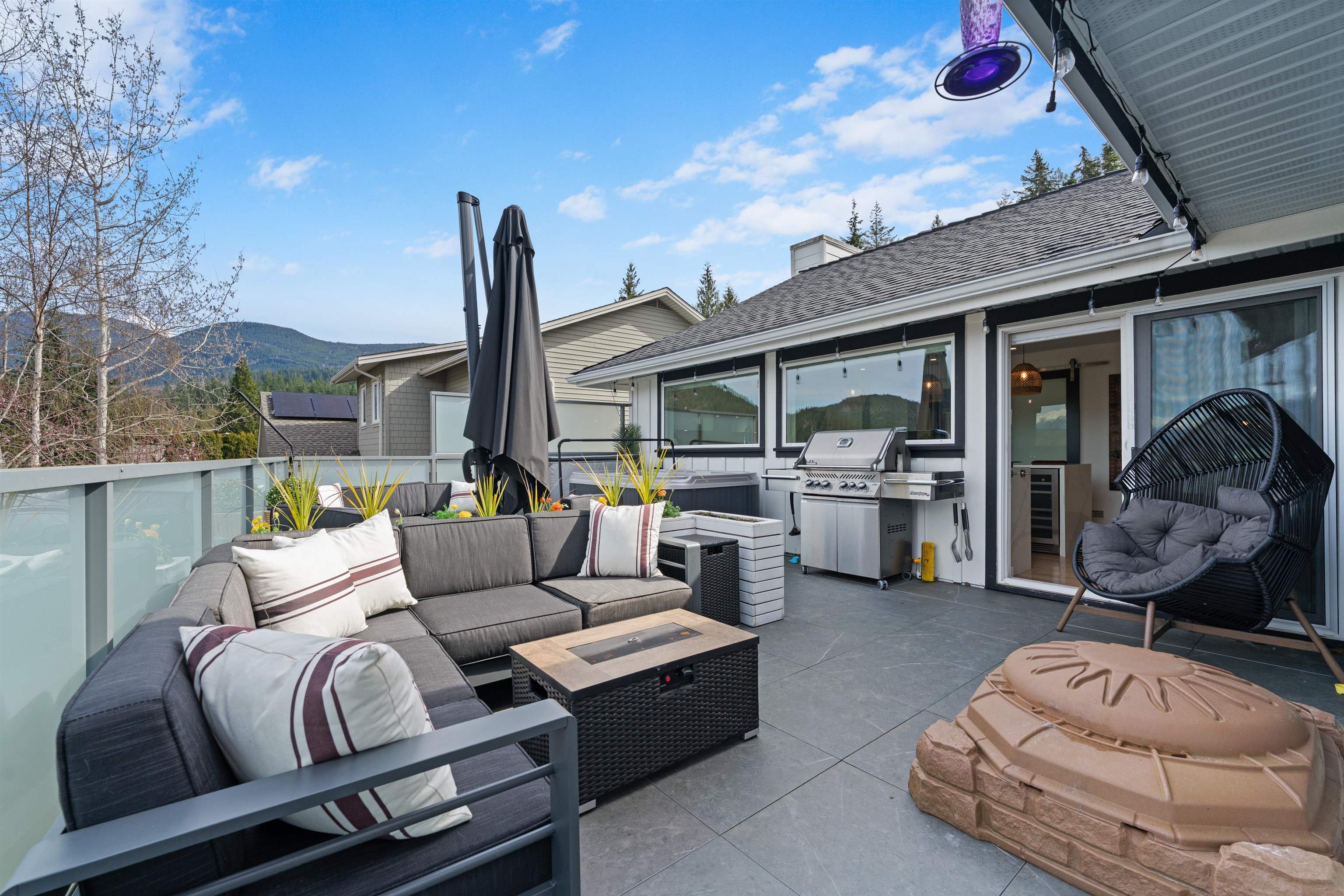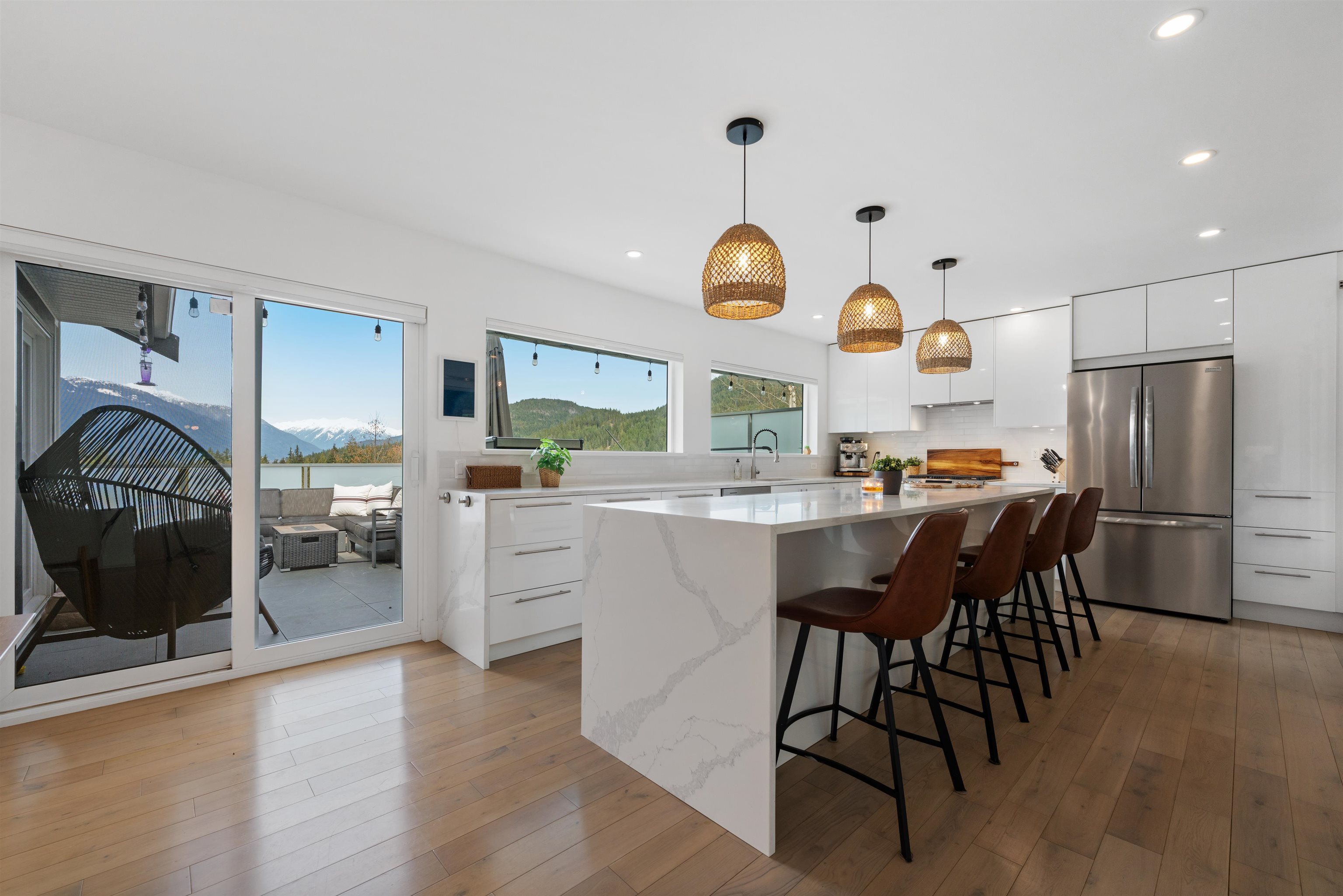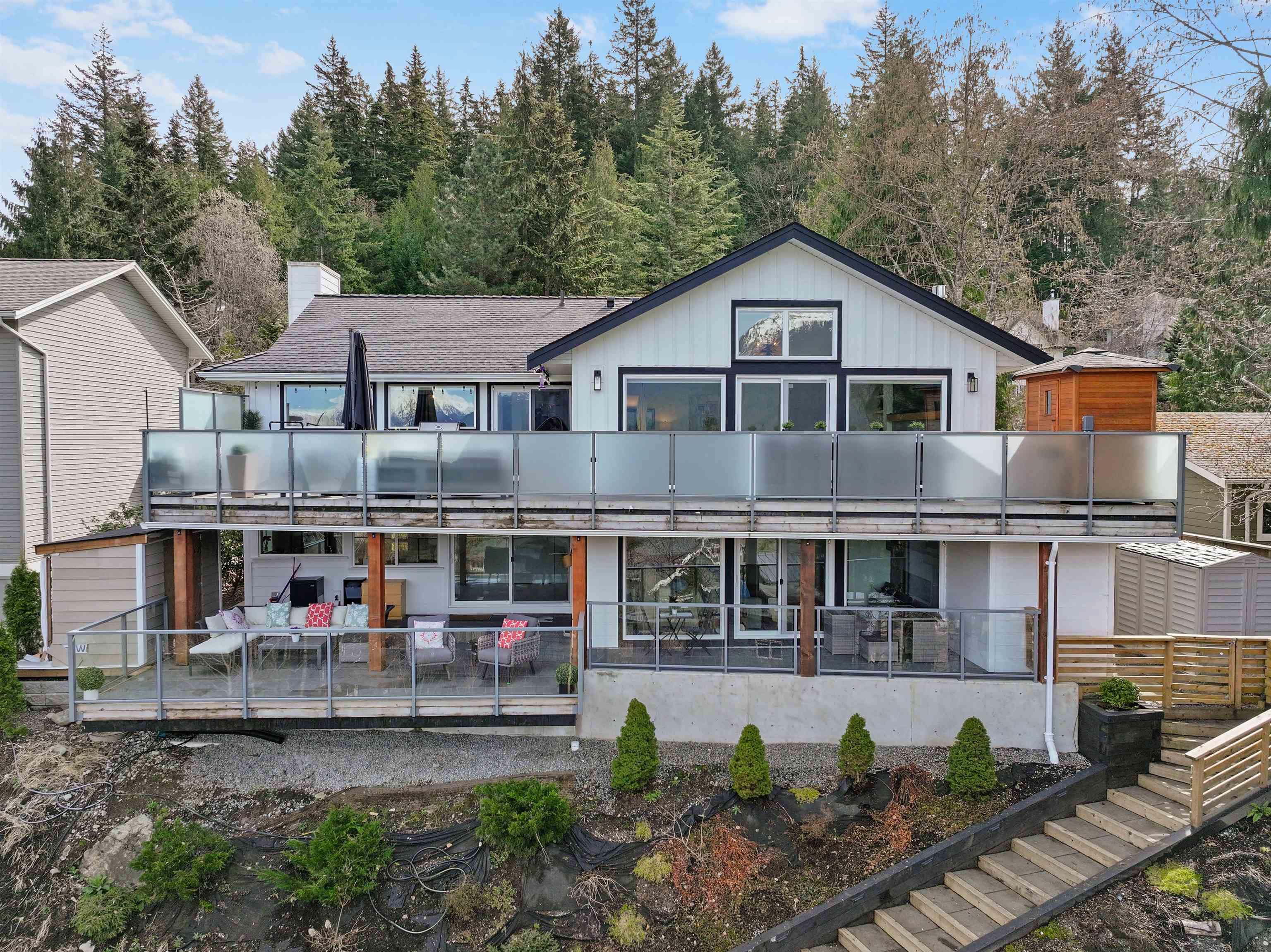 Nestled on the most sought-after cul-de-sac in the Highlands, this fully renovated home blends modern luxury with functional design. Bright, open living spaces feature oak floors, quartz countertops, dual gas ovens, hidden wine coolers, and porcelain-tiled bathrooms and laundry. Enjoy a heat pump, hot water on demand, two sundecks, treed private yard, hot tub, sauna, and gym. A 2-bedroom mortgage helper adds income potential, plus three storage sheds. Experience Squamish living done right-style, comfort, an...