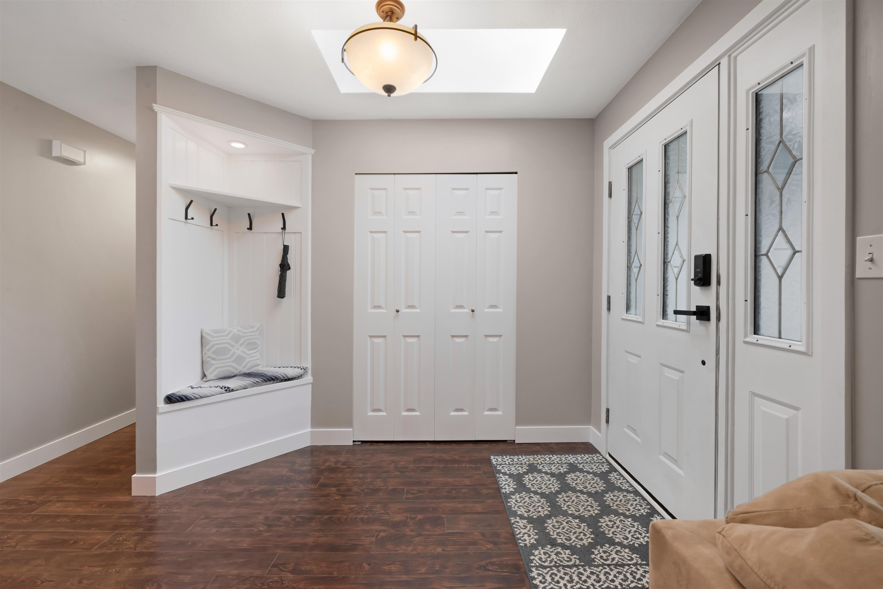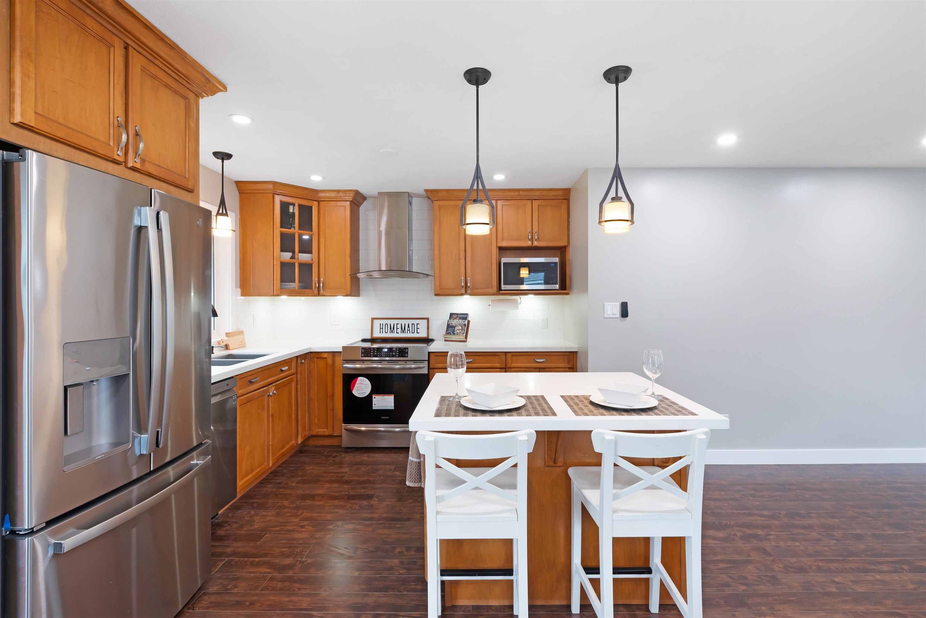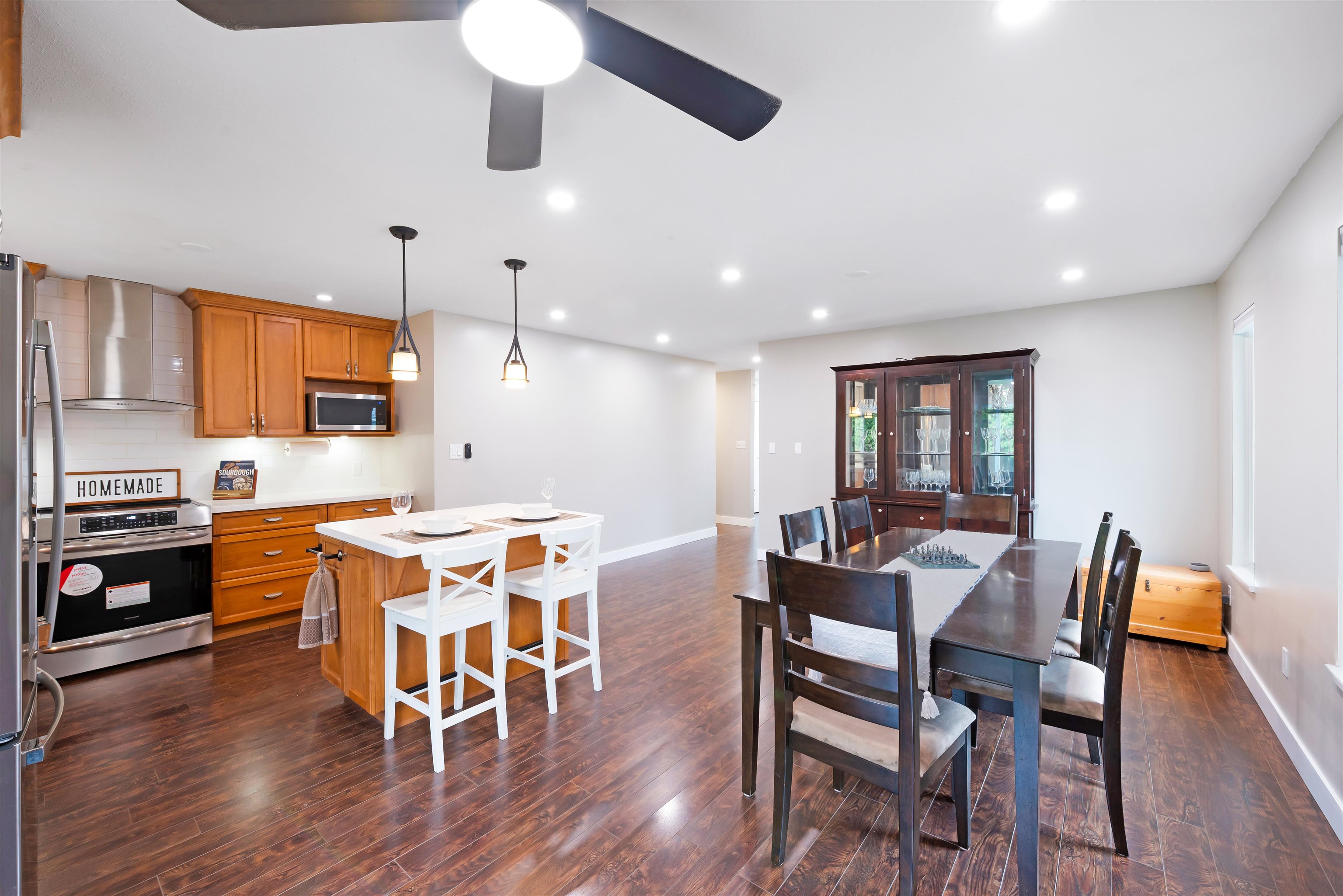 Beautifully renovated 3-bed, 2-bath rancher in East Maple Ridge offering 1,503 sq ft of move-in ready living. Bright open layout with custom kitchen, radiant in-floor heating throughout, quartz counters, subway backsplash, large island with wine rack, and brand-new stainless steel appliances. Brand new laminate flooring, updated lighting, smart features, and fully renovated bathrooms. Spacious primary with ensuite. Laundry room with sink, storage, and drain. New baseboards, paint, plumbing, and tankless hot...
