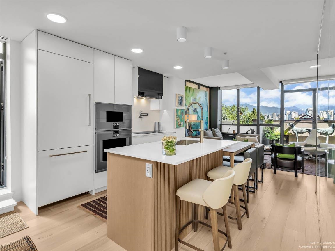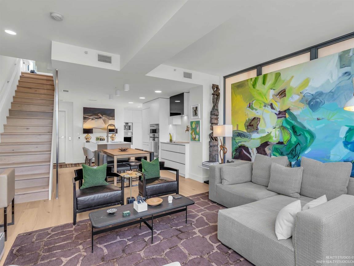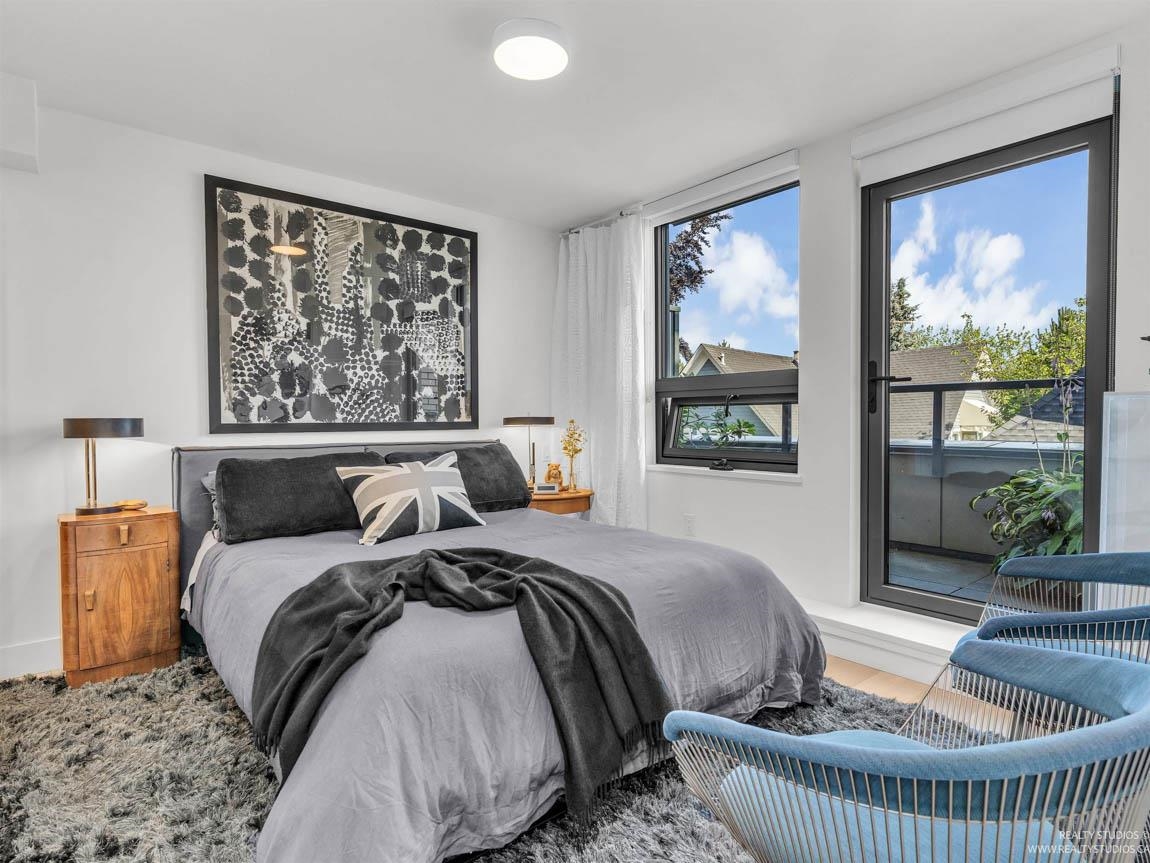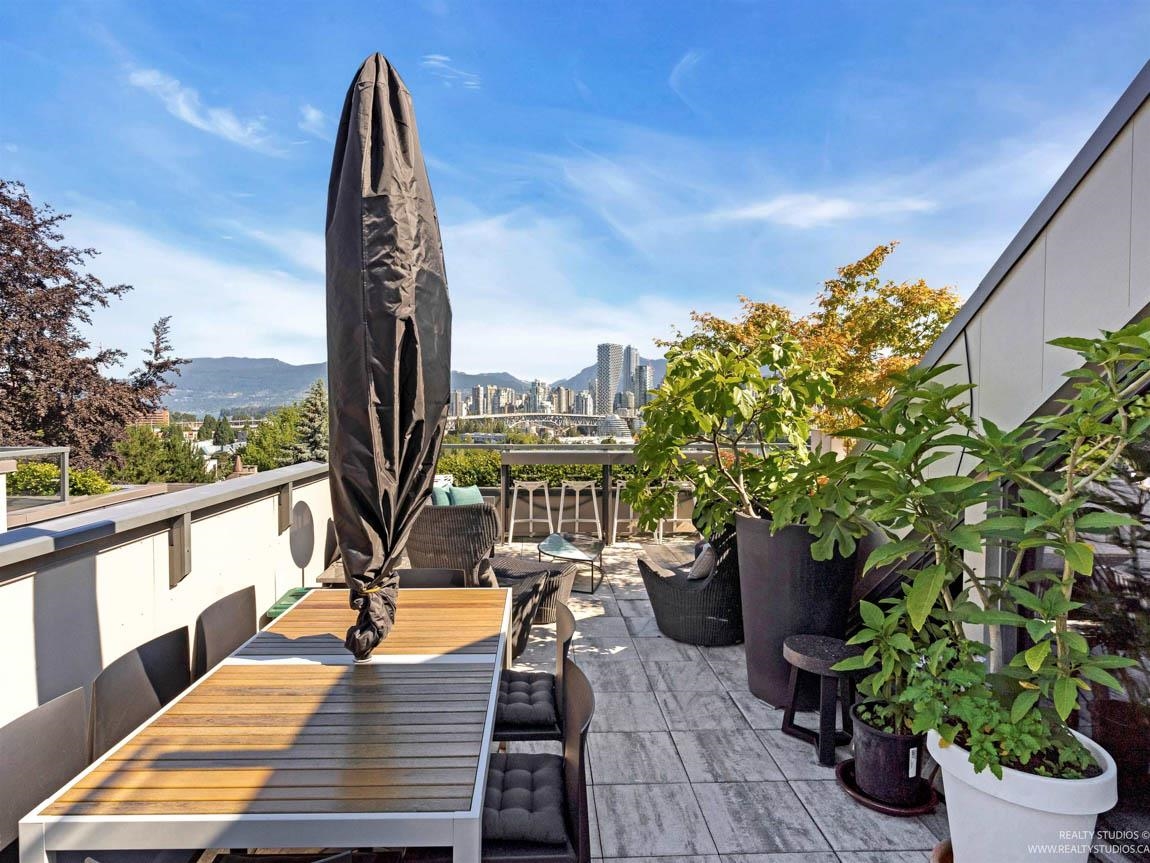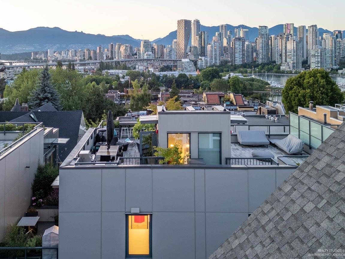 Experience luxury living in this fully furnished concrete townhouse in the heart of Fairview, Cambie Village. Built in 2023, this 3-level reverse-plan home offers approximately 1,405 sq. ft. of interior space plus 543 sq. ft. of private outdoor areas, all designed to capture stunning views of downtown Vancouver, the mountains, and False Creek. The main level features 3 spacious bedrooms and 2 full bathrooms, including a beautiful primary suite. Upstairs, enjoy a bright open-concept living and dining area wi...