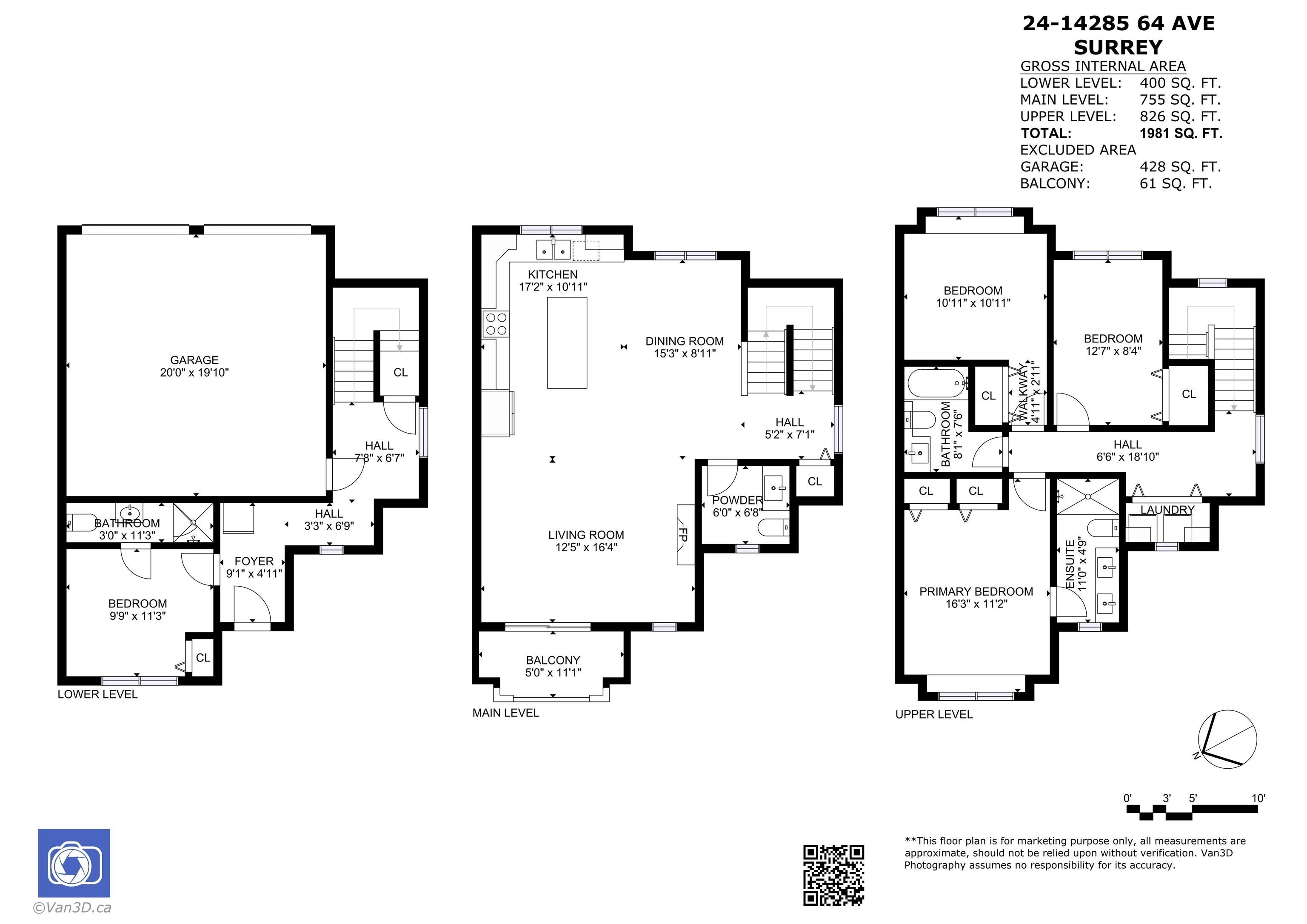 Rarely available 1,981 sqft 4 bed, 4 bath townhouse at Aria Living featuring a highly desirable and functional layout. Ground floor offers a private ensuite bedroom—perfect for parents, guests, or flexible use. Bright open-concept main level with spacious living and dining areas, modern kitchen with island, and access to a sunny balcony. Upper floor features 3 generously sized bedrooms, ideal for family living with excellent separation and privacy. Double side-by-side garage with extra storage. Well-managed...