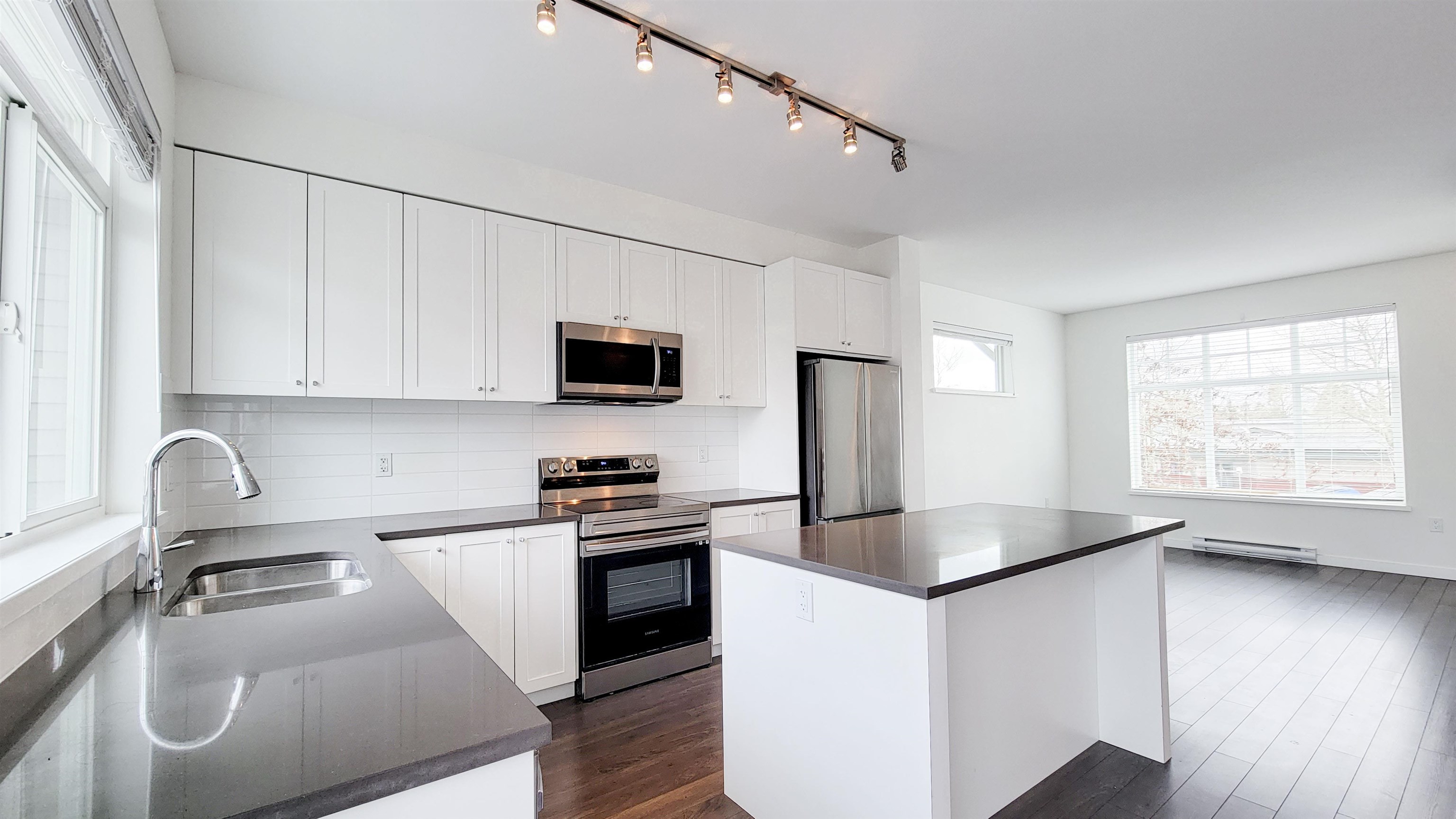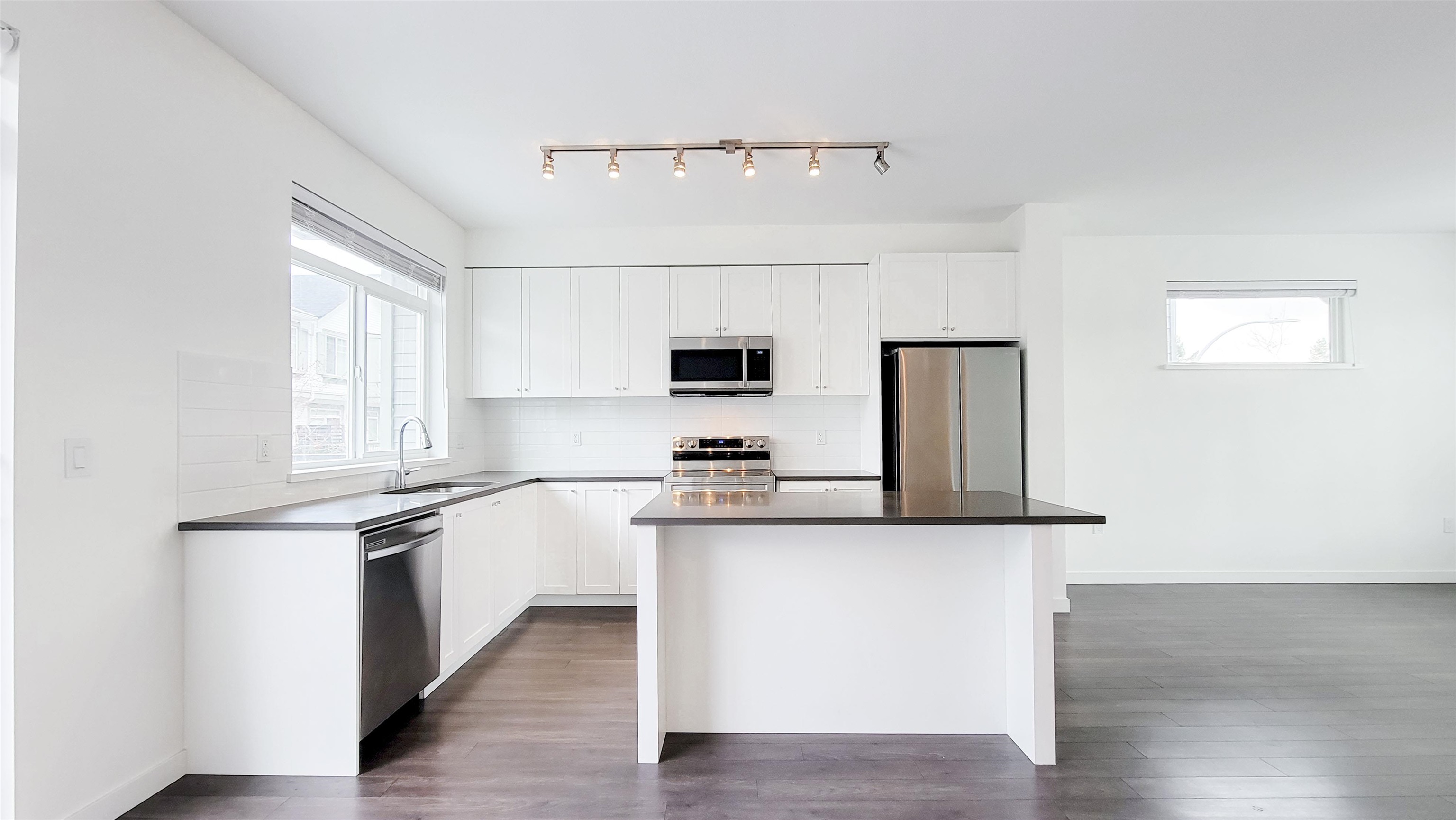 Rare Opportunity! Prime Location! Welcome to The Great One East by Dawson+Sawyer! This corner townhouse offers 3 bedrooms + den (possible 4th bedroom) and 2.5 bathrooms. The open-concept main floor features a modern kitchen with granite countertops, large island, and spacious living and dining areas with access to a huge balcony. Upstairs offers a primary bedroom that fits a king-size bed, walk-in closet, and private ensuite with double vanity and oversized shower. Located across from William F. Davidson El...