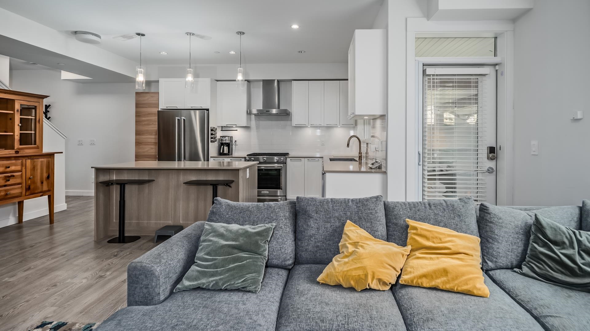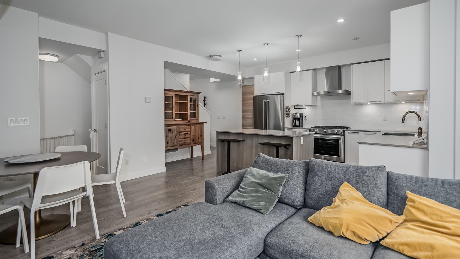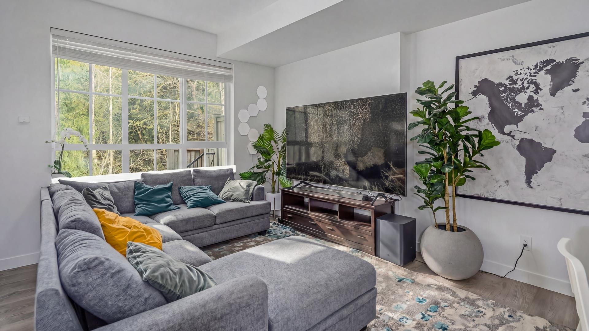 Welcome home to this spacious (over 2000 sq ft!) townhouse featuring a unique layout that provides enough room and privacy for a large family. Step into the bright foyer leading to the open concept kitchen and living room with a private greenbelt view. Three large bedrooms up including the primary with an ensuite, two closets (one walk in) and an office nook that would allow for a built in desk. Downstairs would be great for a teen, adult kids or guests with its own rec room, bedroom and bathroom. Other fe...