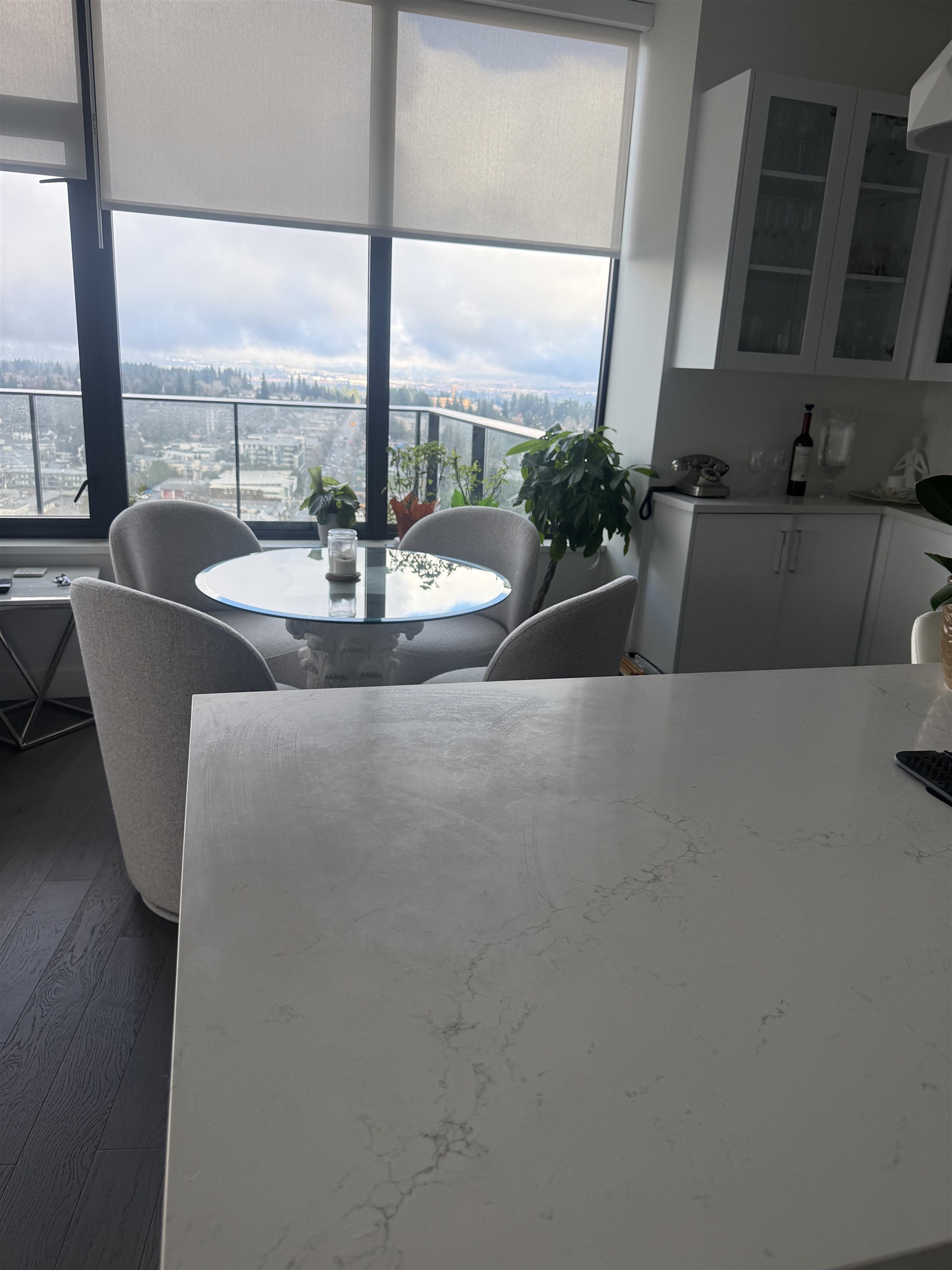 Stunning 2-bedroom + den corner unit on the 24th floor in central White Rock, BC, offering breathtaking panoramic views of the ocean, mountains, and city with approximately 1,000 sq ft of bright, modern interior living space plus a spacious 300 sq ft wrap-around L-shaped balcony—perfect for relaxing or entertaining. Designed for comfort and style, this home features contemporary high-end finishes, air-conditioning, floor-to-ceiling windows, a smart, functional layout, 2 full bathrooms, and resort-style amen...