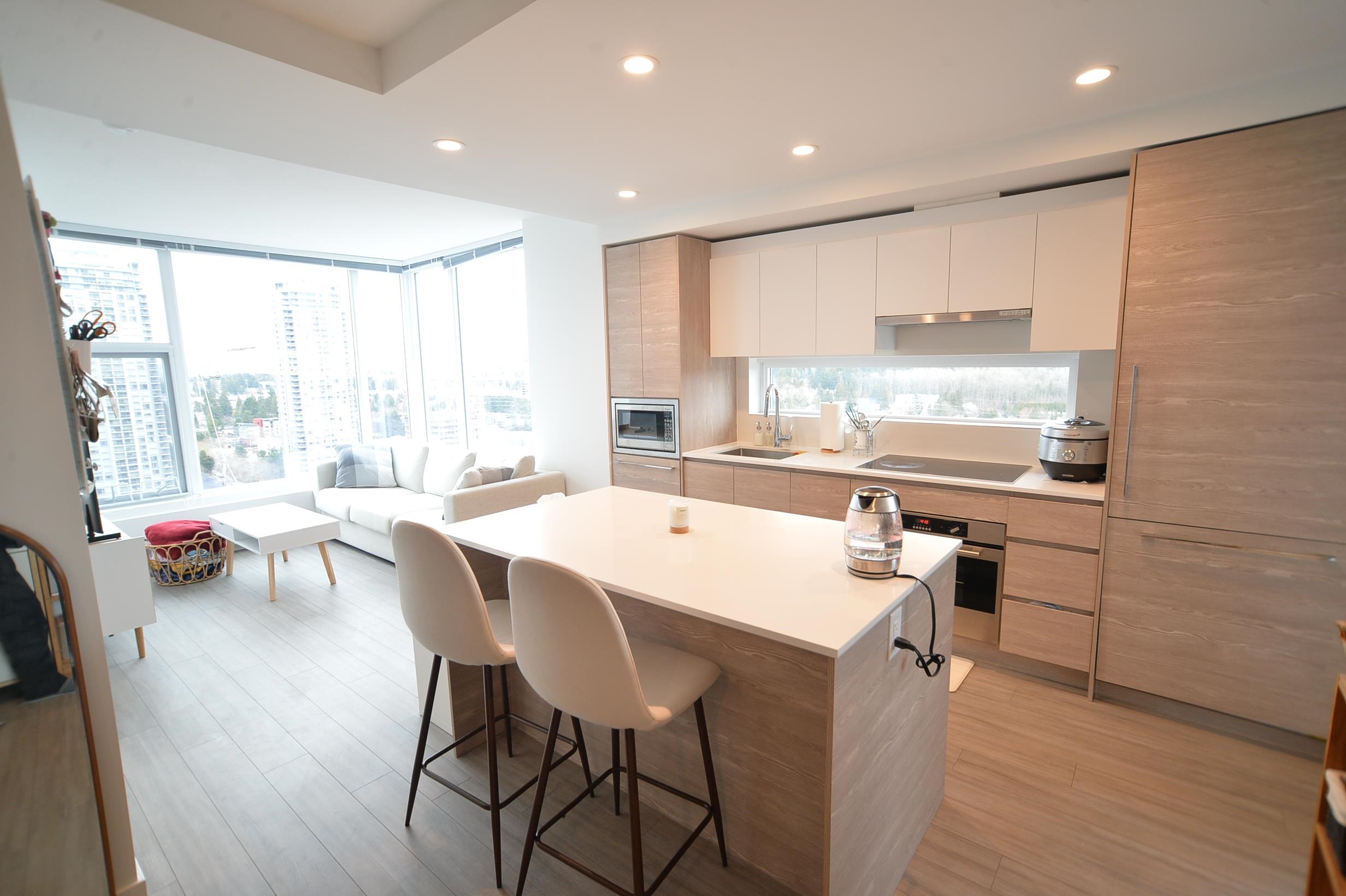 King George Hub Two by PCI Developments. This bright 2-bed, 2-bath CORNER UNIT HOME offers Northeast Mountain and City views from your living room. High-end finishes and premium appliances, including Fulgor Milano Wall Oven, Induction Cooktop, Quartz Countertops with Island Kitchen, and durable Laminate Wood Flooring. Enjoy the exceptional Amenities: Rooftop Lounge with BBQ Area, GYM and Yoga Studio, Game Room, Theater, Children's Playground, Bike Room. ***PLEASE NOTE THAT THIS UNIT COMES WITH 2 PARKINGS, 1...