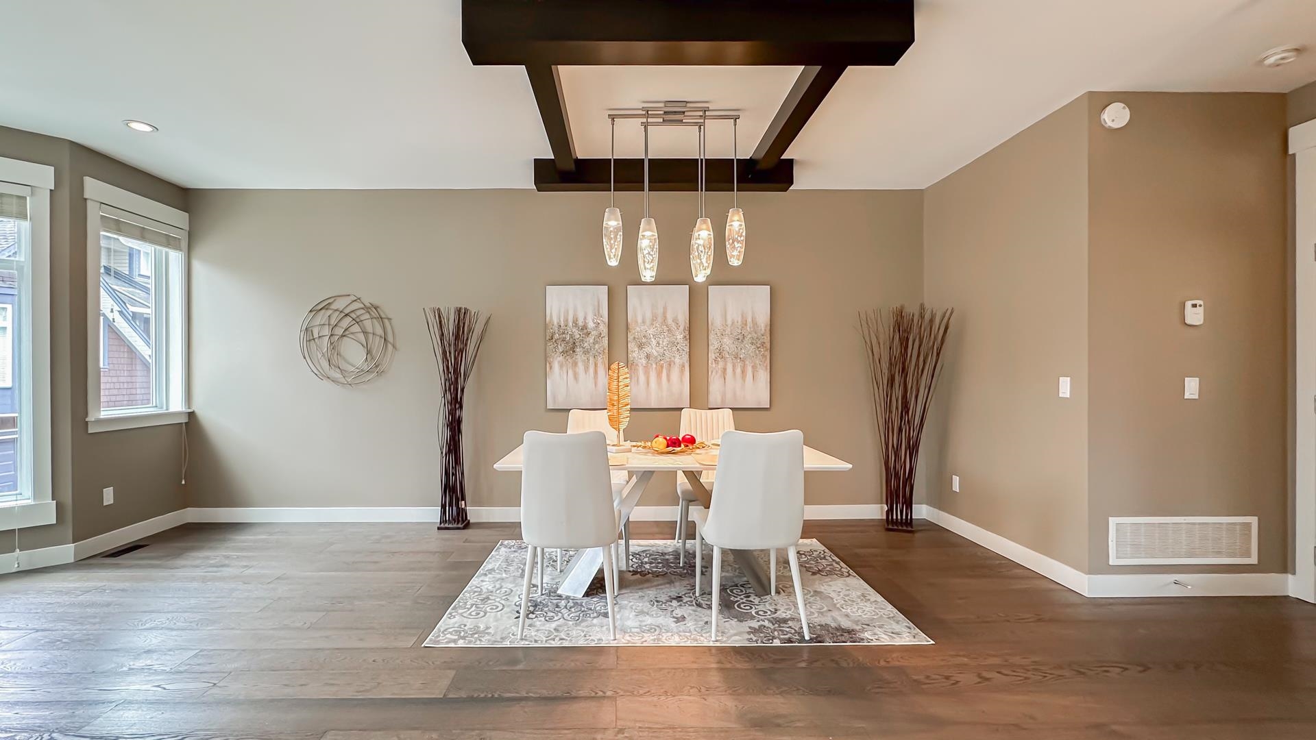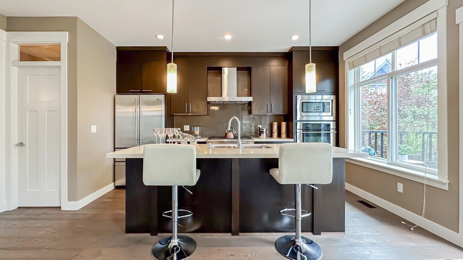 Welcome to this stunning south facing end unit with 4 bedrooms and 4 bathrooms. Large windows fill every room of this bright and well laid out floor plan with natural light. The main level features a living room, dining room, family room with two fireplaces , 9ft ceilings. The upper floor features a huge master bdrm & 2 generously sized bedrooms and a laundry room. The ground floor features a side by side garage and a legal suite mortgage helper,this In-law suite installed by the Developer, with separate en...