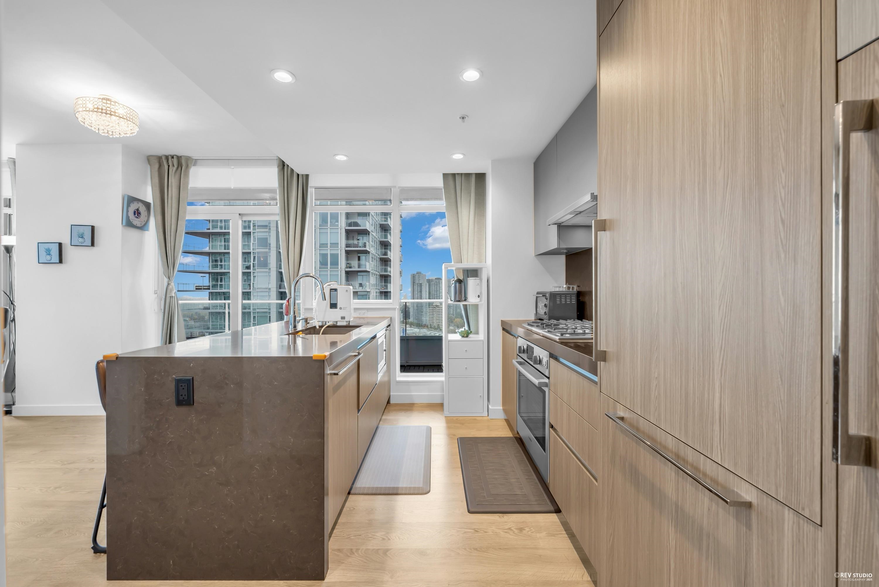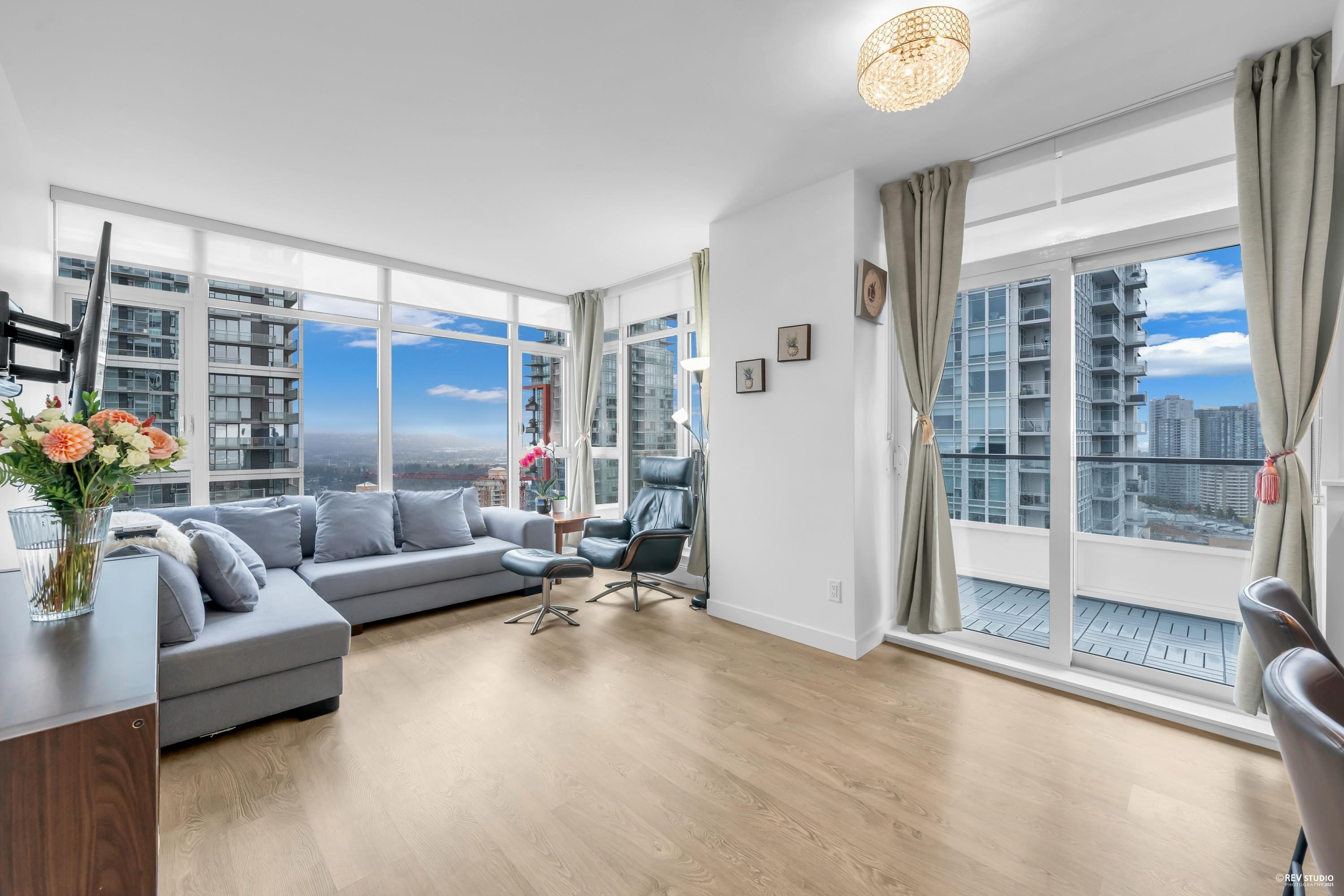 Located in the vibrant heart of Metrotown, Station Square Tower 4 by Anthem & Beedie Living defines luxury and convenience. This 2-bedroom, 2-bathroom corner residence boasts desirable Southeast and Northeast exposure, flooding the home with natural light and showcasing breathtaking views of the North Shore Mountains, Deer Lake, and city skyline. Thoughtfully designed with floor-to-ceiling windows, two spacious balconies (240 sqft), and seamless wood laminate flooring, it features a modern BOSCH kitchen wit...