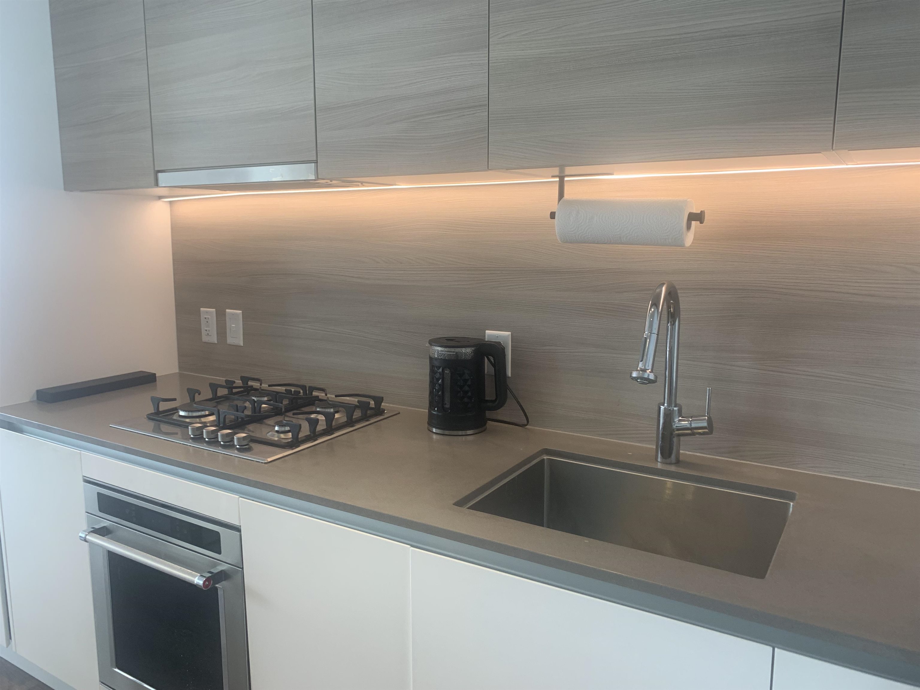 RiverSky 2 by BOSA, located in Central Downtown New Westminster. This 1 bedroom, 1 bathroom unit on the 25th floor features panoramic South West views of the Fraser River and beyond. Open-concept modern kitchen features a gas stove, soft-close cabinetry, composite stone countertops, an integrated refrigerator, integrated dishwasher. The building offers 24 hour concierge service. Amenities include a fully equipped gym, a rooftop terrace and green space with water views, lounge seating, and BBQs. Pet-friendl...