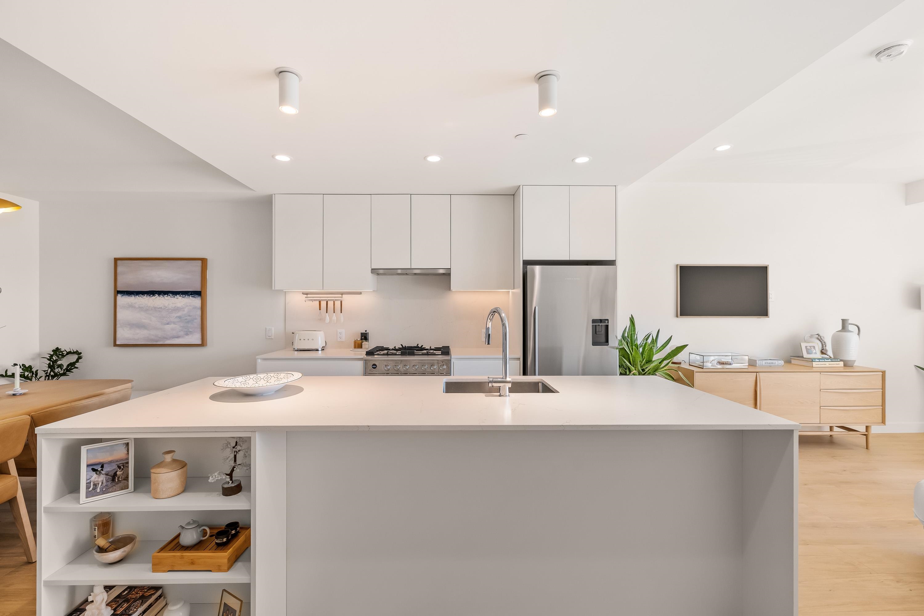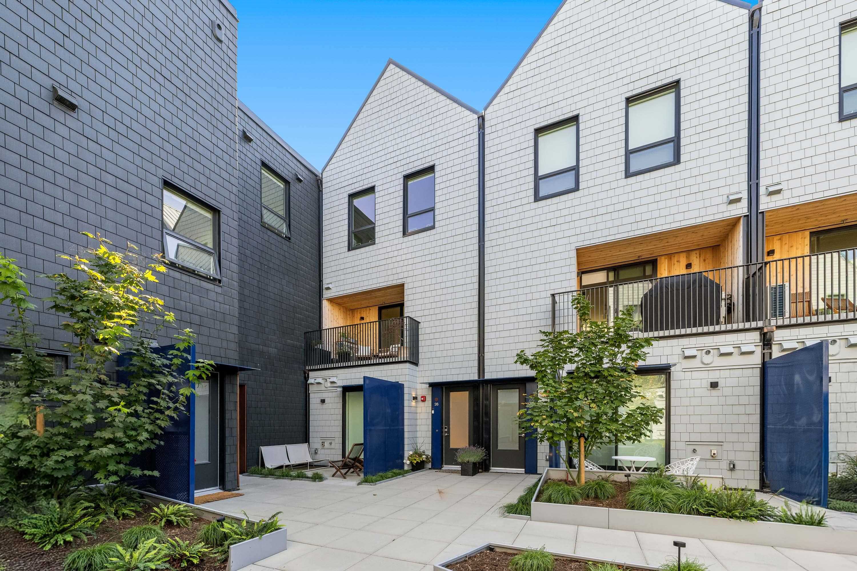 Tucked into the vibrant Southlands community, this immaculate TH is a total mood booster, modern & warm w/ a clean neutral palette throughout. Over 1,350 sf, it’s open & bright, yet completely private. Floor to ceiling windows, 9’ ceilings & vaulted ceilings upstairs, this home is practically brand new without the GST. Live, eat & entertain on your spacious main floor with a powder room + easy access to your covered balcony where you can enjoy a peaceful outlook to the private courtyard. Truly is the heart ...