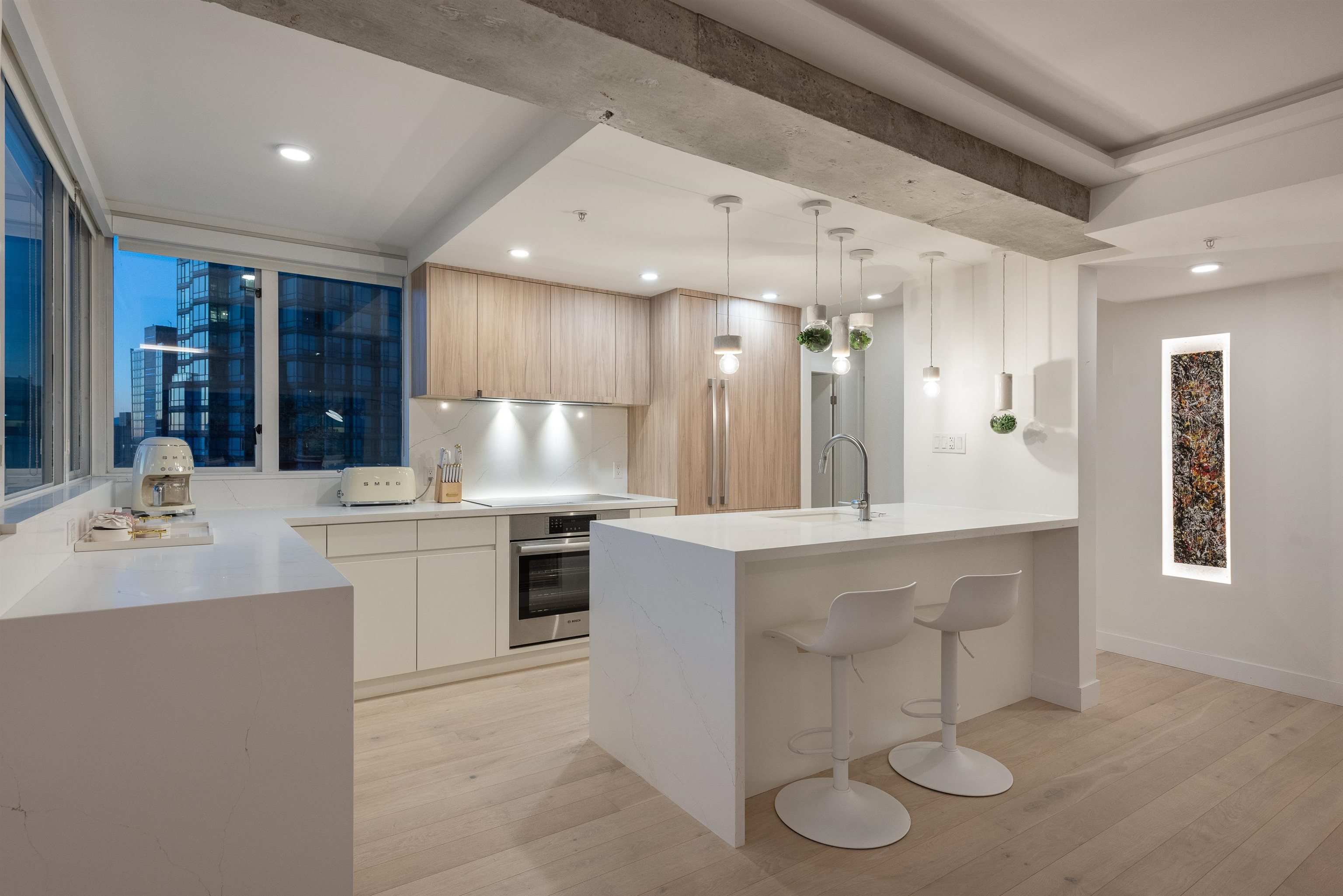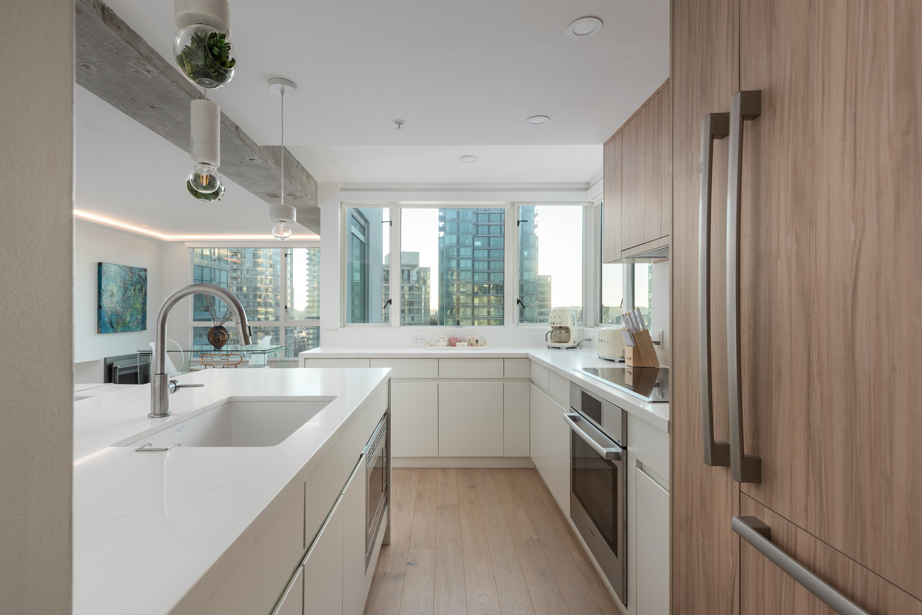 Welcome to Pointe Claire, a luxury high-rise nestled in the heart of Coal Harbour. No detail has been overlooked in this fully renovated, 3-bedroom, corner suite. This home features a thoughtfully designed open-concept layout, perfect for living, dining, and entertaining. The professional renovation includes hardwood flooring, brand-new stainless steel appliances, marble/quartz countertops, energy-efficient electric baseboards, modern lighting fixtures and more. Spanning nearly 1200 SOFT, enjoy breathtaking...