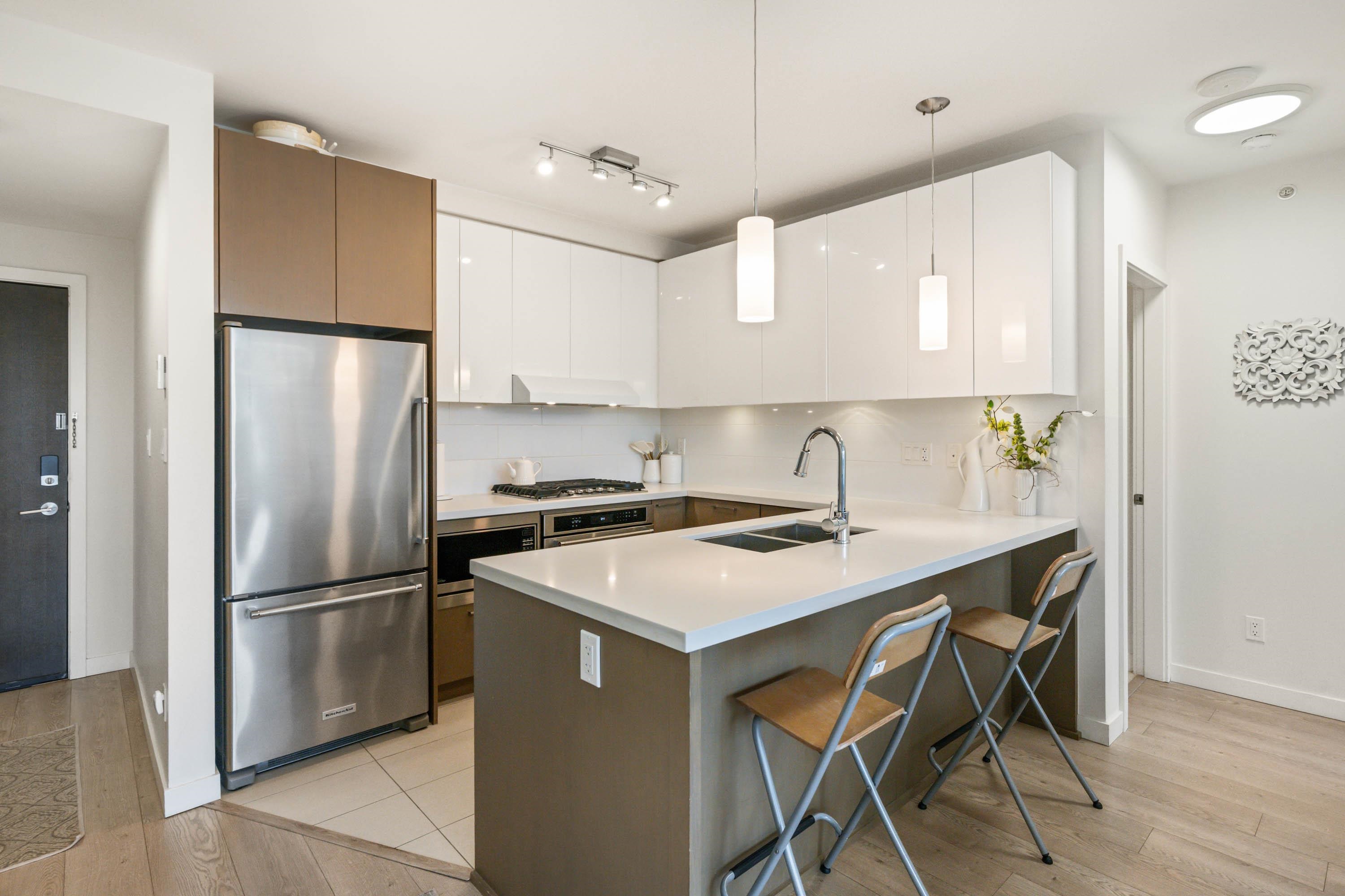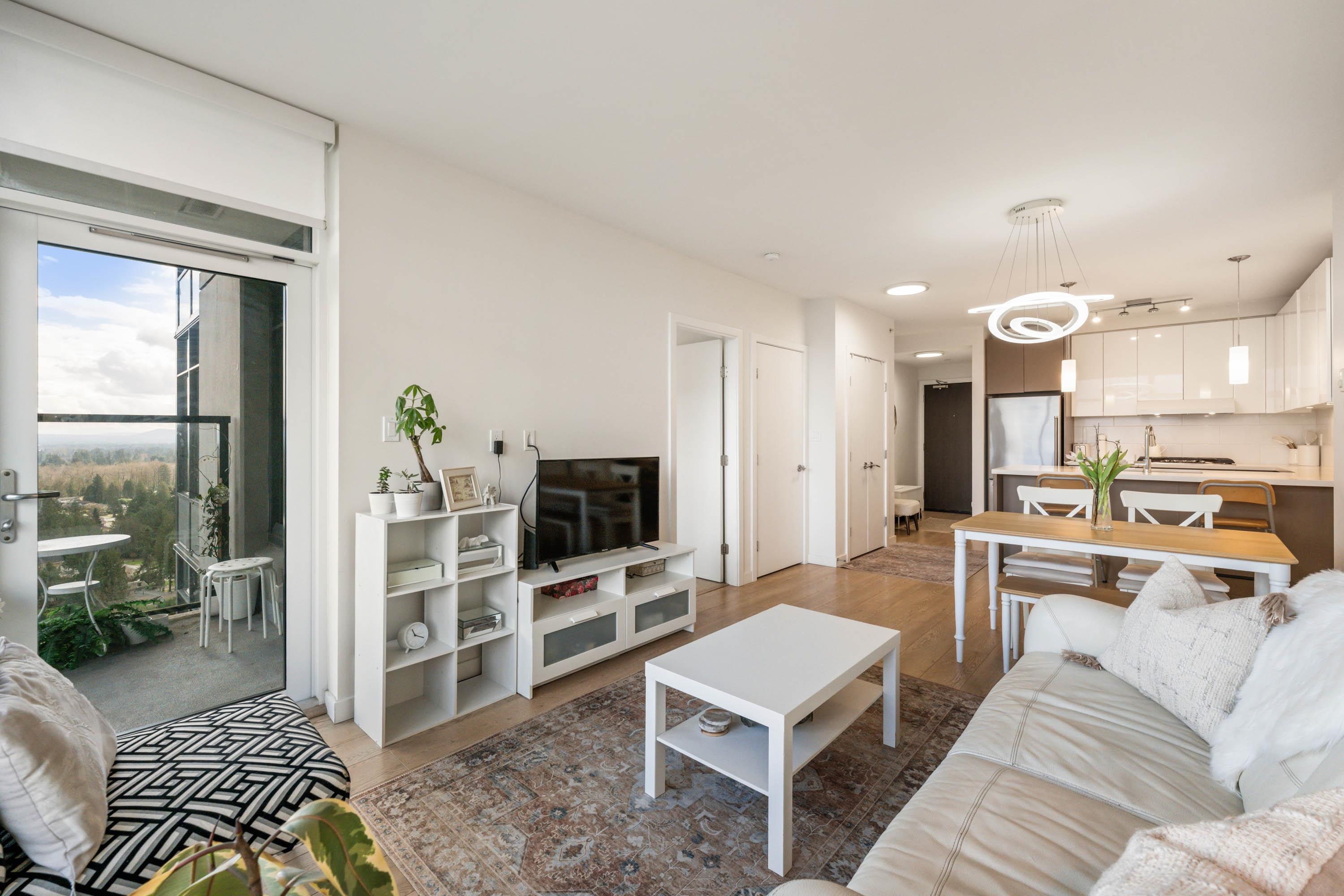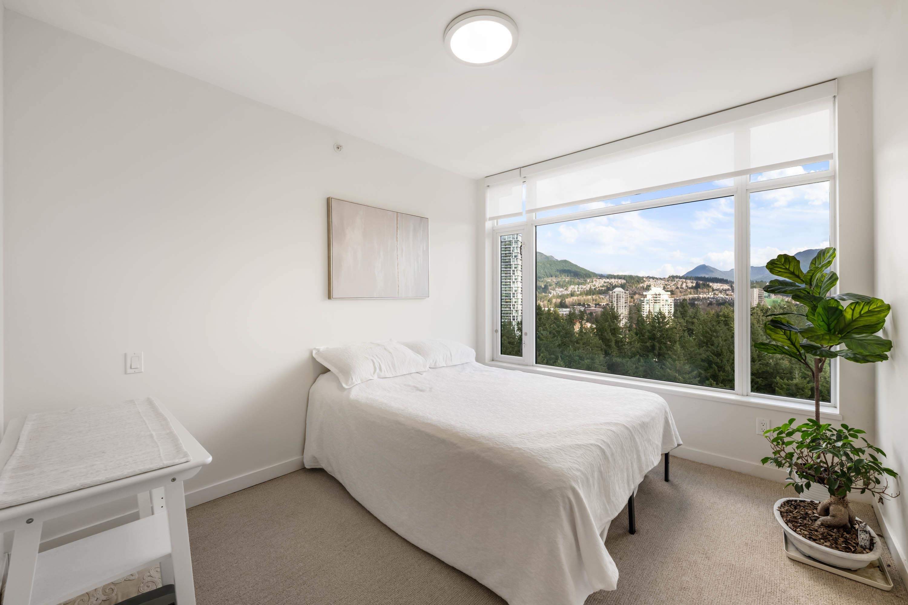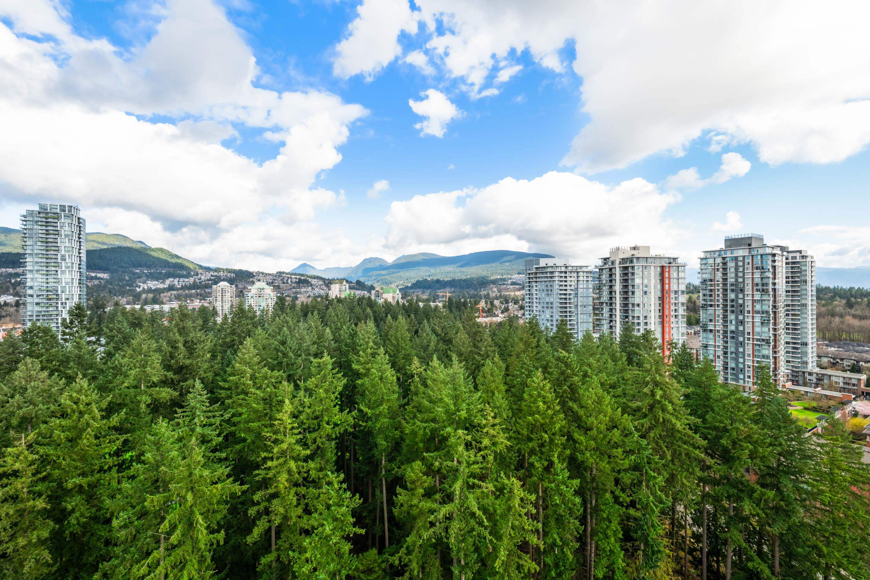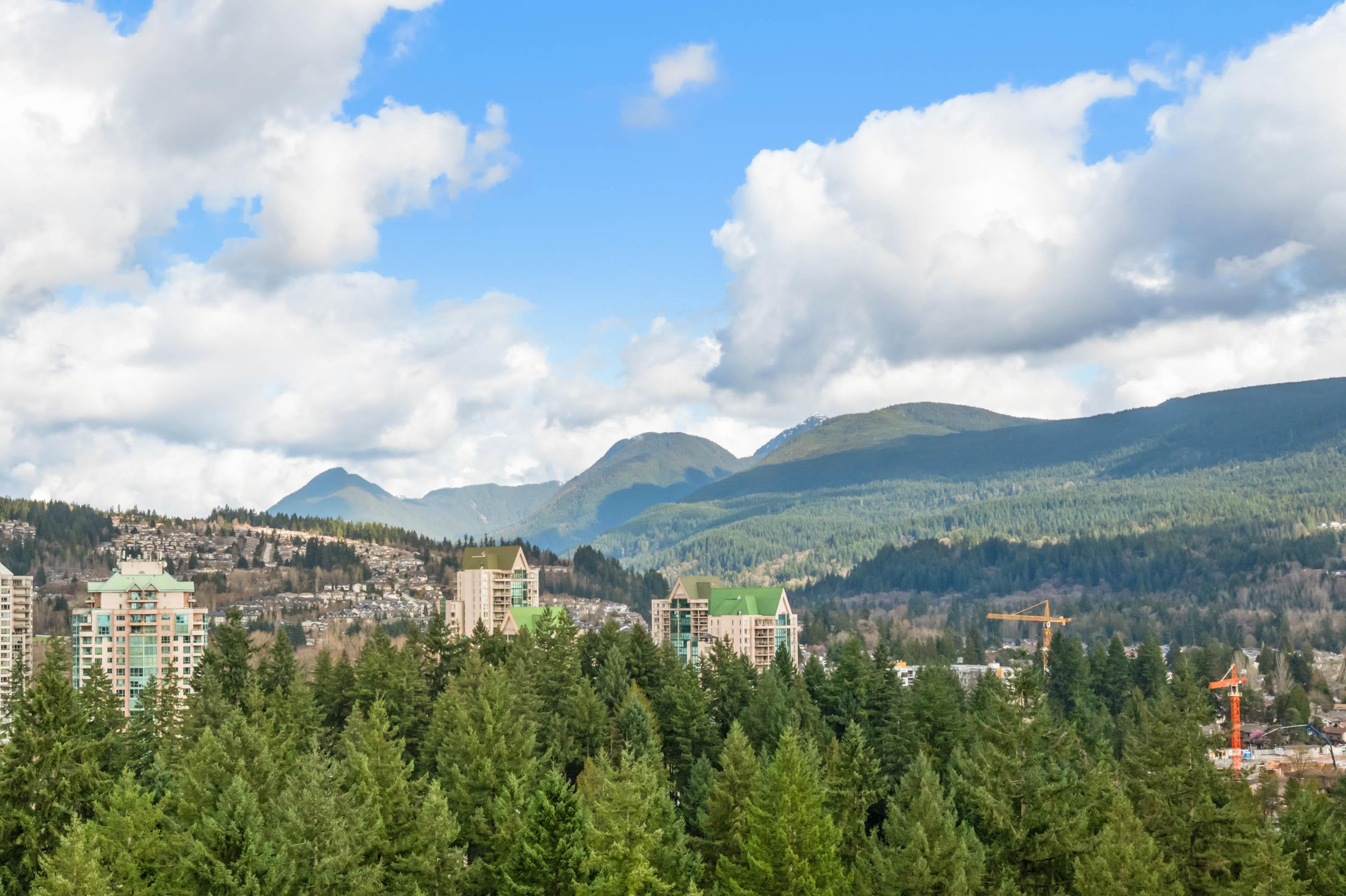In Coquitlam's most prime location. This 10 year old 856 SF 2 bed + 2 full bath home offers convenience & privacy. The open layout features floor-to-ceiling windows with UNOBSTRUCTED VIEWS of the North Mountains, Glen Park & trees, with no units looking in. Bedrooms are separated on opposite sides for comfort. The modern kitchen boasts S/S appliances, quartz counters, gas cooktop & ample cabinetry. Upgrades incl:Nuheat floors in kitchen/baths & MOTORIZED Hunter Douglas blinds. Building highlights: 3 elevato...