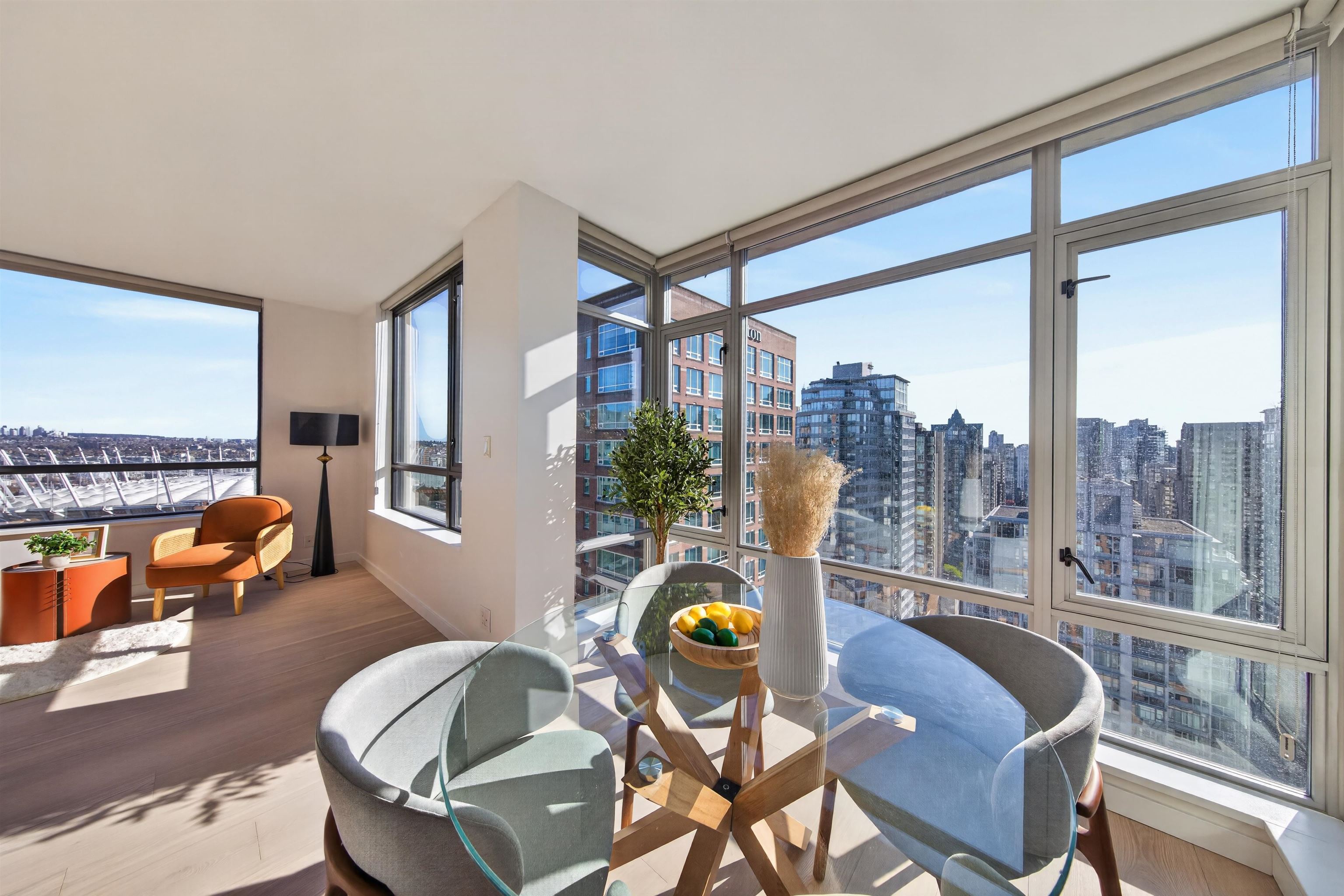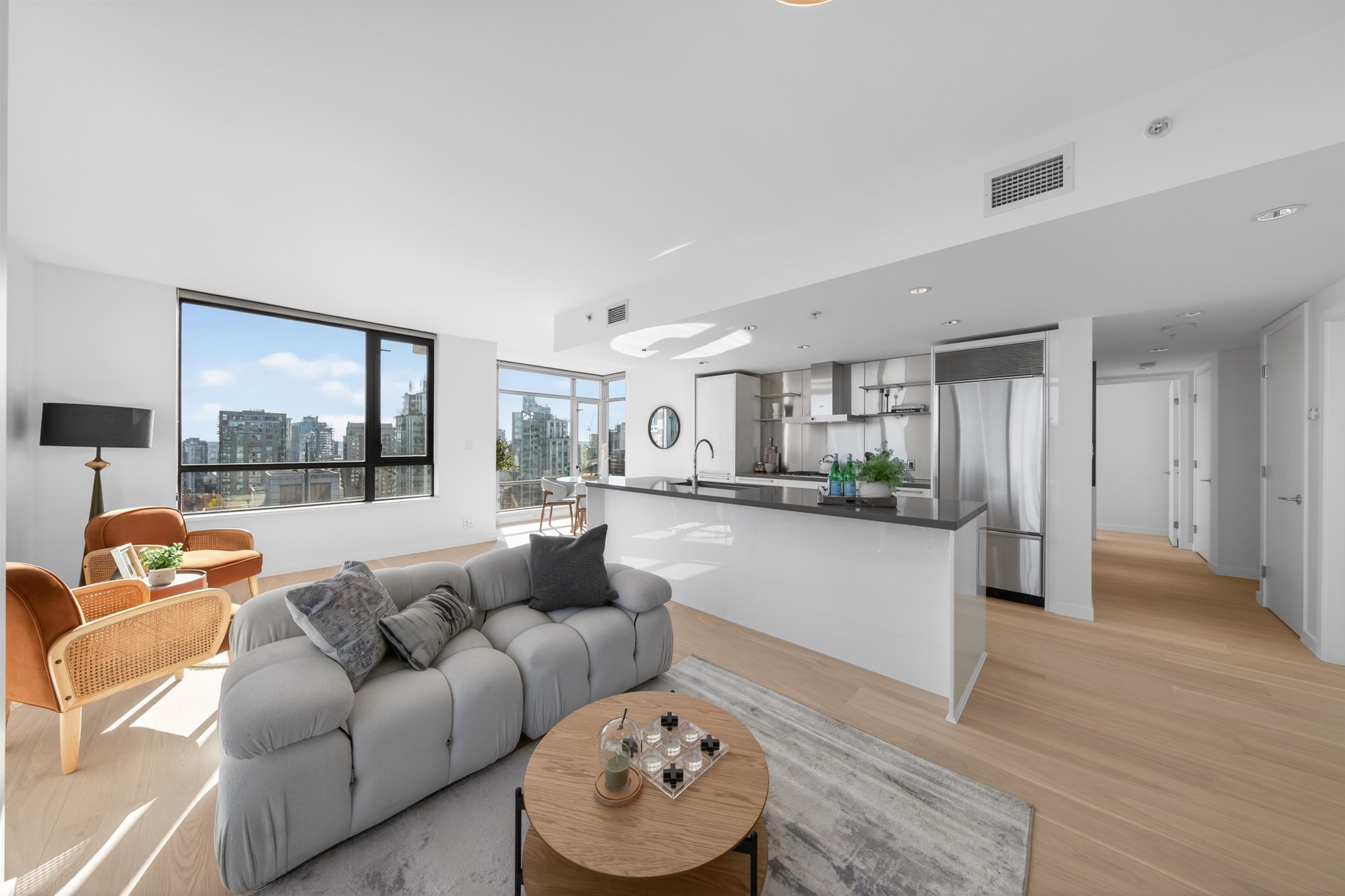 Welcome to L’Hermitage — one of Downtown Vancouver’s most prestigious and sought-after luxury residences. This beautifully updated 2-bedroom + den corner home on the 26th floor offers breathtaking panoramic views of the city skyline, mountains, and water through expansive floor-to-ceiling windows. The thoughtfully designed open-concept layout is both functional and elegant, featuring air conditioning, high-end Sub-Zero and Bosch appliances, and refined finishes throughout. The home has been recently renovat...