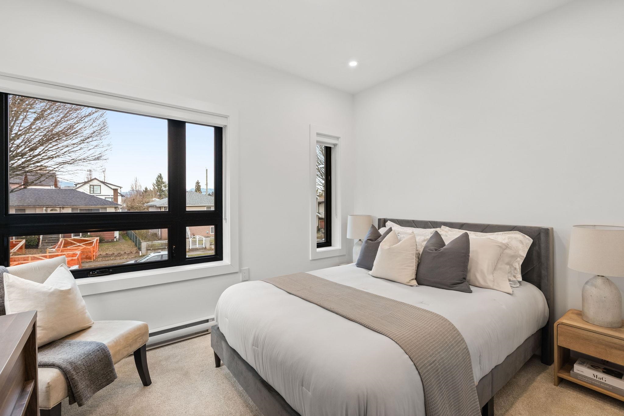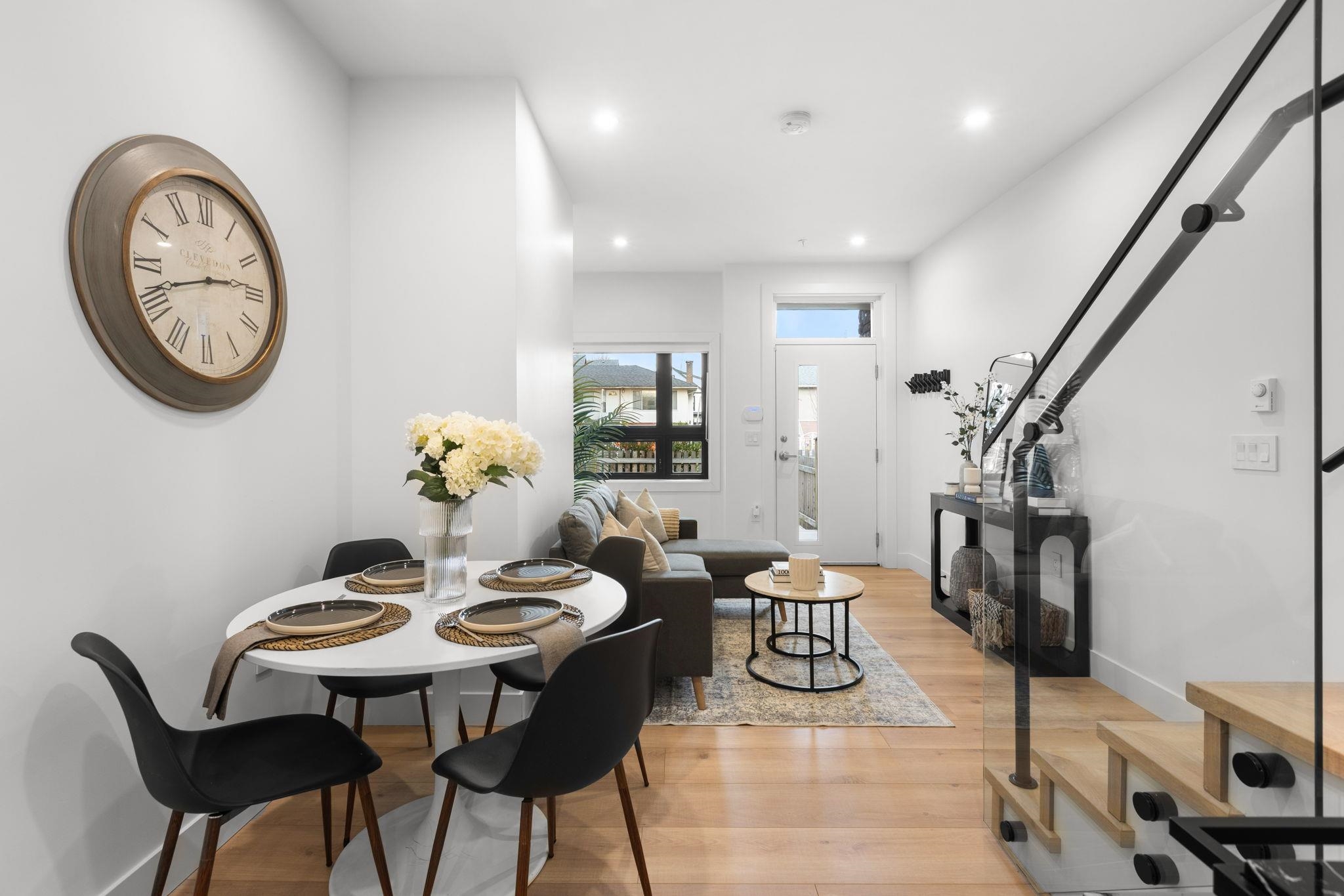 Located on a quiet, tree-lined street in Collingwood, this modern 3-bedroom, 2.5-bath triplex offers stylish living in a family-friendly East Vancouver neighbourhood. Thoughtfully designed with contemporary finishes, the open-concept layout features wide-plank laminate flooring, quartz countertops, LED lighting, and matte black fixtures throughout. The kitchen is equipped with Fisher & Paykel appliances for both function and style. Just steps from John Norquay Elementary and within easy walking distance to ...