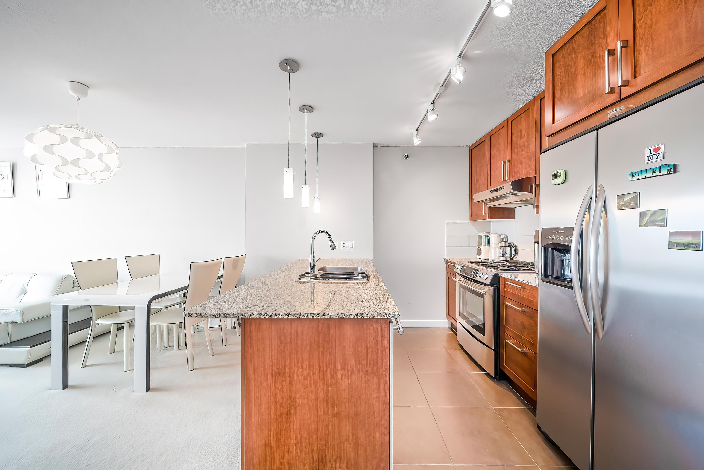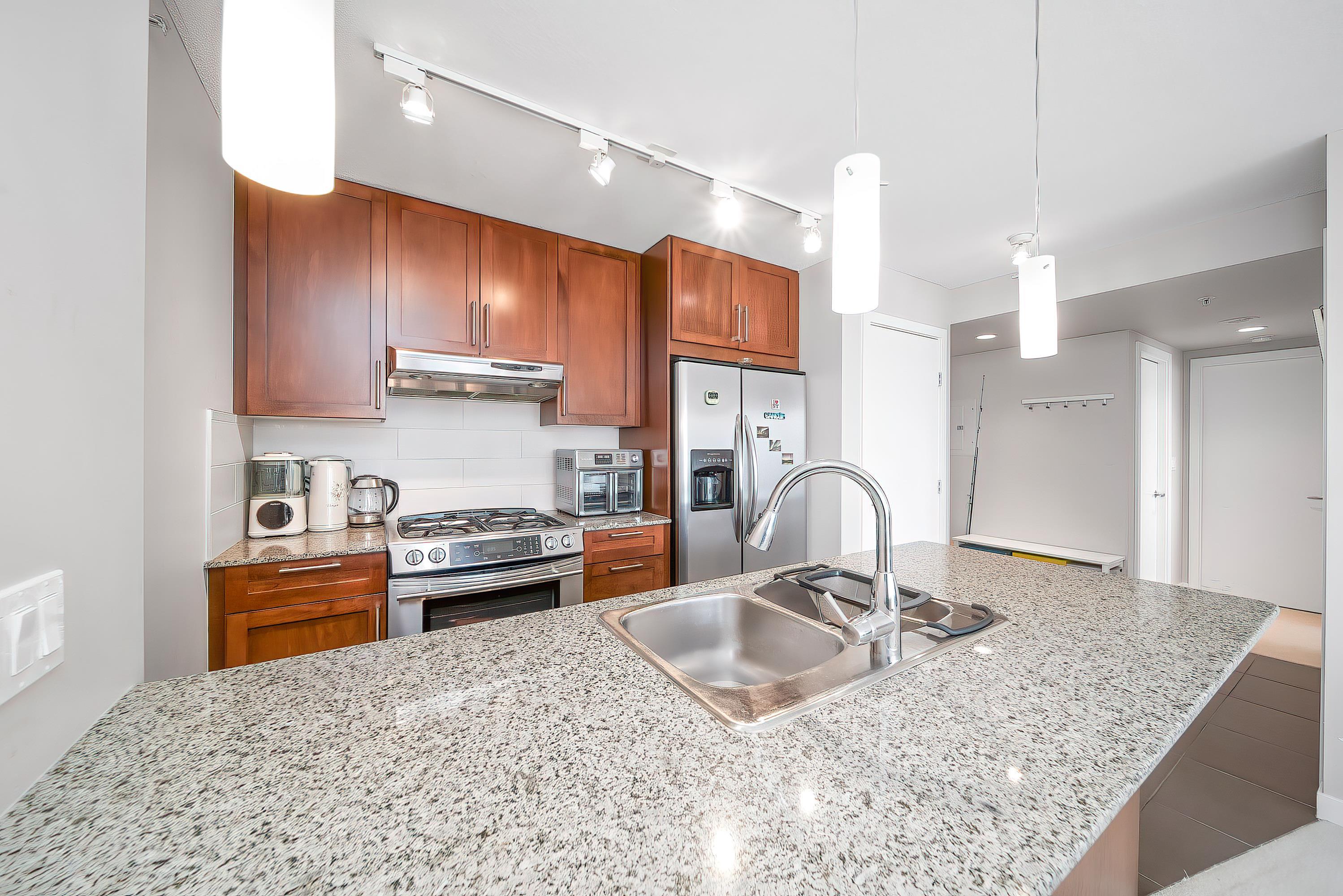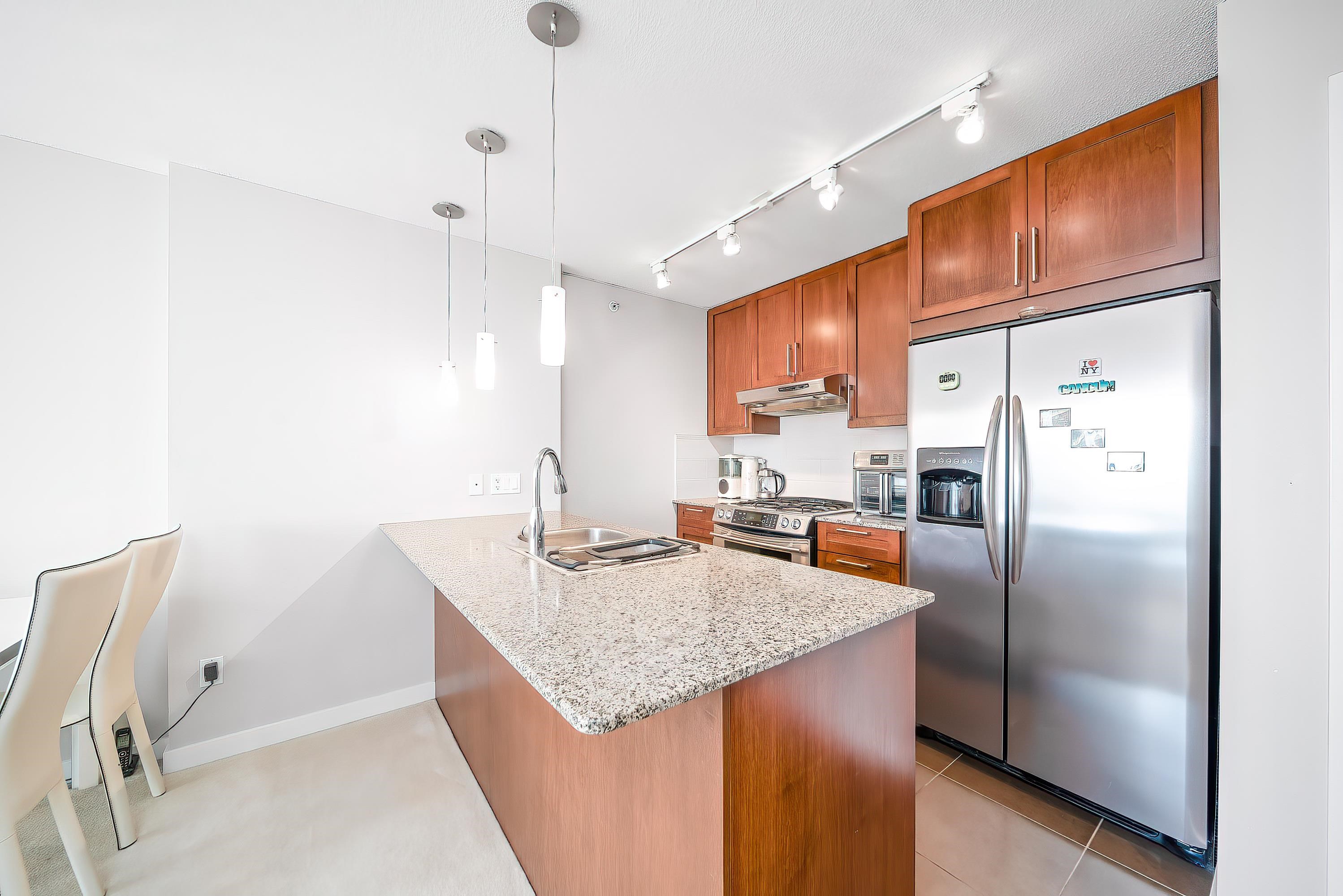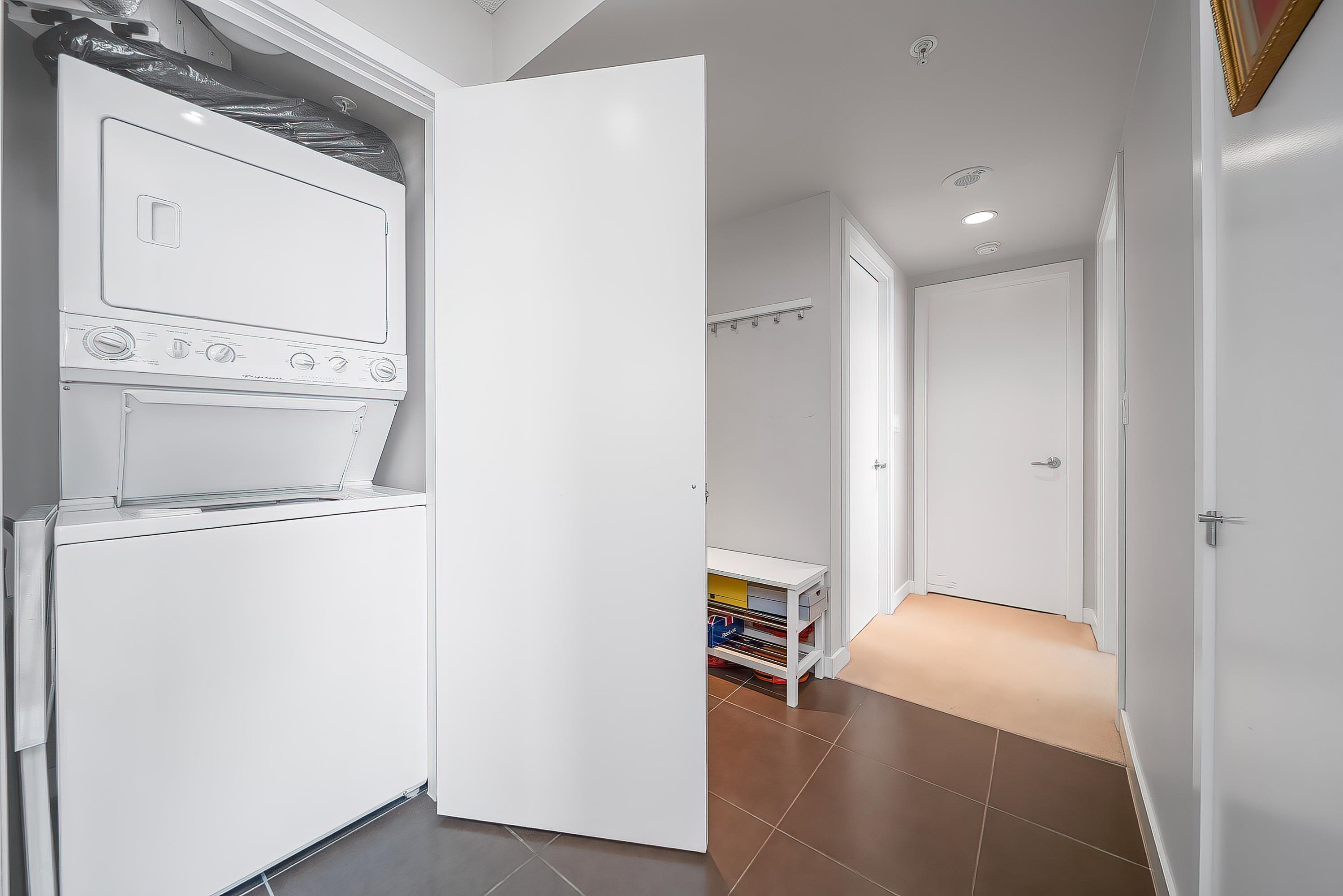 VIEWS! SPECTACULAR CITY, MOUNTAIN & WATER VIEWS! Welcome to WEST, a sought-after BOSA-built community in the heart of Highgate Village, Burnaby South. This spacious and bright 2-bedroom, 2-bathroom home offers a highly functional “no-wasted-space” layout. The generous east-facing primary bedroom easily fits house-sized furniture and boasts unobstructed views of Mount Baker and the lush courtyard below. Enjoy a modern open-concept kitchen with a gas range, granite countertops, and convenient in-suite laundry...
