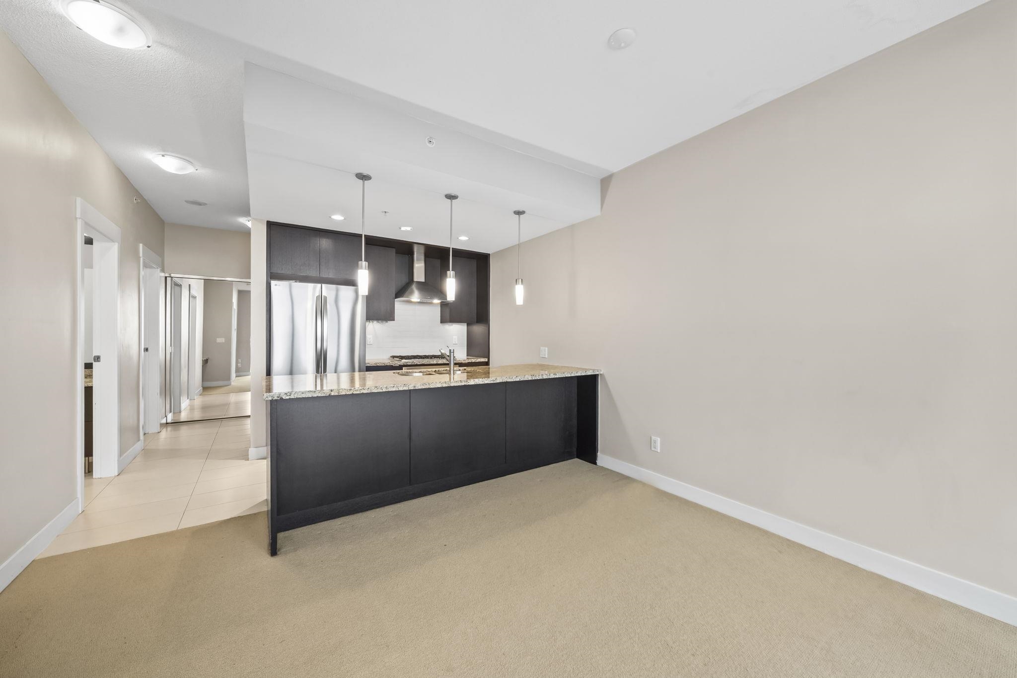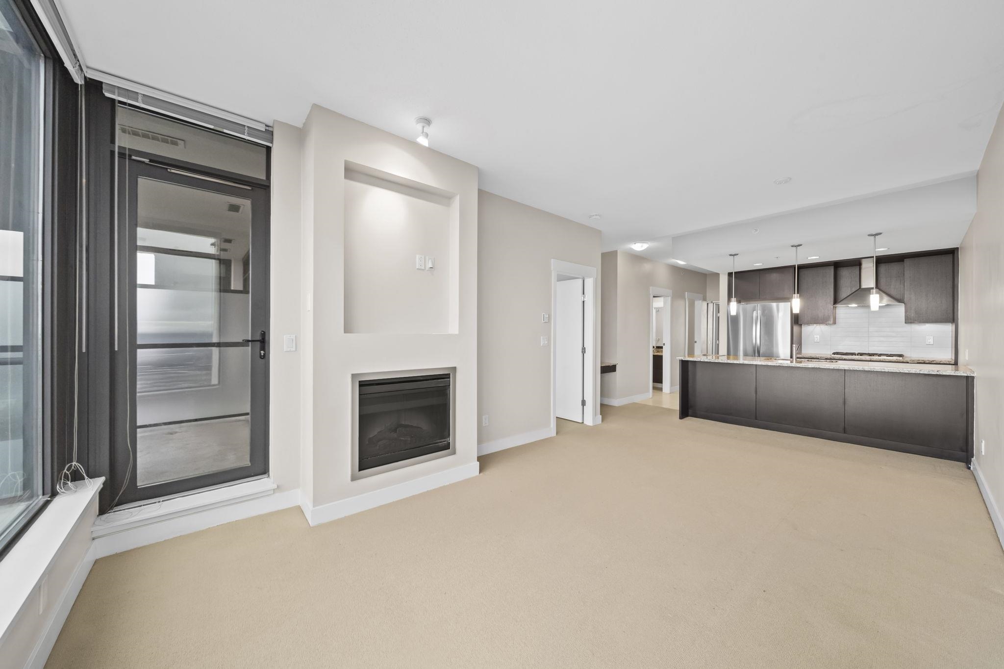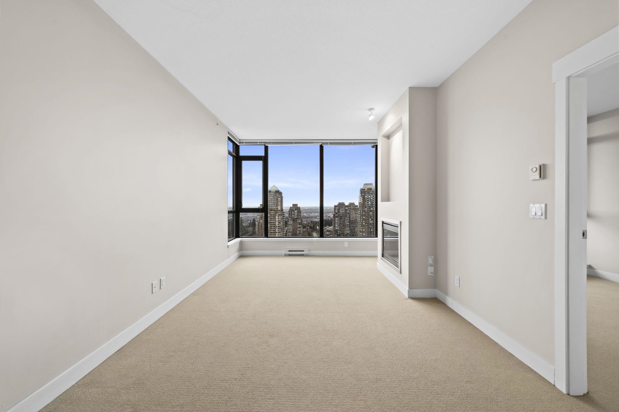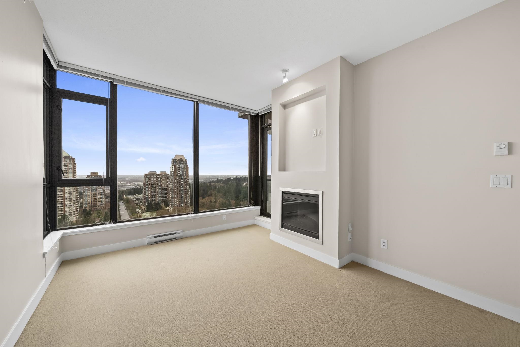 Welcome to Park 360 by renowned developer Cressey—where quality meets lifestyle. This bright and spacious corner 1 bed + den home features an exceptional open layout with windows that fill the space with natural light, showcasing breathtaking city and mountain views. Cozy up by the elegant electric fireplace, perfect for relaxing evenings at home. The versatile den is ideal for a home office. Enjoy unbeatable convenience just steps to Edmonds SkyTrain Station, with shops, restaurants, and everyday essential...