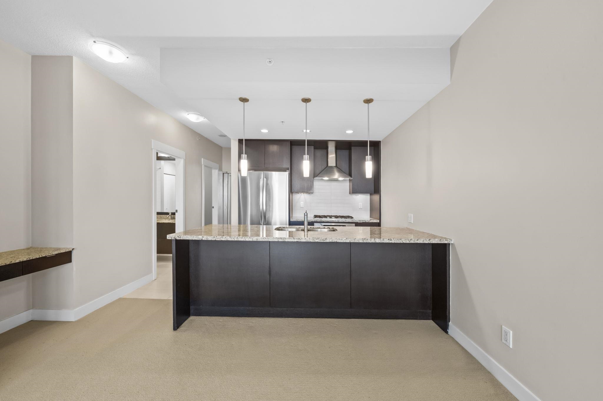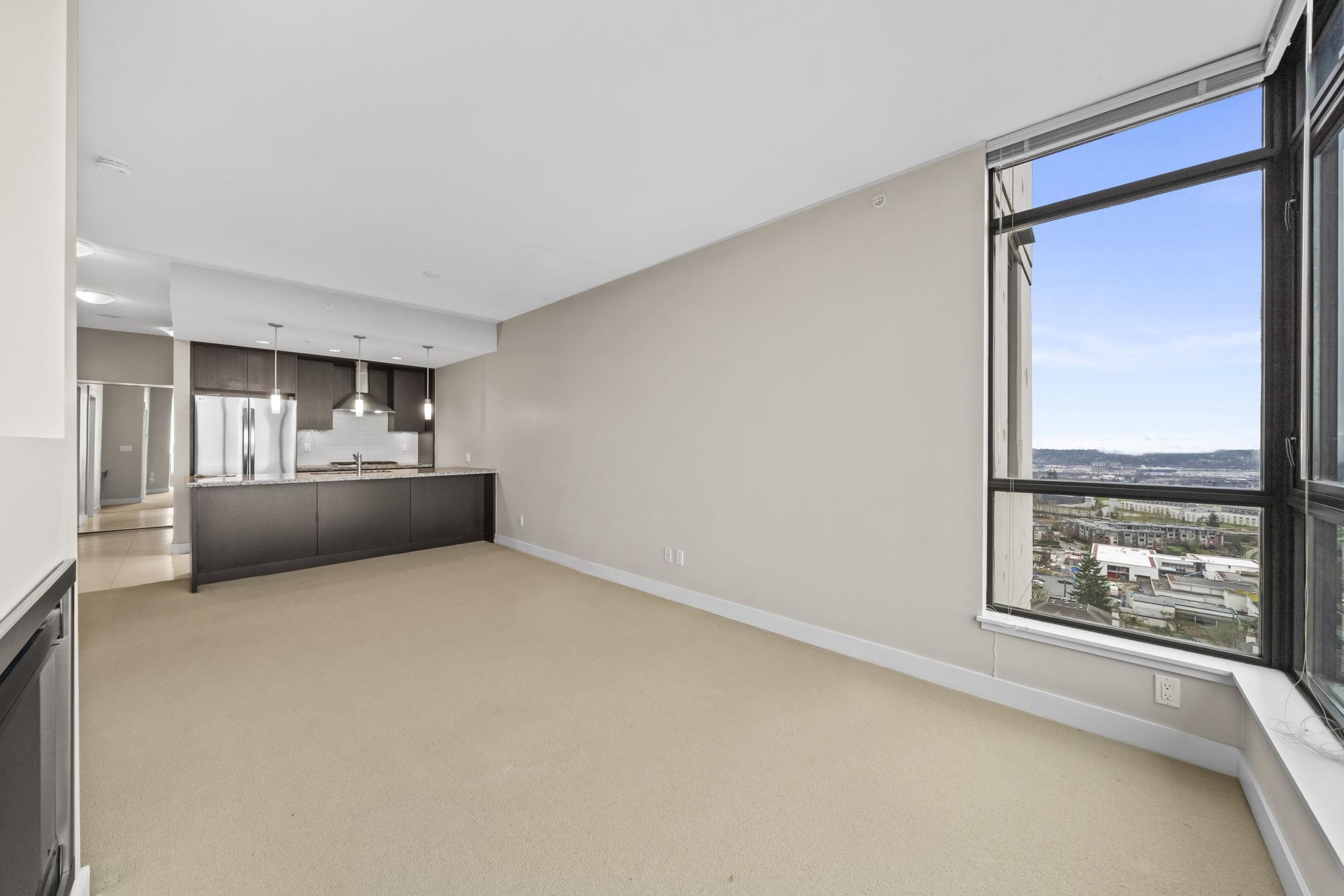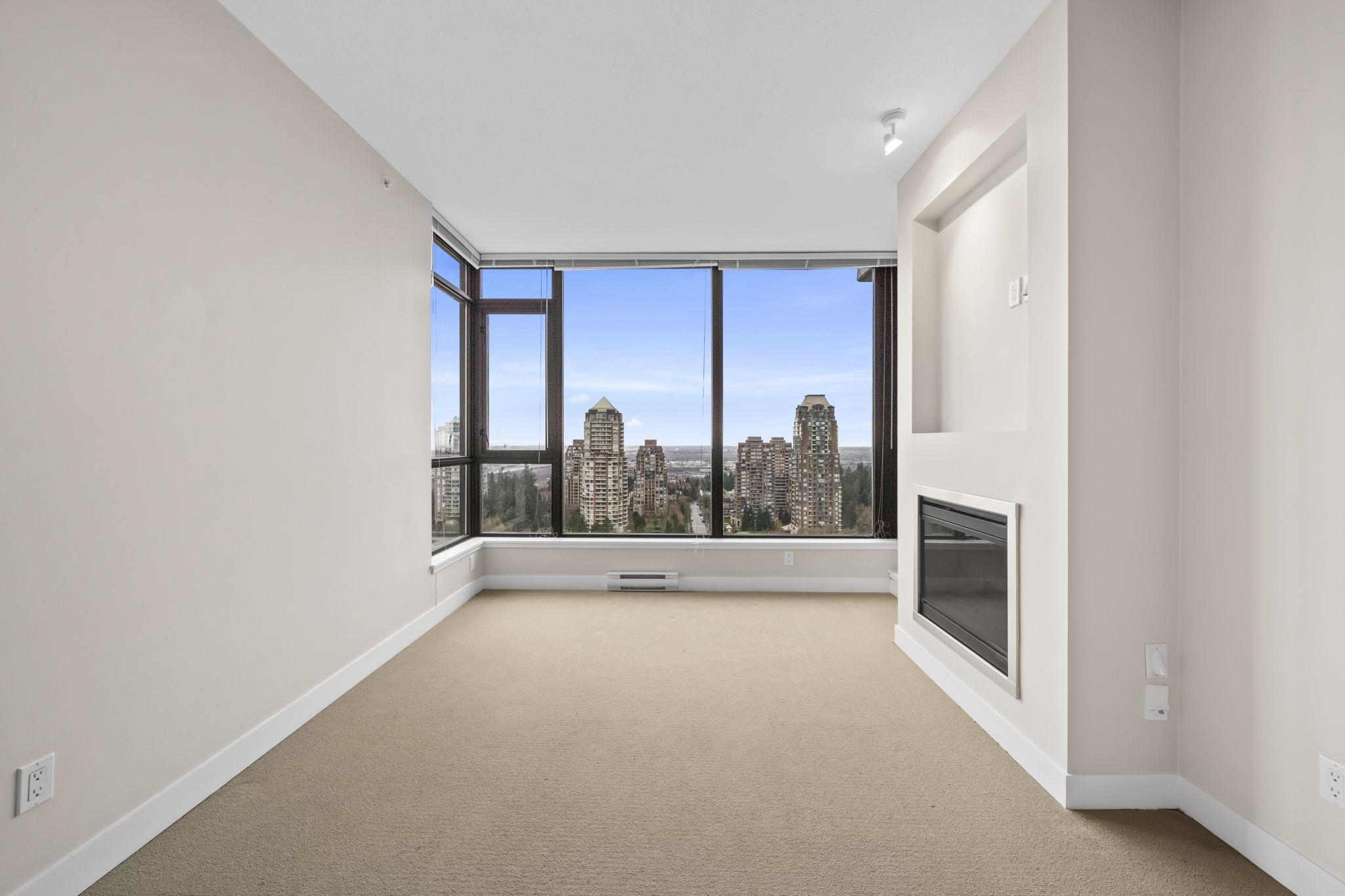Welcome to Park 360 by renowned developer Cressey—where quality meets lifestyle. This bright and spacious corner 1 bed + den home features an exceptional open layout with windows that fill the space with natural light, showcasing breathtaking city and mountain views. Cozy up by the elegant electric fireplace, perfect for relaxing evenings at home. The versatile den is ideal for a home office. Enjoy unbeatable convenience just steps to Edmonds SkyTrain Station, with shops, restaurants, and everyday essential...