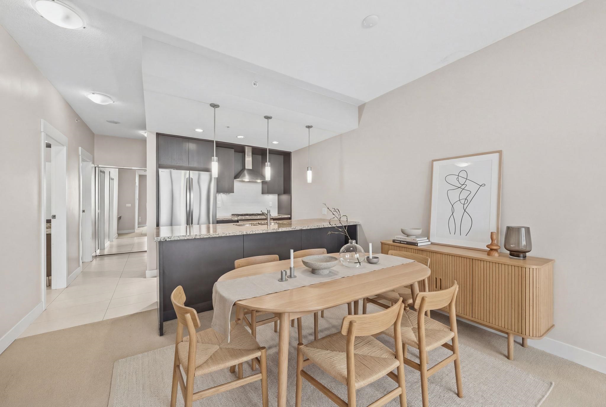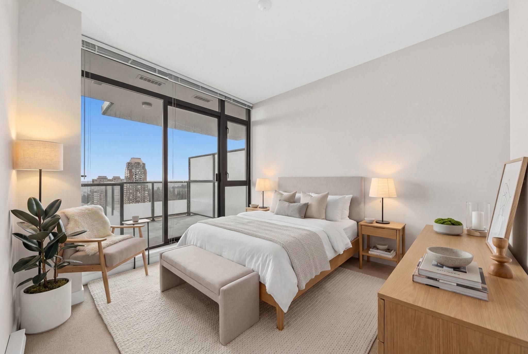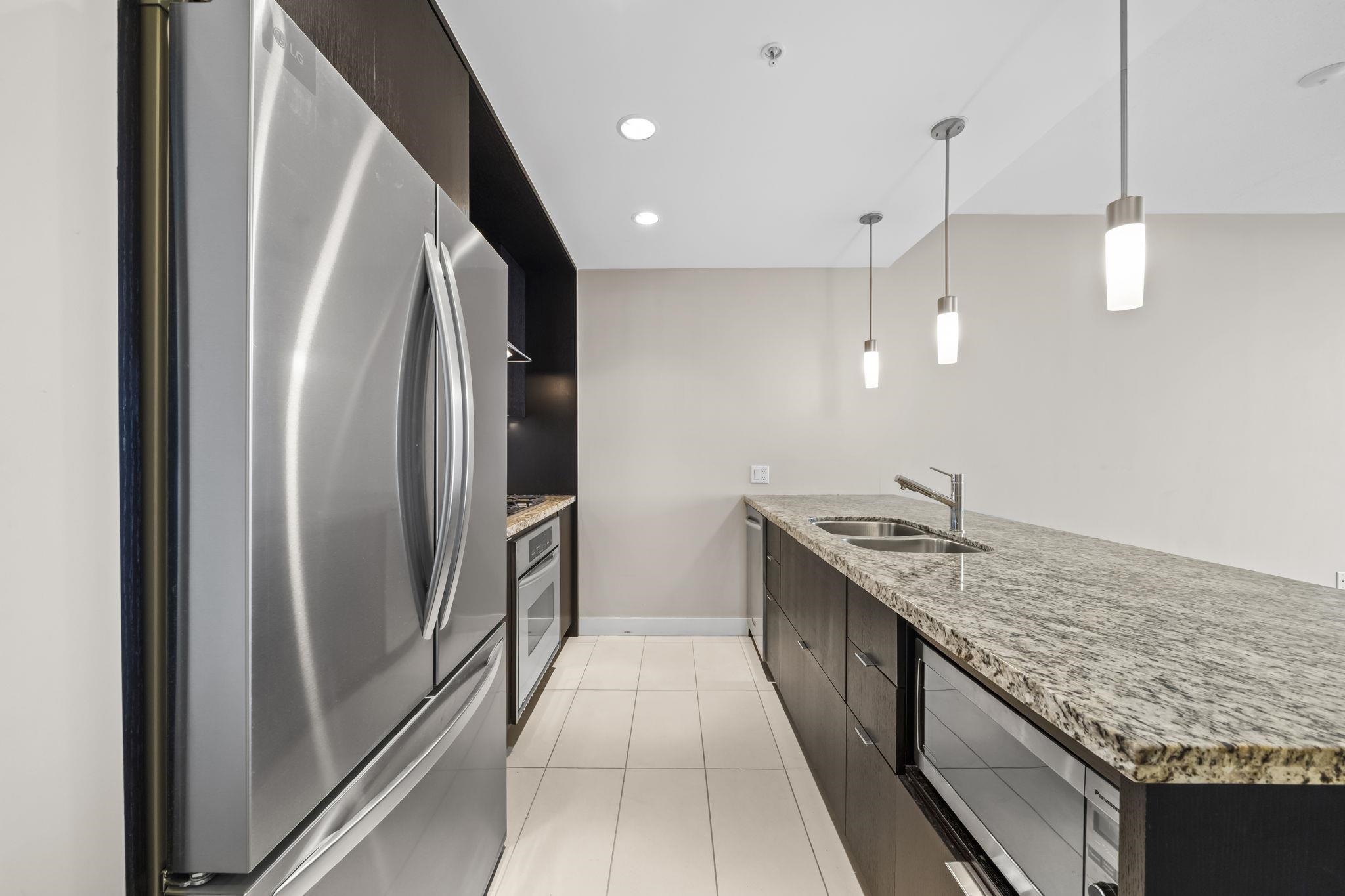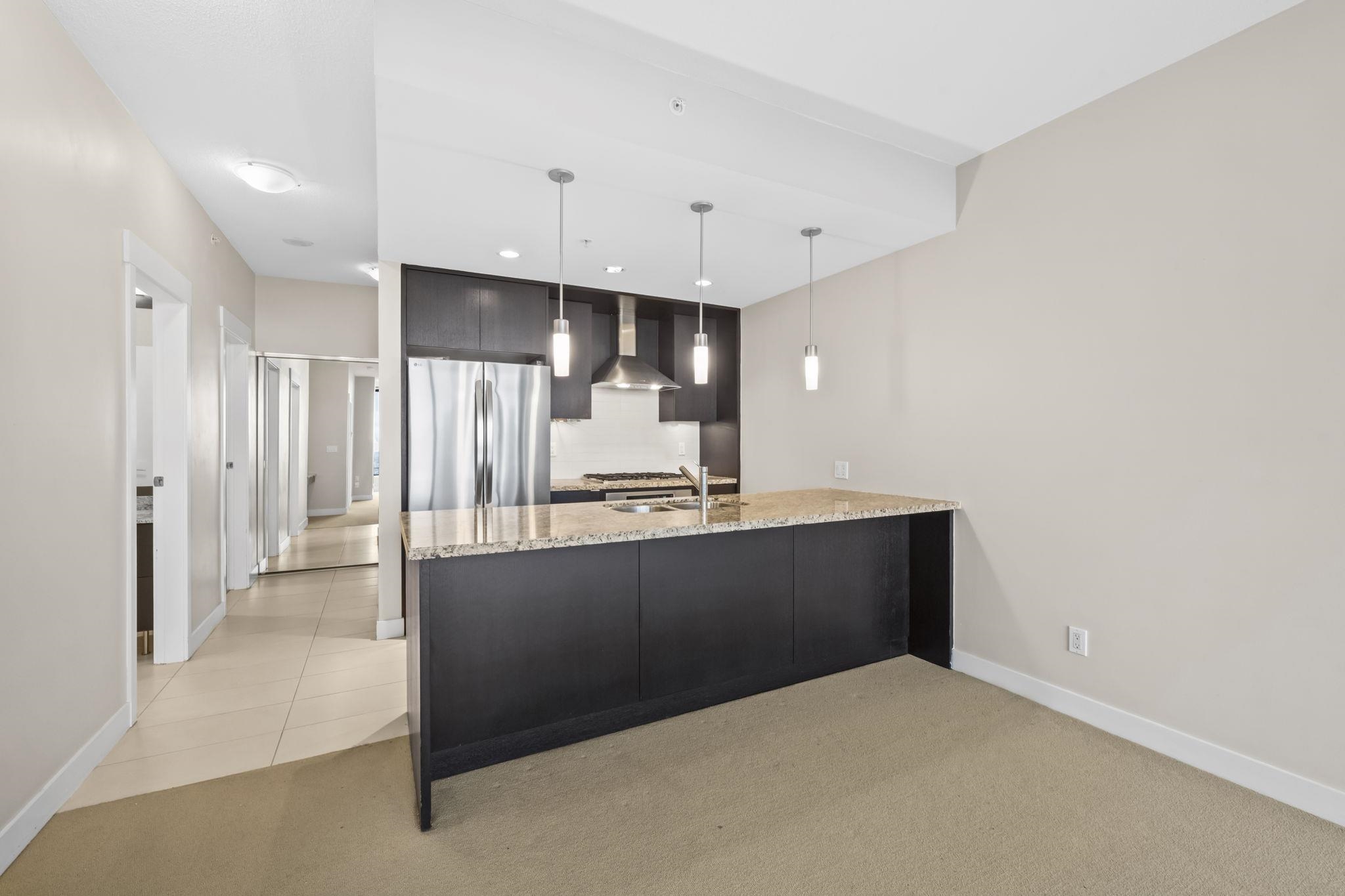 Welcome to Park 360 by renowned developer Cressey—where quality meets lifestyle. This bright and spacious corner 1 bed + den home features an exceptional open layout with windows that fill the space with natural light, showcasing breathtaking city and mountain views. Cozy up by the elegant electric fireplace, perfect for relaxing evenings at home. The versatile den is ideal for a home office. Enjoy unbeatable convenience just steps to Edmonds SkyTrain Station, with shops, restaurants, and everyday essential...