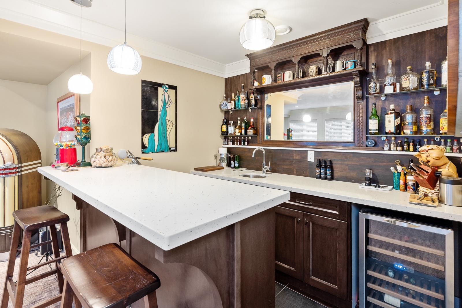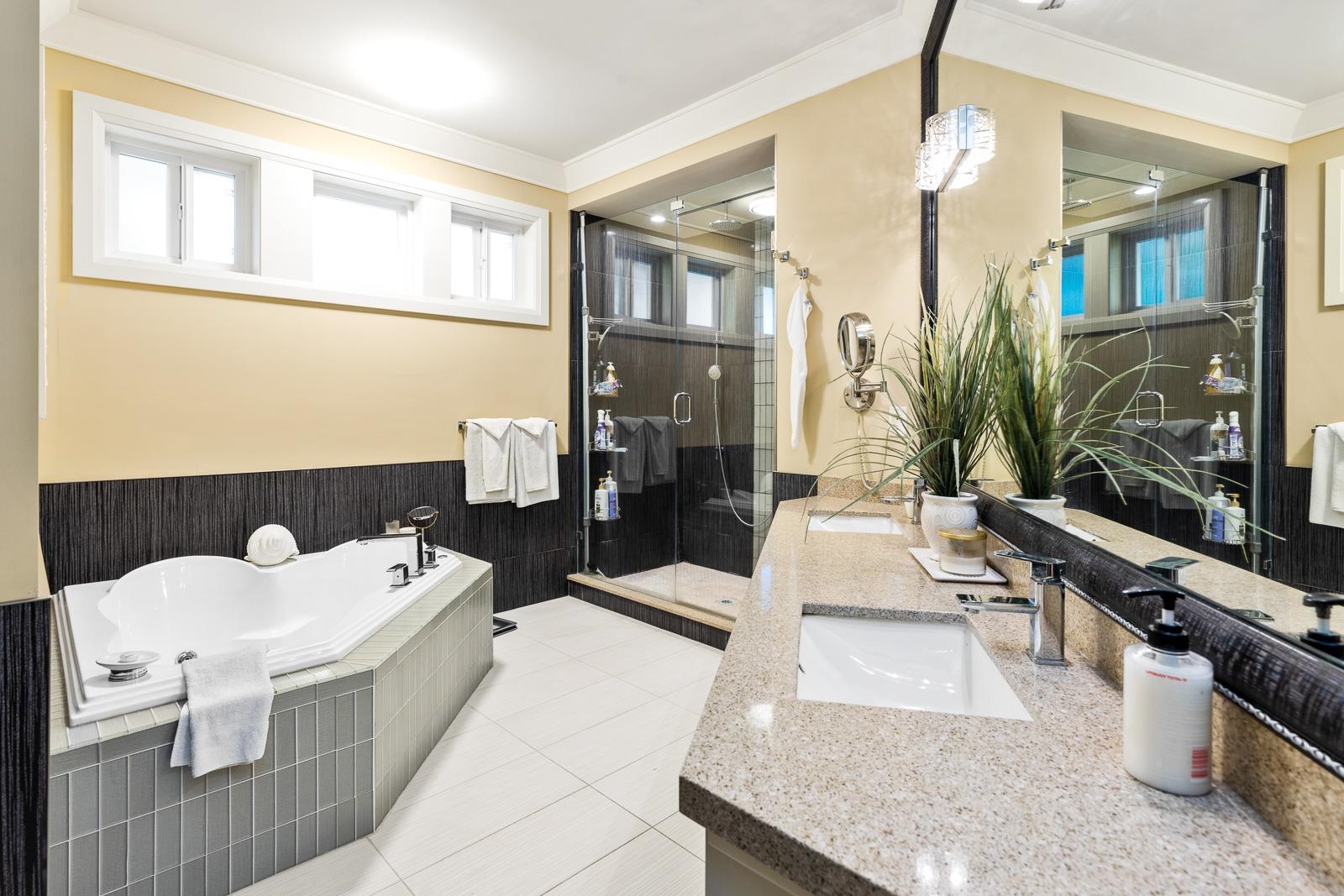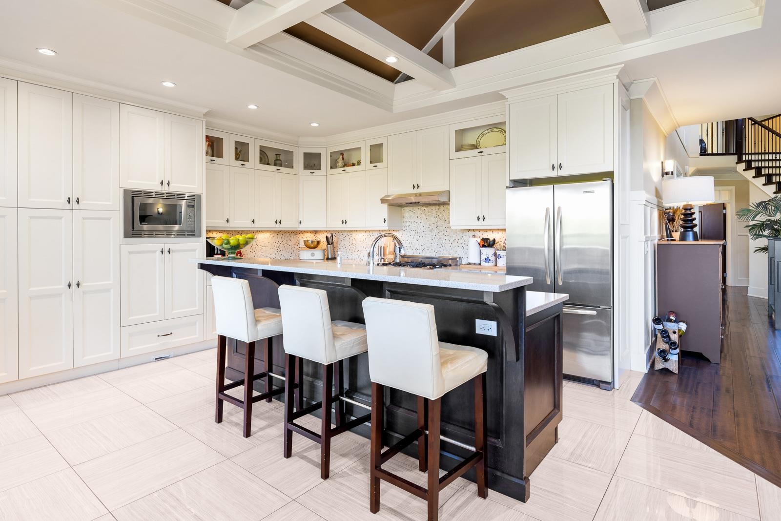 An extraordinary MASTER ON MAIN home offers 4 bdrms/5 bths and an exceptional blend of luxury, style, and functionality. The VAULTED GREAT ROOM features stunning farmhouse beams, designer lighting and a BRIGHT and OPEN feel. The GOURMET kitchen is equipped with quartz countertops, a dual-fuel range and ample space for entertaining. Set on a meticulously landscaped PRIVATE 9,000 sqft lot complete with MATURE cedars, custom water feature and full irrigation. FULLY FINISHED basement boasts a media/theatre room...
