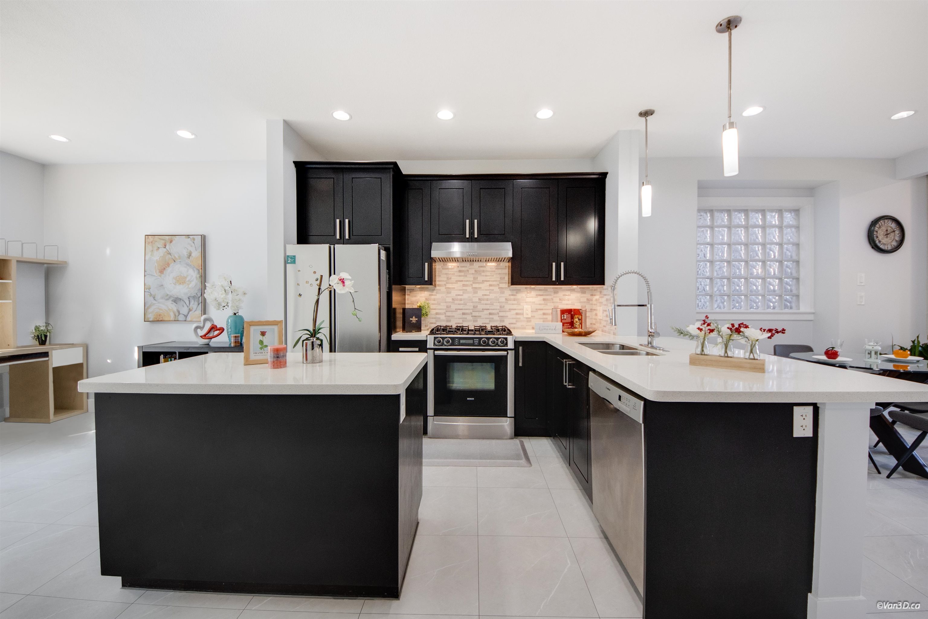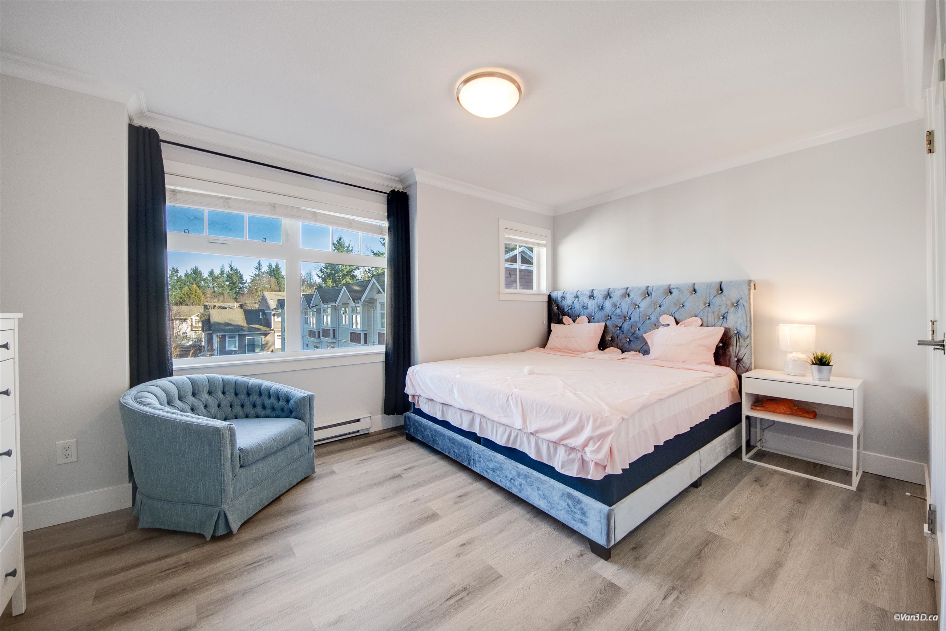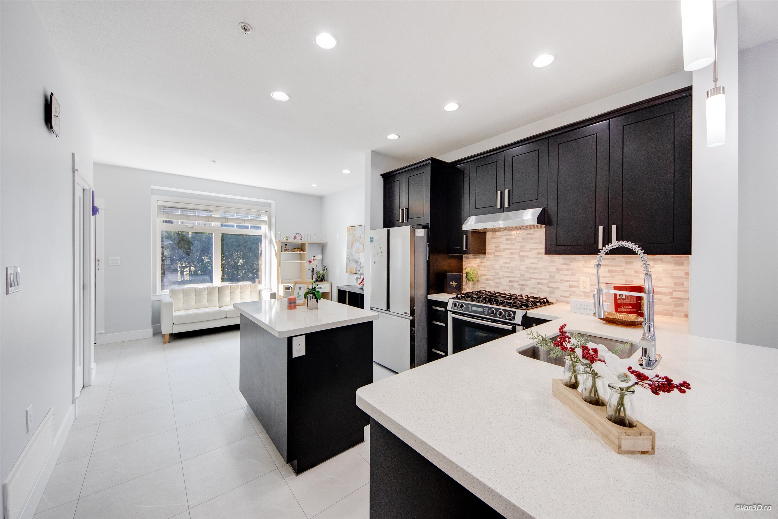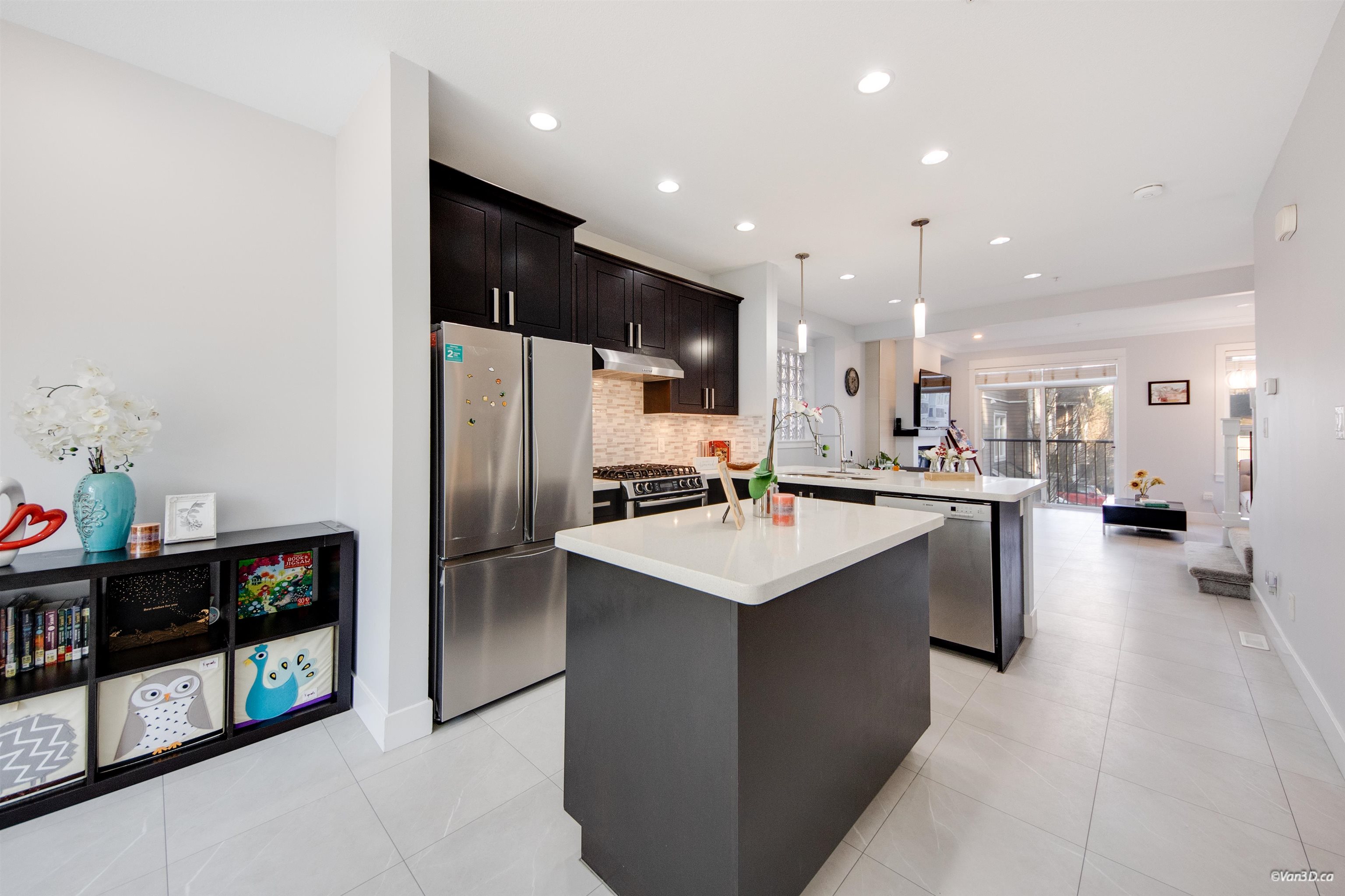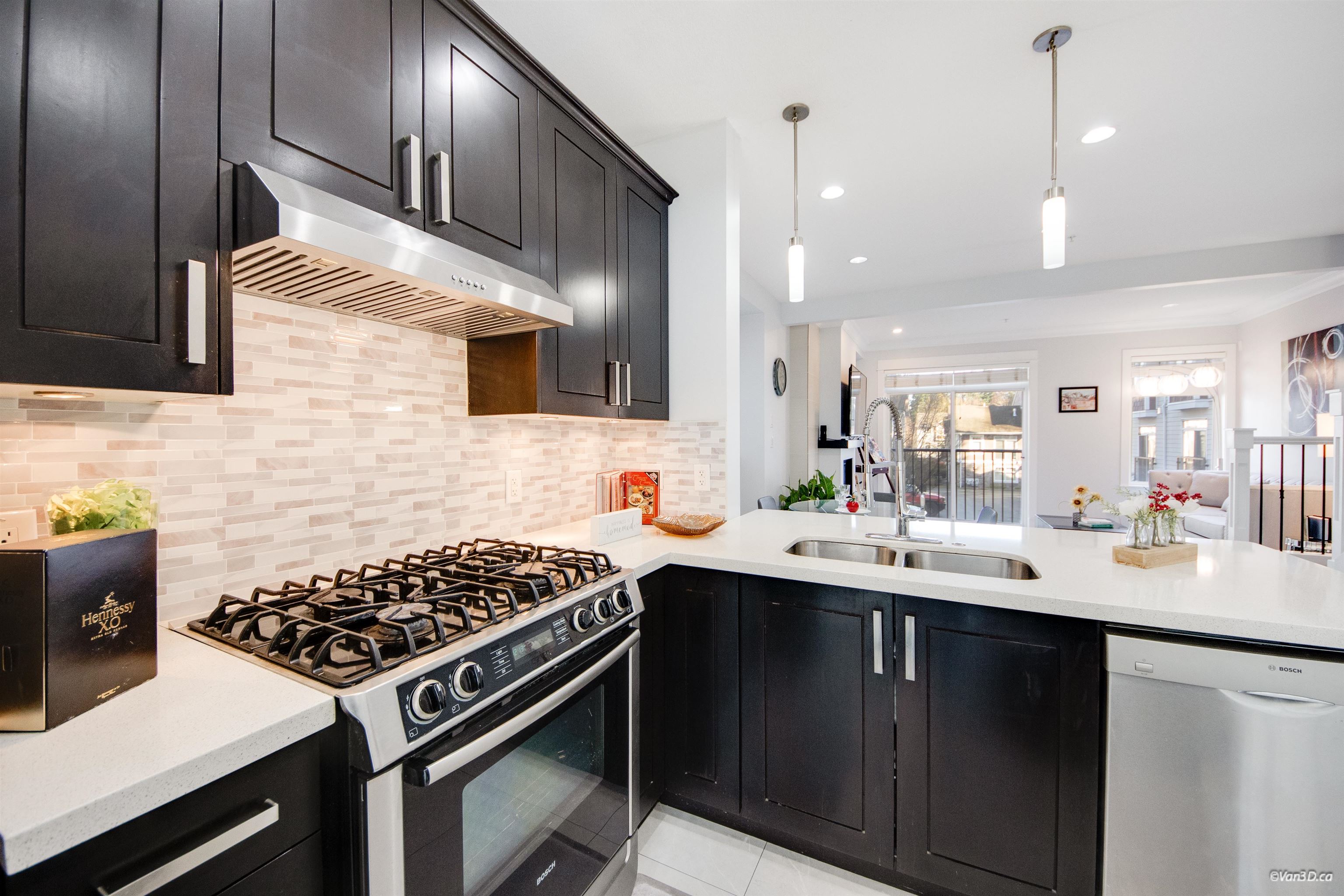 Stylish quality-built end-unit townhome at Allure offering over 1,900 sqft of functional living. This centrally located 3 bed, 3 bath home is steps to parks, schools, transit, shopping, and offers quick access to highways and US border. Bright main floor features 9’ ceilings, crown moldings, quartz countertops, engineered hardwood flooring, and powder room. Modern kitchen with Bosch & Fisher Paykel appliances, and quality fixtures. Spacious primary bedroom includes heated ensuite floors, dual vanity, and fr...
