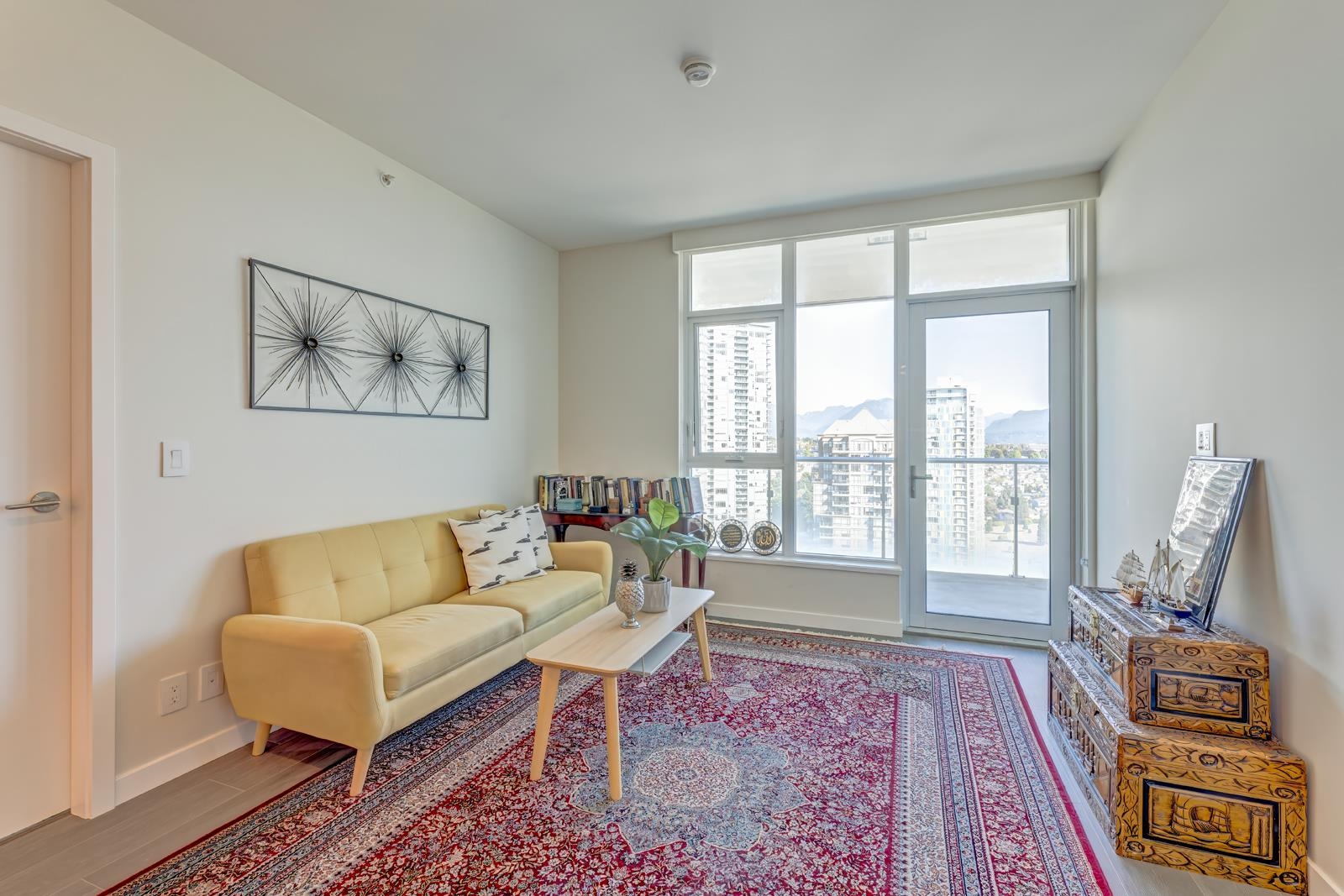 Gilmore Place Tower 3 by the Onni Group! This Air-conditioned North facing 2 bed 2 bath 945SF boasts BREATHTAKING city and mountain views, functional layout and high-end finishes throughout. Gourmet Kitchen with loads of cabinets and Center Island, Luxury Primary bedroom with walk-through closets and 5 pc Spa-inspired Ensuite. Huge covered deck for you to enjoy the Sunset! World-class amenities including a Fully equipped gym, pet wash station, bowling alley, golf simulator, karaoke rooms, guest suites, Outd...