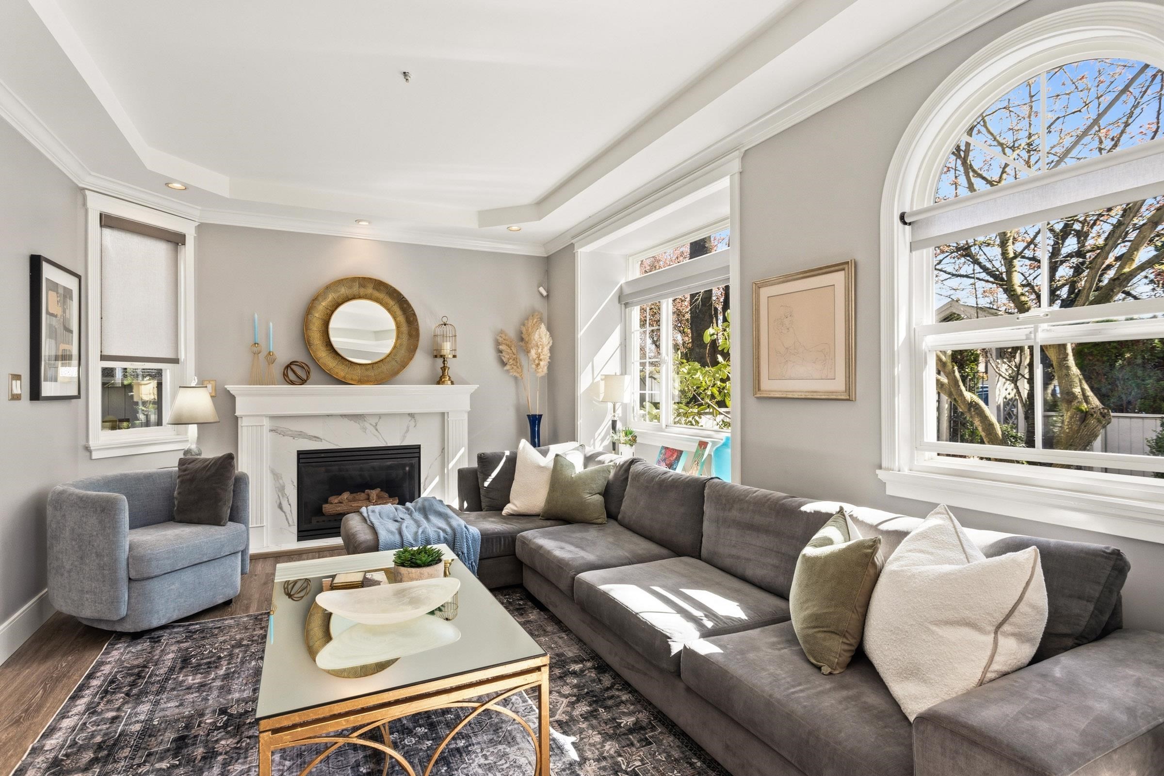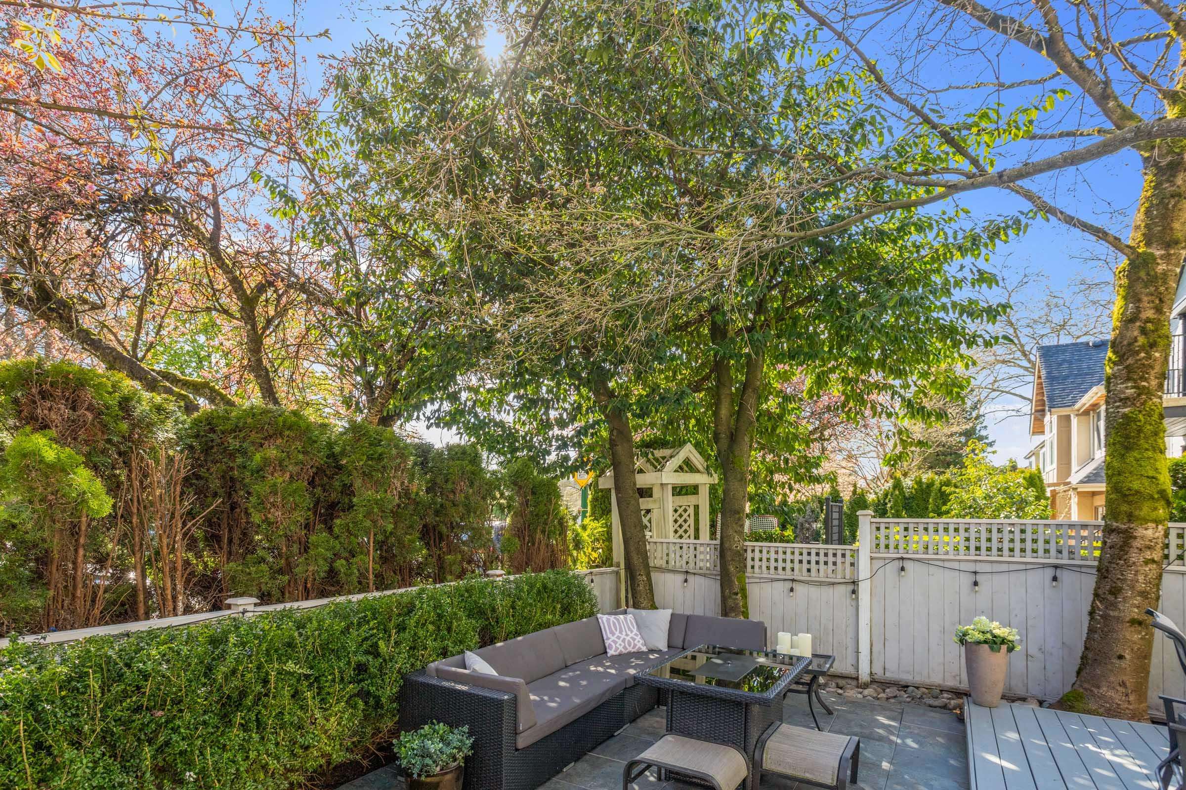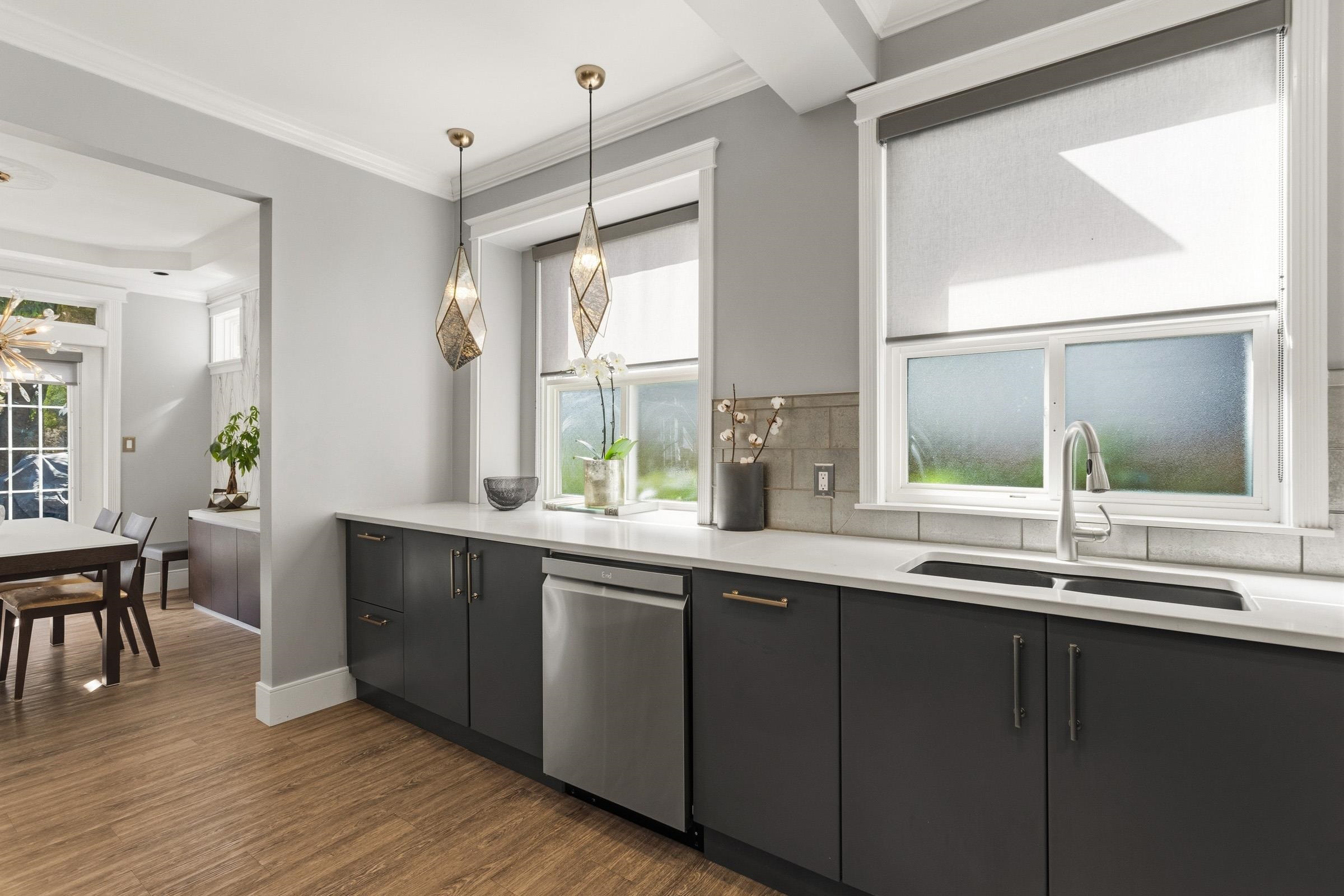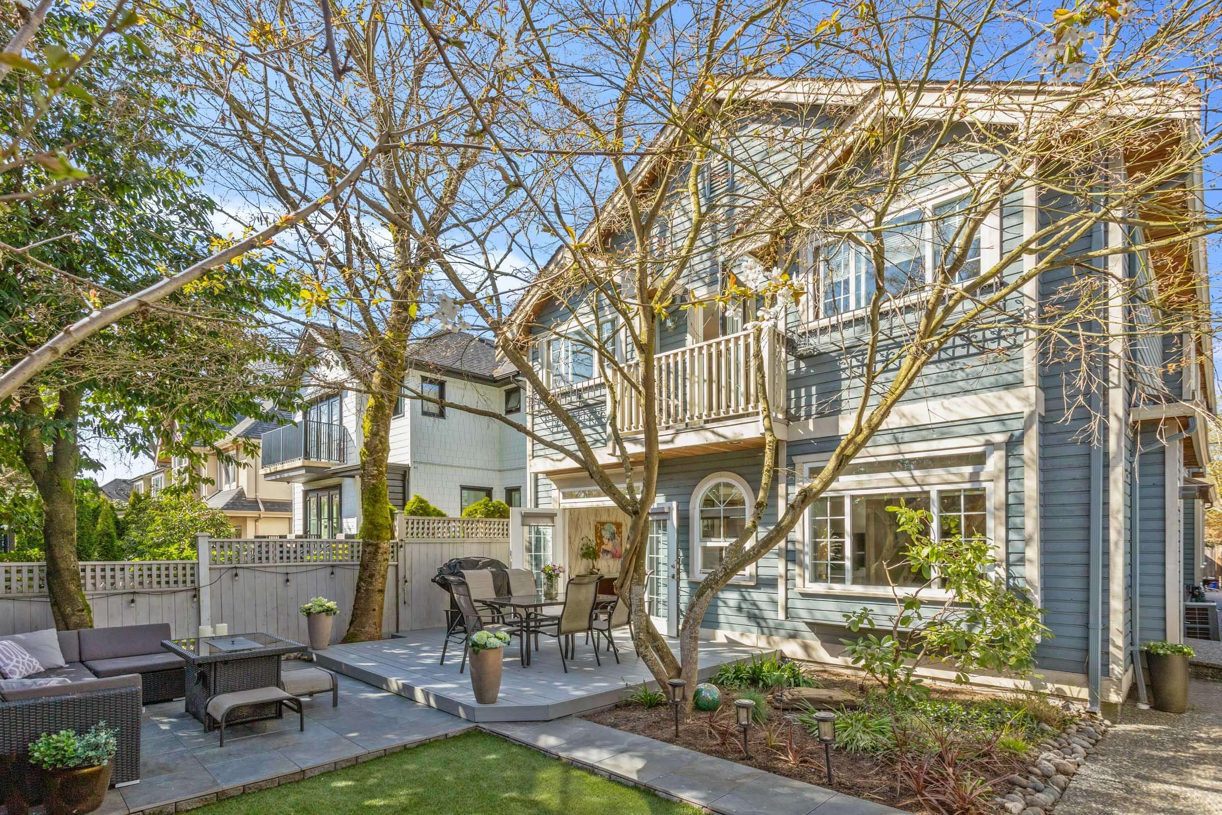 Bright and beautifully renovated front ½ duplex offering a south-facing yard with mature trees for privacy. Elegant two-tone kitchen features Caesarstone countertops, S/S appliances, a gas cooktop, and a striking glass and gold leaf backsplash. Spacious dining area with French doors opens to a private deck—perfect for seamless indoor-outdoor entertaining. Living room is anchored by a cozy gas fireplace. Upstairs, three well-appointed bdrms offer custom built-ins, lrg primary bdrm showcases a Juliet balcon...