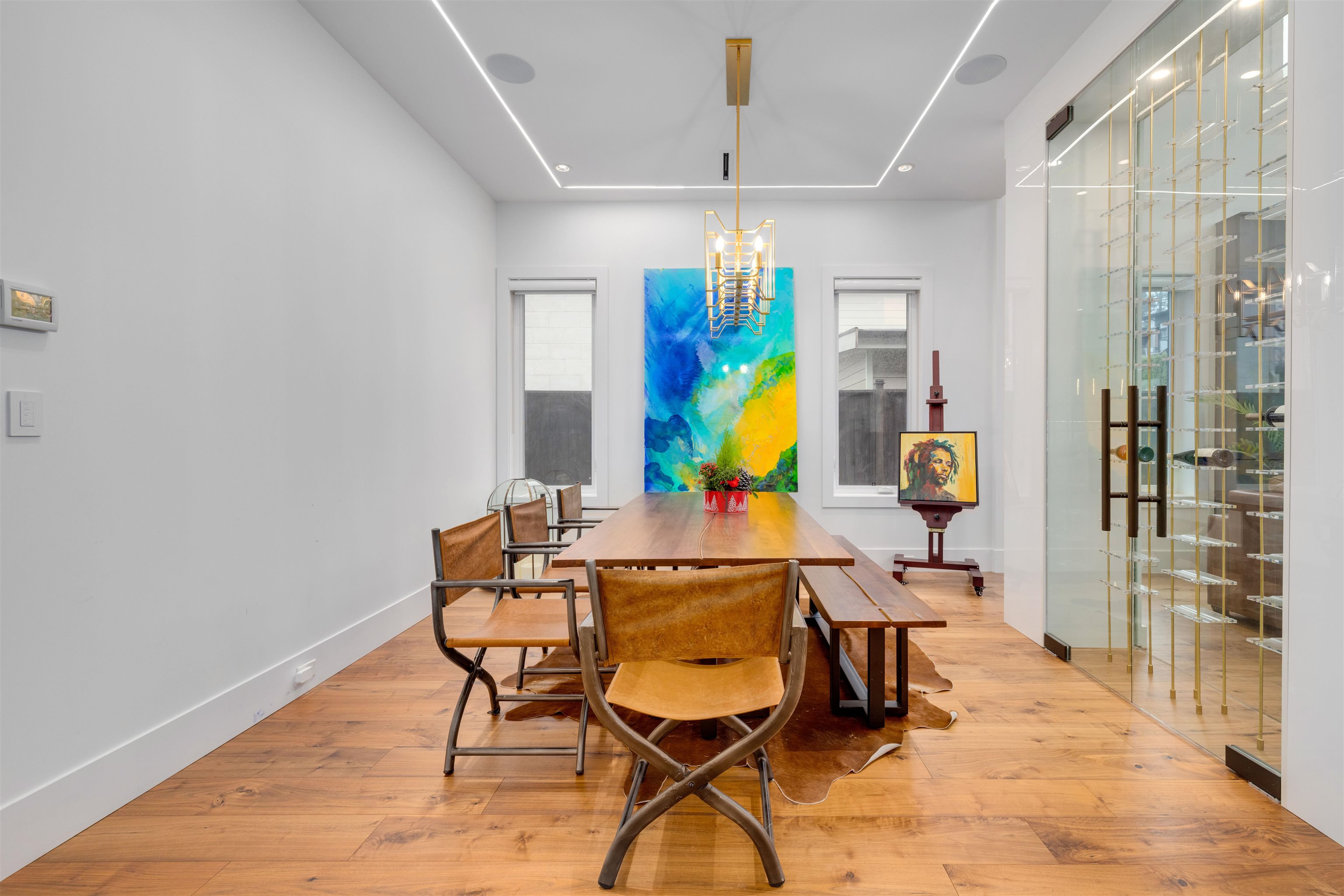 Welcome to the ultimate in modern luxury living. This exceptional residence offers over 6,300 sq. ft. of meticulously crafted space, seamlessly blending bold contemporary design w/ timeless elegance. The grand open-concept layout features soaring ceilings & an abundance of natural light. The chef’s kitchen showcases high-gloss custom Italian cabinetry, elite PROFESSIONAL WOLF and SUB-ZERO appliances, along w/ a fully equipped wok kitchen. A stunning LED-lit wine cellar adds a dramatic touch. This smart home...