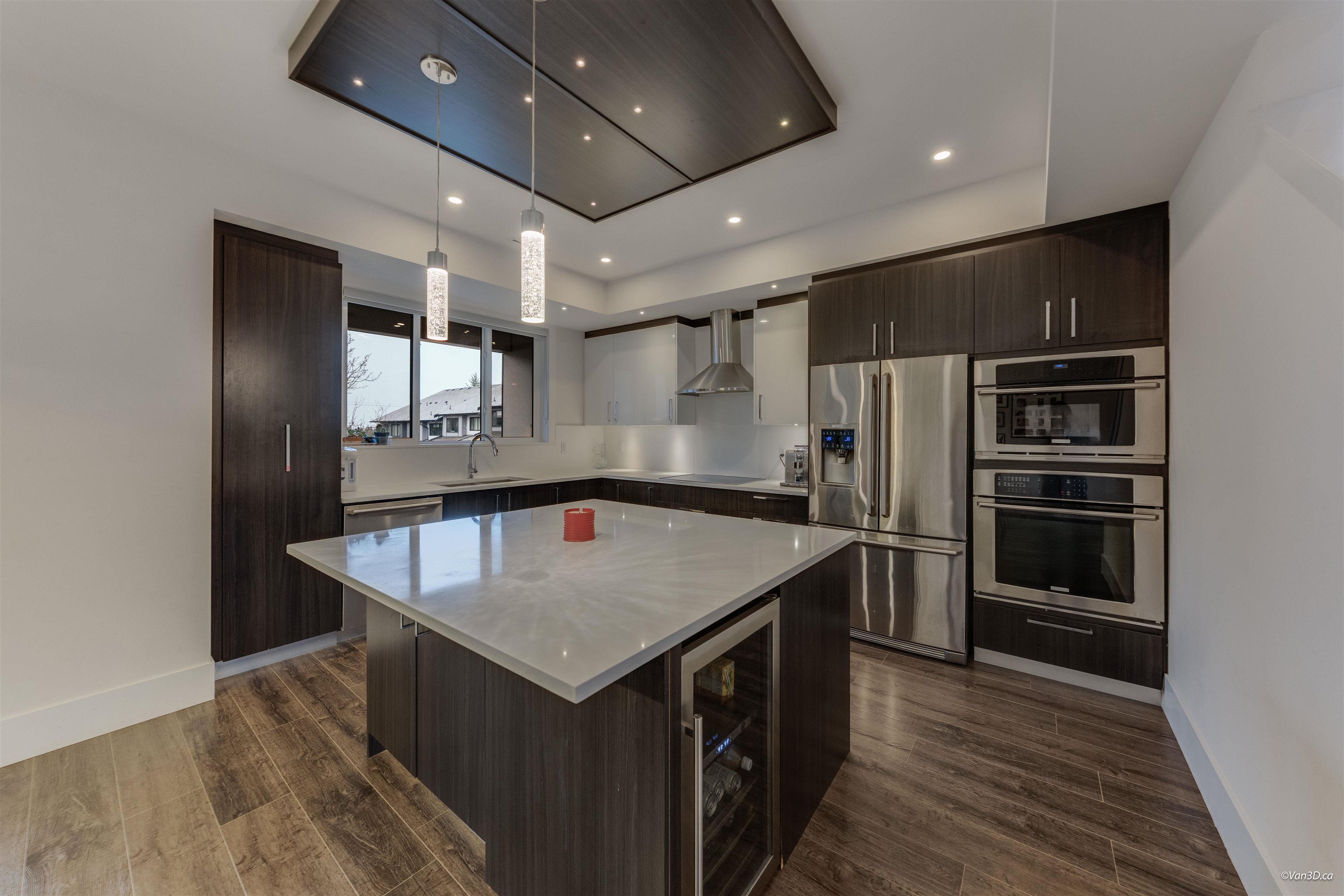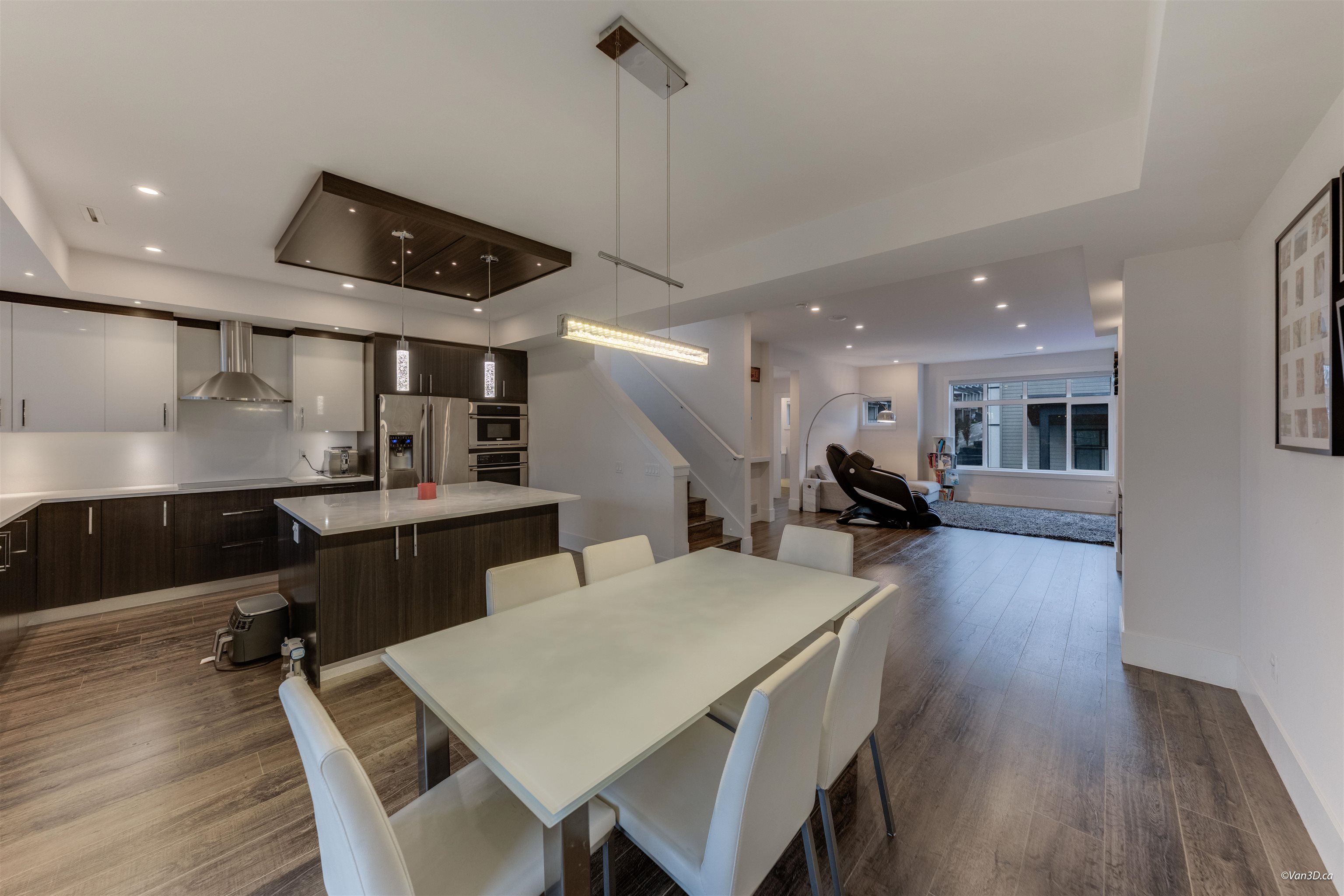 Welcome to EVOQUE at Sullivan Station by Maskeen Group. This rare 2,200 sqft inside corner townhouse offers 4 bedrooms, 4 bathrooms and 4-car parking (double garage + driveway). Bright open-concept main floor features 9 ft ceilings, oversized windows, and a chef’s kitchen with Electrolux appliances, quartz countertops, large island, and built-in cabinetry. Energy-efficient geothermal heating & cooling, A/C, NuHeat in-floor heating, central vacuum, LED pot lights, motorized blinds, and staircase lighting. Up...