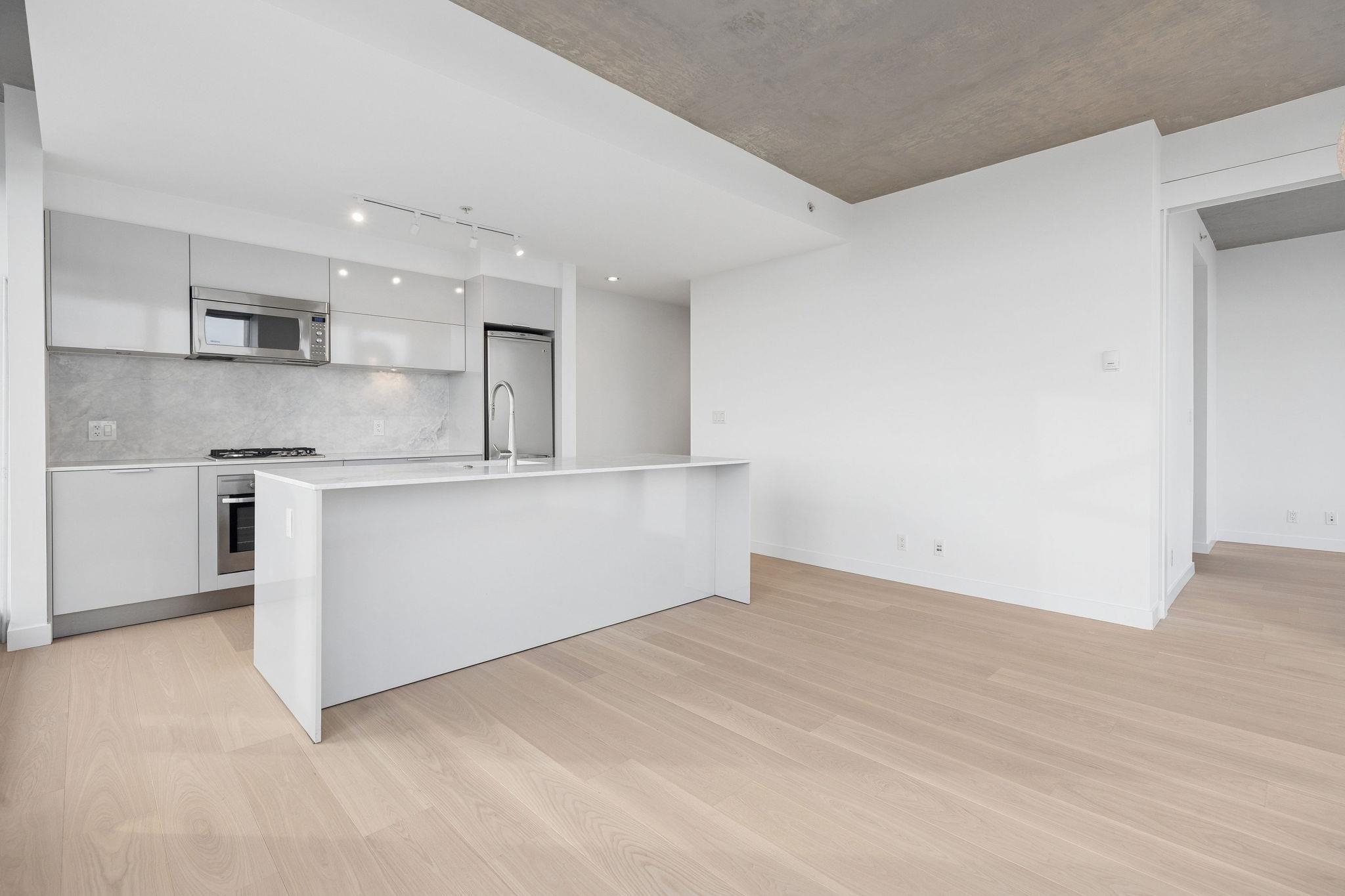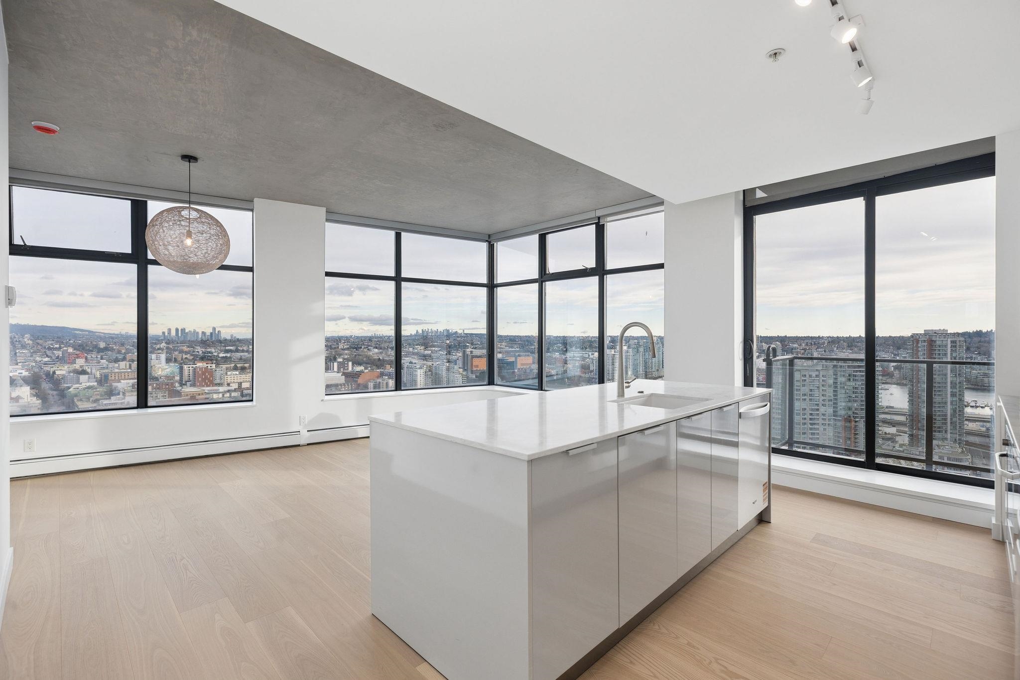 This sub-penthouse offers commanding panoramic views of Burnaby Mountain, False Creek, and Downtown. Enjoy mesmerizing sunrises from this 29th-floor, one-bedroom corner residence in the iconic Woodwards W32 tower. Thoughtfully designed with concrete construction and efficient floor plan, the home features an open-concept kitchen with a gas cooktop, new dishwasher, and new quartz countertops. New engineered hardwood floors extend throughout, while a private balcony invites evening grilling against a luminous...