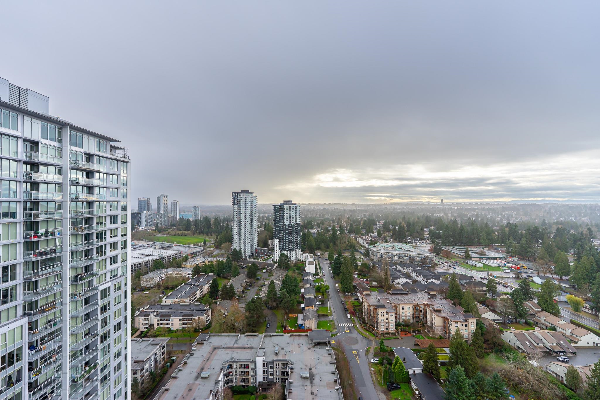 Beautiful condo in Surrey City Centre! Nearly 9' ceilings and big windows bring in tons of natural light to the living/dining room and both bedrooms. Modern kitchen with upgraded range hood, stainless steel appliances, quartz countertops, and sleek cabinetry. Large east-facing balcony with open city views. Amenities include 24-hour concierge, full gym, and lounge/meeting room. Prime location—steps to parks, shopping, SkyTrain, SFU/KPU, and the future UBC Surrey campus.