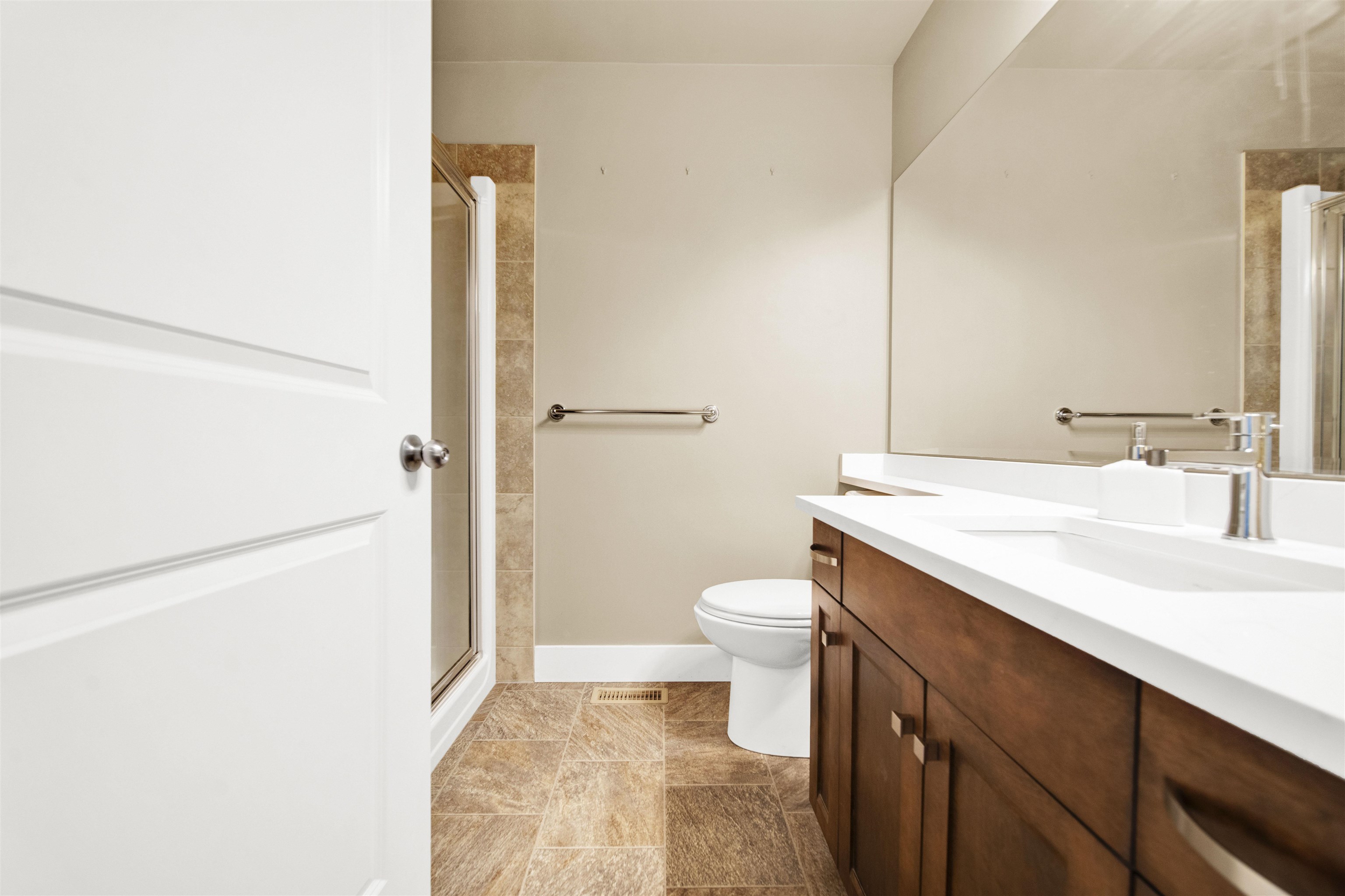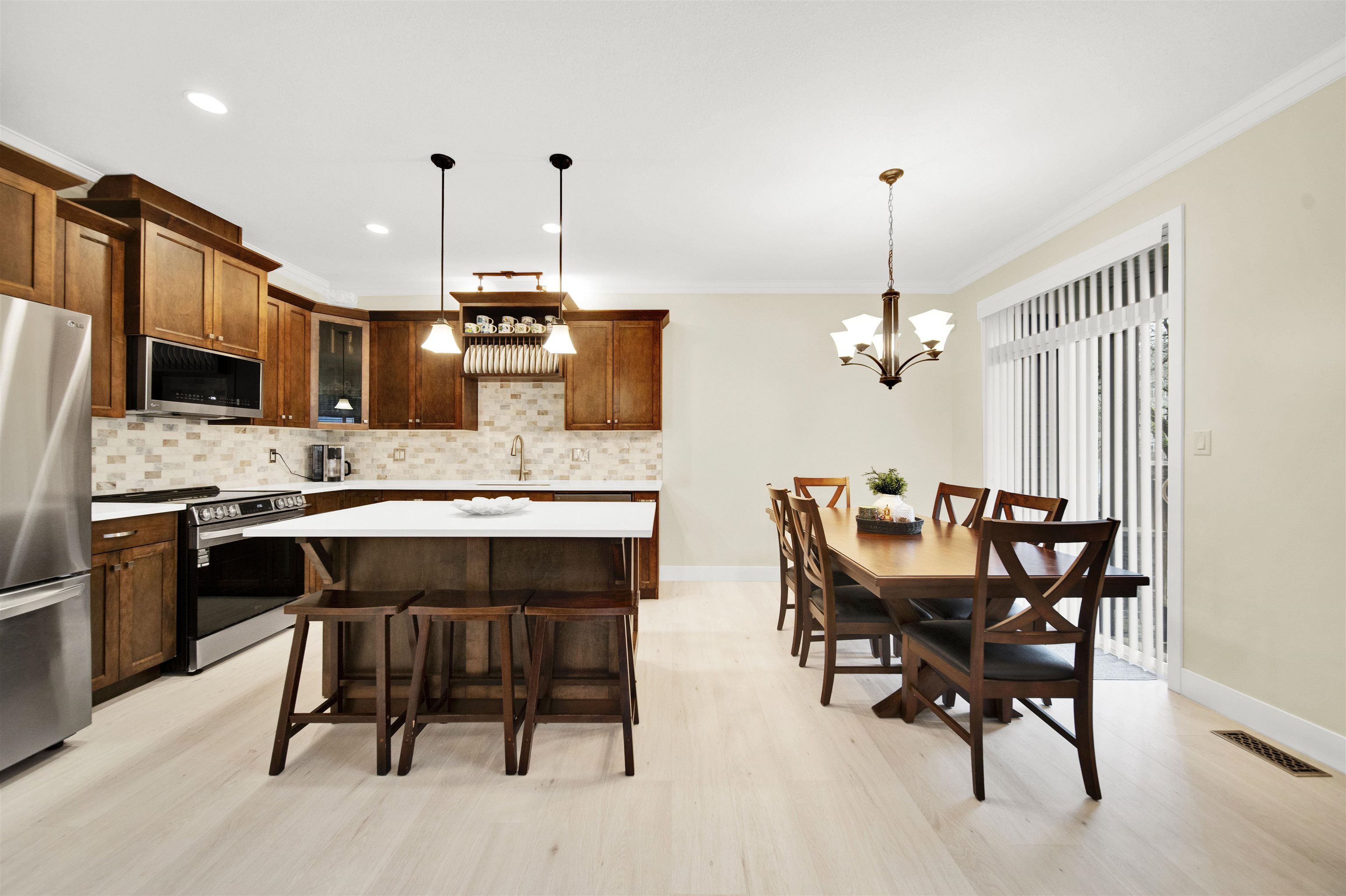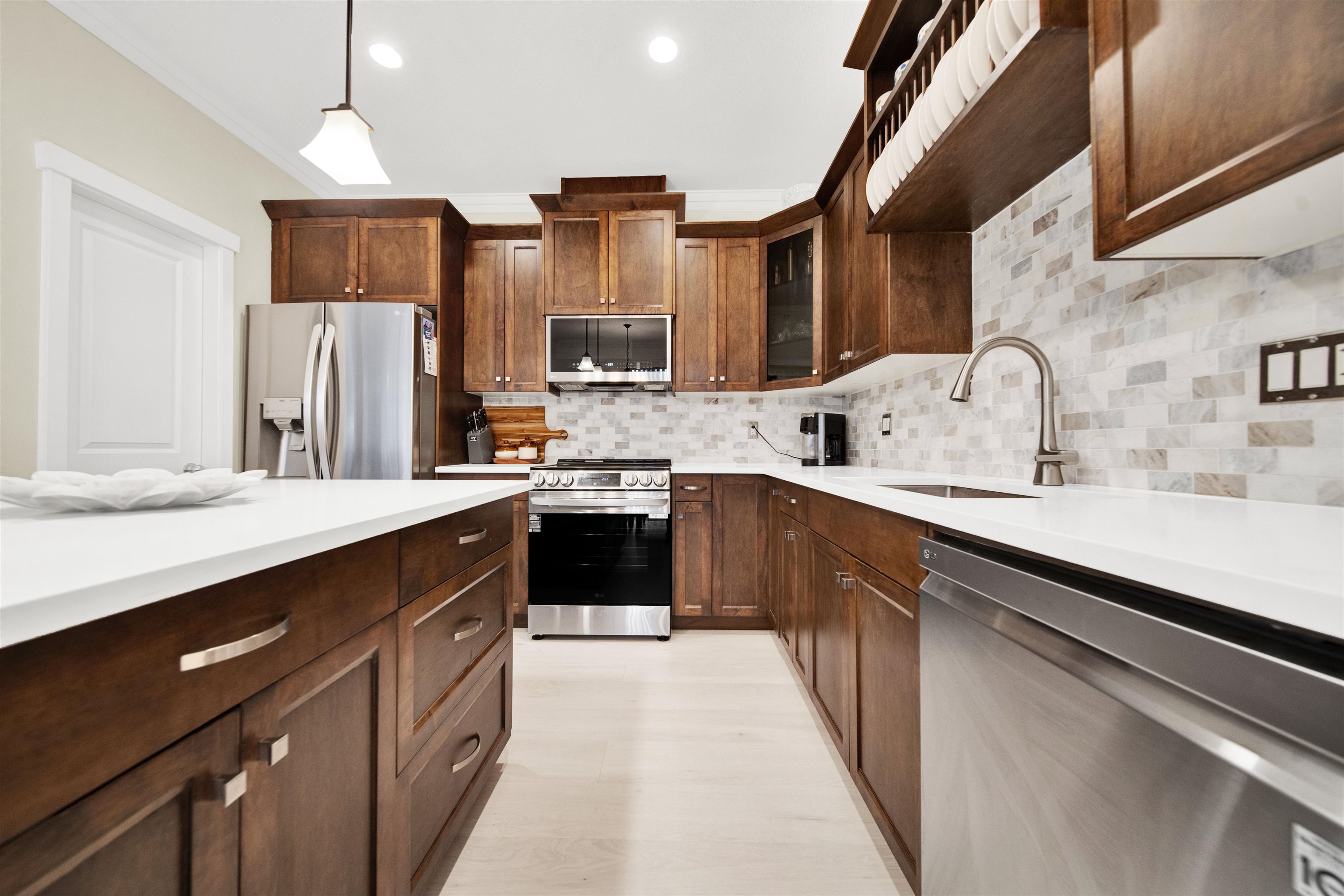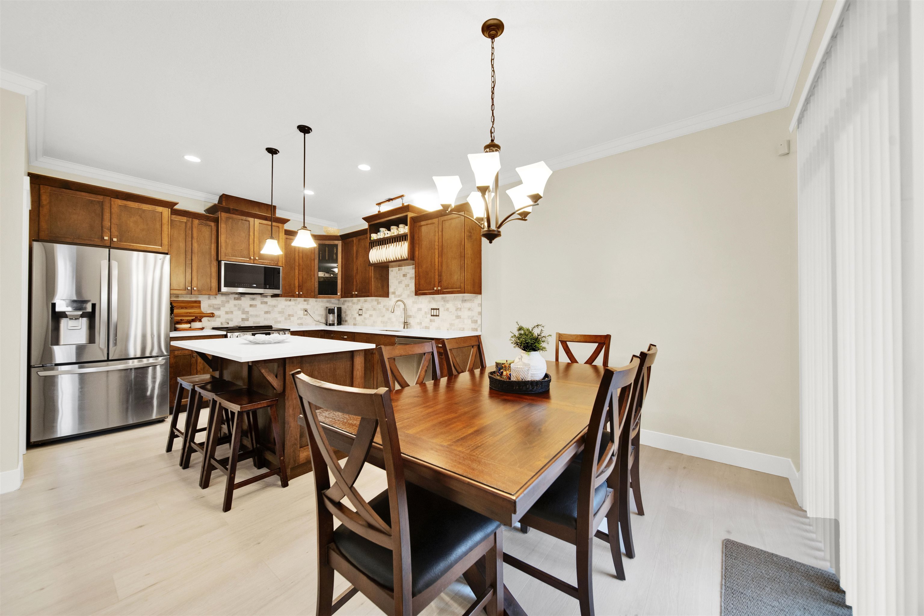 This END-UNIT delivers detached-style living: 4 brdm, 4 bath, 2,411 sq ft, double side-by-side garage & central A/C. Refreshed where it matters: quartz kitchen with marble-tile backsplash, matching quartz baths, new stove, washer/dryer & hot water tank, plus new laminate in the living rm + bsmt. Curl up by the cozy gas fireplace, then step out to your private fenced yard + patio. Primary brdm feels like a retreat with WIC, full ensuite & its own covered deck. Big secondary brdms too! Finished flex rm down c...