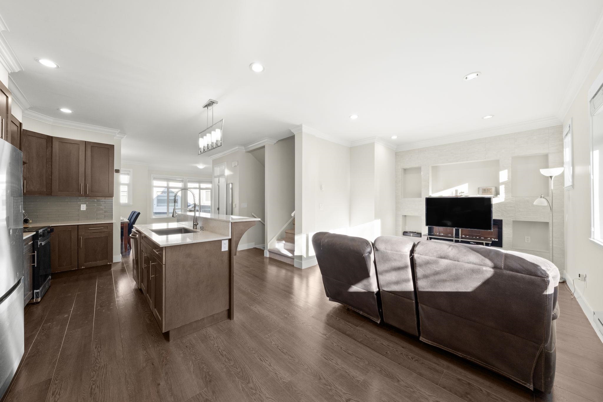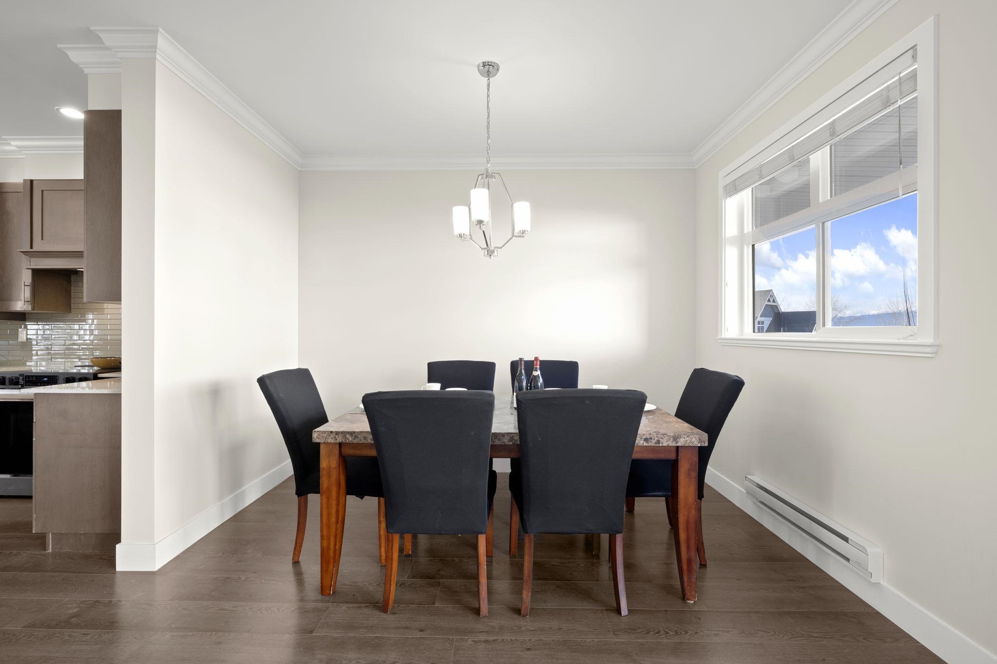 "WALNUT RIDGE”, a quiet townhome complex in Cloverdale. This is a large 4 bed 3.5 bath home over 2000 sf w/ an easy access to the future skytrain station. Airy 9 foot ceiling height on main floor w/ open kitchen provides accommodating vibes to your family and guests. Total 4 parking: Double side-by-side garage & 2 on driveway. Front door is south facing with a porch and a rear door w/ porch next to its garage for guest’s easy access. An extra storage space in the garage is a bonus. Updates to this home: bra...