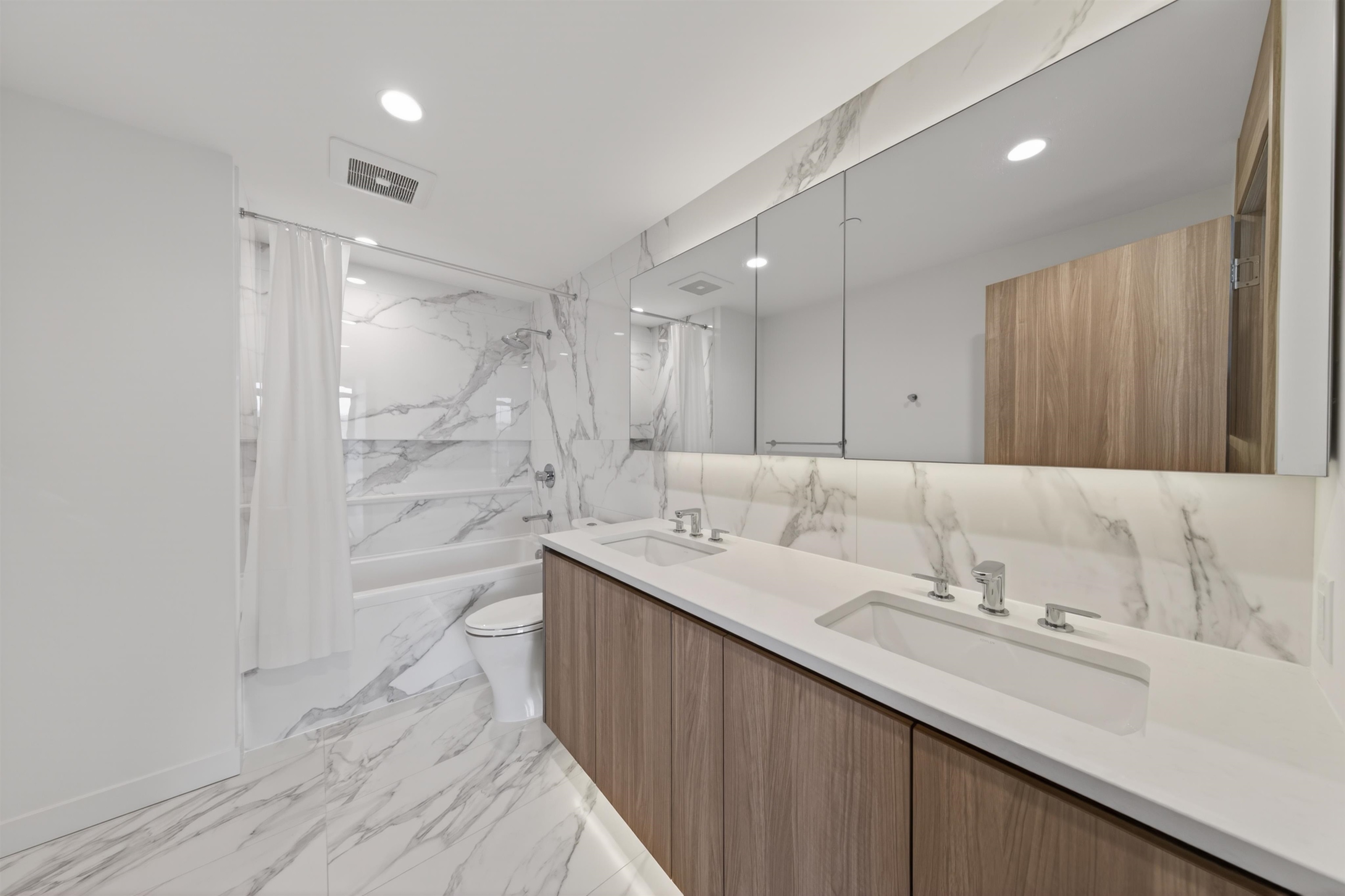 Two bedrooms plus Den home located in Concord Brentwood Hillside East master-planned community by Concord Pacific in Burnaby. Breathtaking view of north shore mountains from the expansive balcony. Home features a functional layout with high-end stainless steel appliances, quartz countertops, laminate wood flooring, central A/C, and custom window coverings throughout. Completes with radiant ceiling heaters and porcelain tile flooring for year-round comfort. Resort-style amenities include 24/7 concierge, gym,...