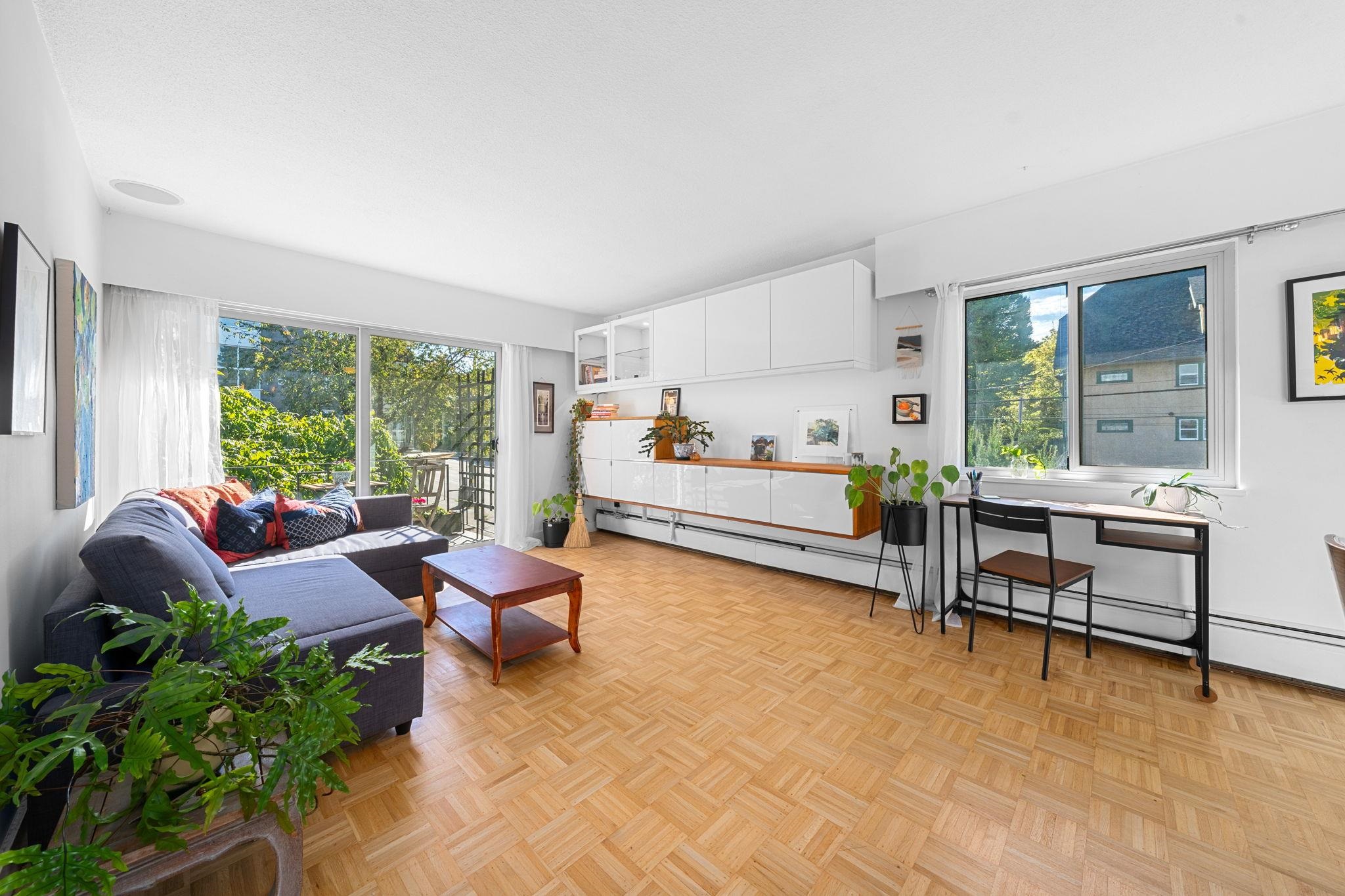 Welcome home to this bright and airy 2-bedroom top-floor corner retreat in charming Glen Oaks, a boutique 8-unit building in the sought-after Cambie Corridor. Stylish and welcoming, it features a sleek updated kitchen with quartz counters, stainless appliances and custom cabinetry, re-finished parquet hardwood floors, and an open layout perfect for gathering with friends. Relax with morning coffee or evening cocktails on the sunny southwest balcony. Steps to Douglas Park and walking distance to Emily Carr E...