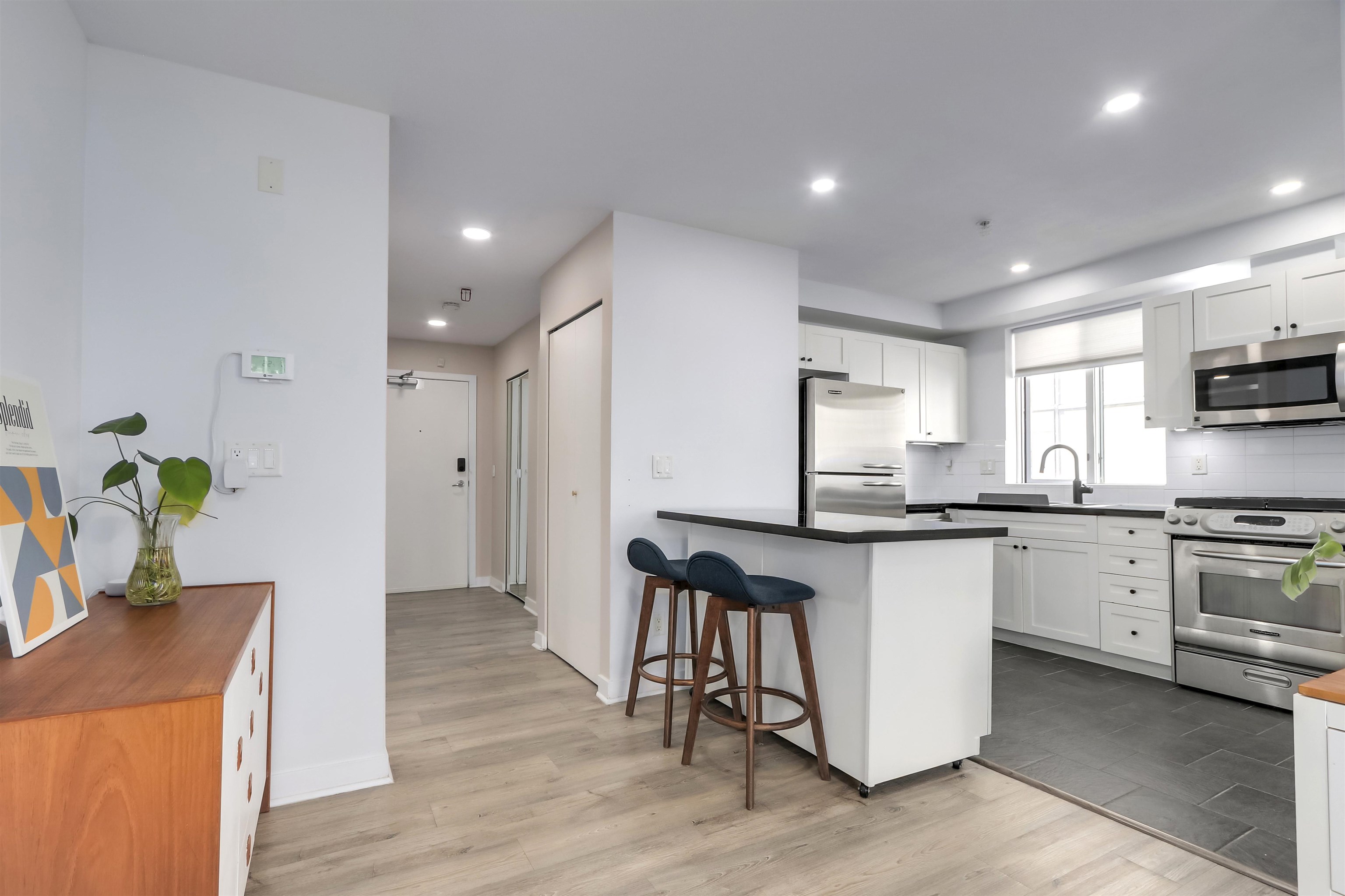 Welcome home to Sausalito, where modern comfort meets one of North Vancouver's most vibrant and walkable neighbourhoods. This stylish and spacious 2-bedroom, 2-full bath corner unit offers bright, open living on the quiet side of the building. Move-in ready, this unit features laminate flooring, a king-size primary bedroom, S/S appliances with a gas range, a gas fireplace, in-suite laundry and a spacious balcony. Stroll to shops, cafes, breweries, restaurants, the Shipyards, and the pier for the vibrant sum...
