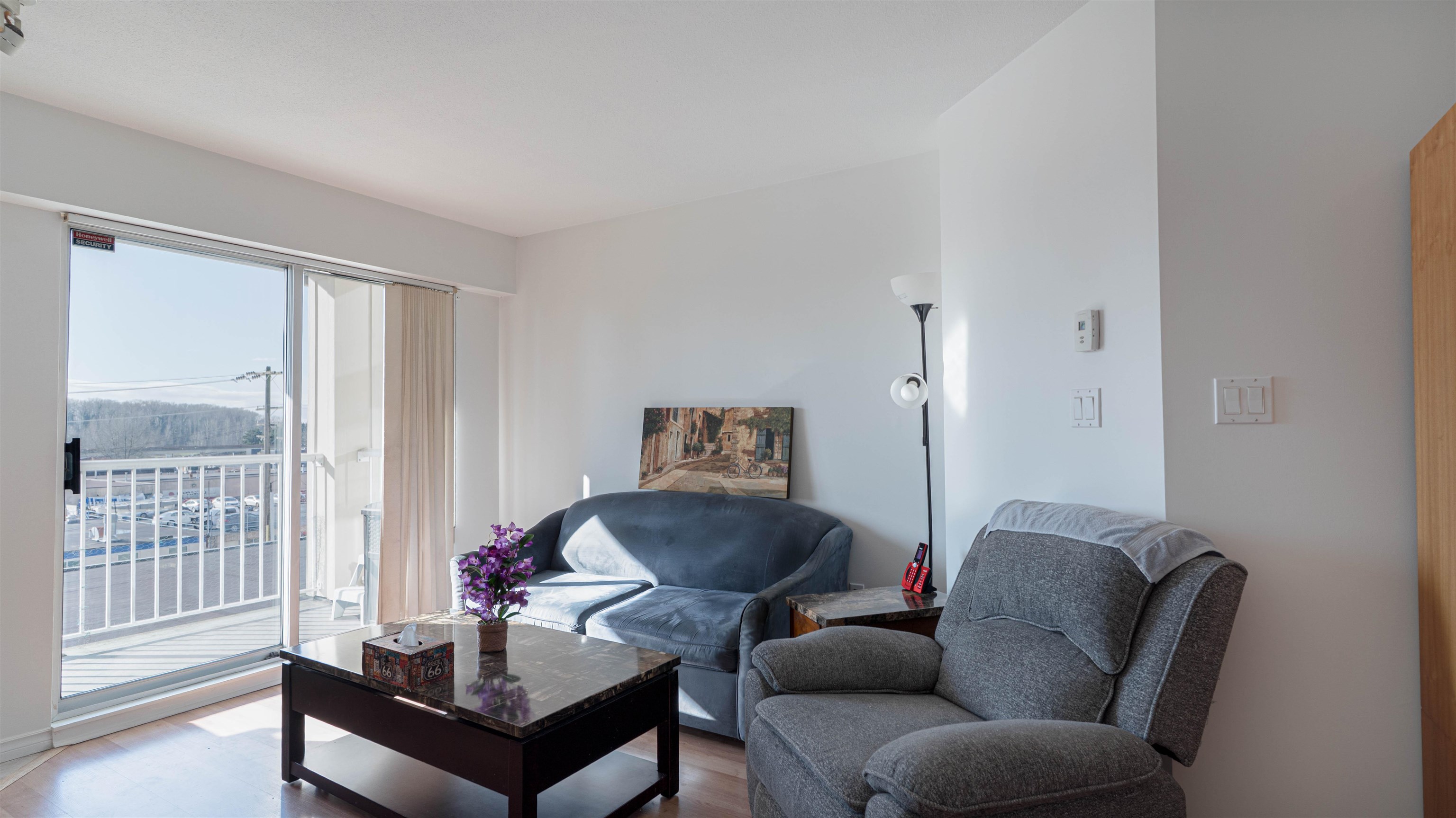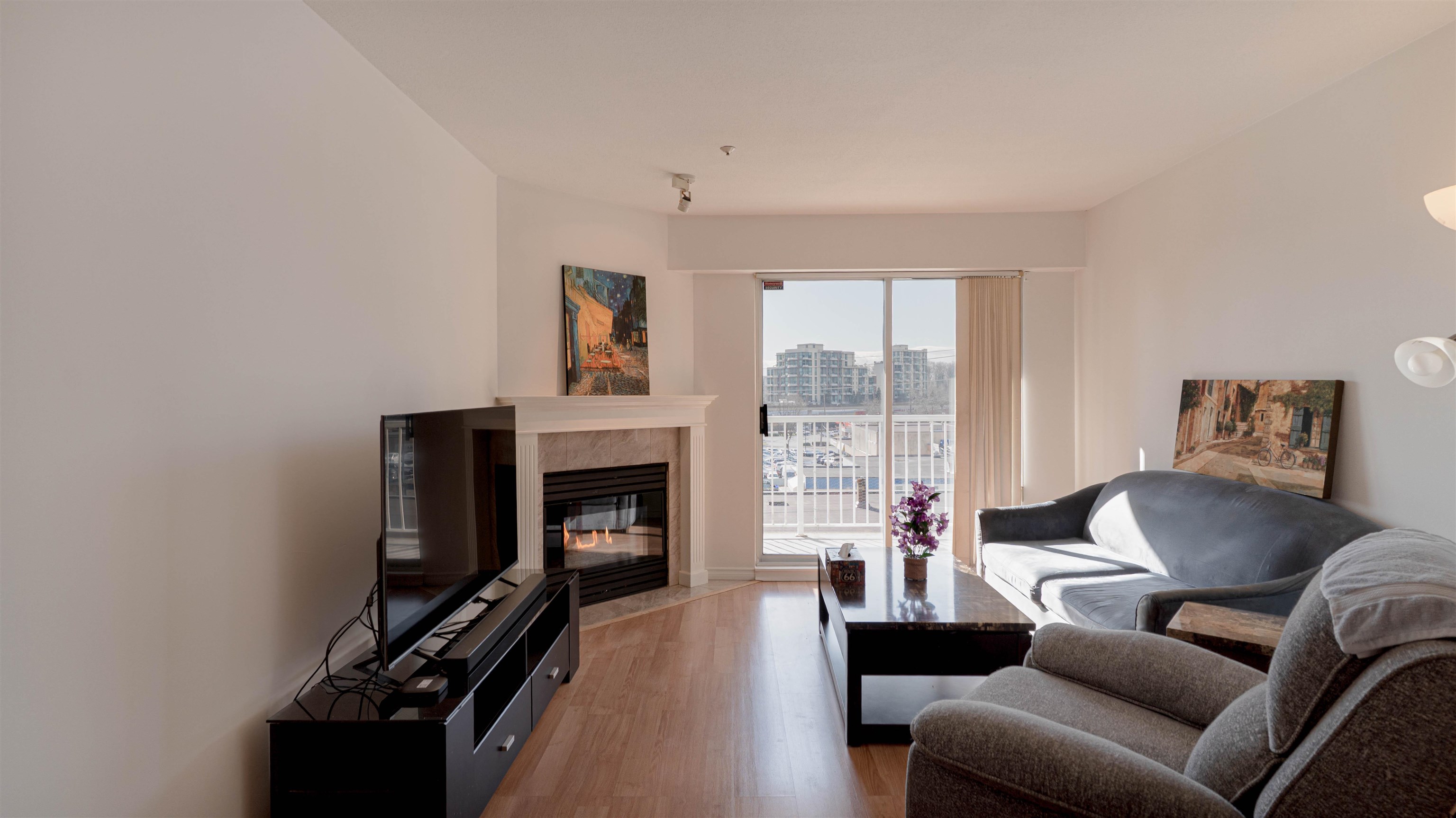 Welcome to Queen's Terrace. This 1-bedroom home & a den offers an open-concept layout with a full-size kitchen and upgrades throughout. The spacious living room features a gas fireplace and sliding doors to a balcony overlooking a quiet, landscaped green space. Located on the quiet side of the building, the bedroom and living area enjoy excellent morning light. 1 full bathroom with natural cork luxury vinyl plank flooring and in-suite laundry. Pet and rental-friendly building, centrally located within walki...