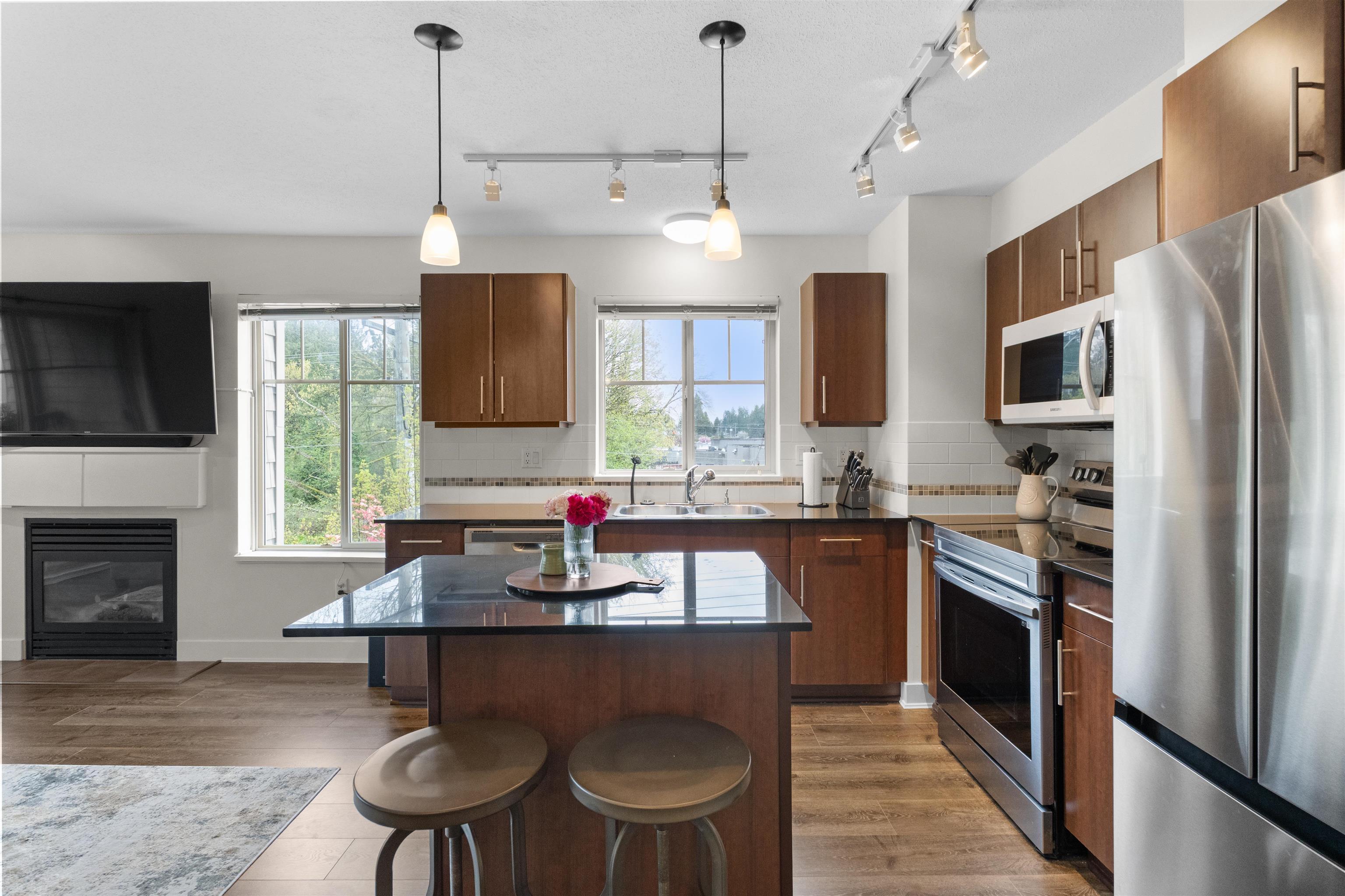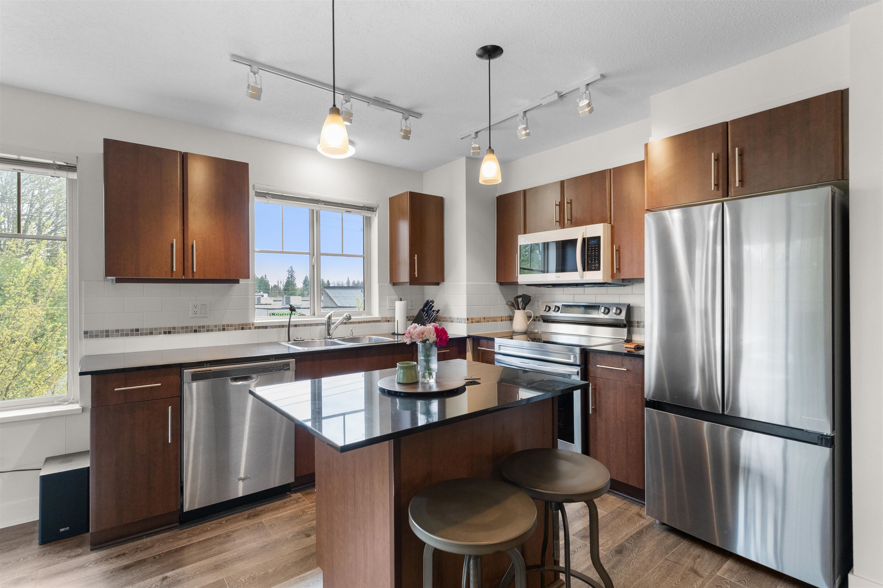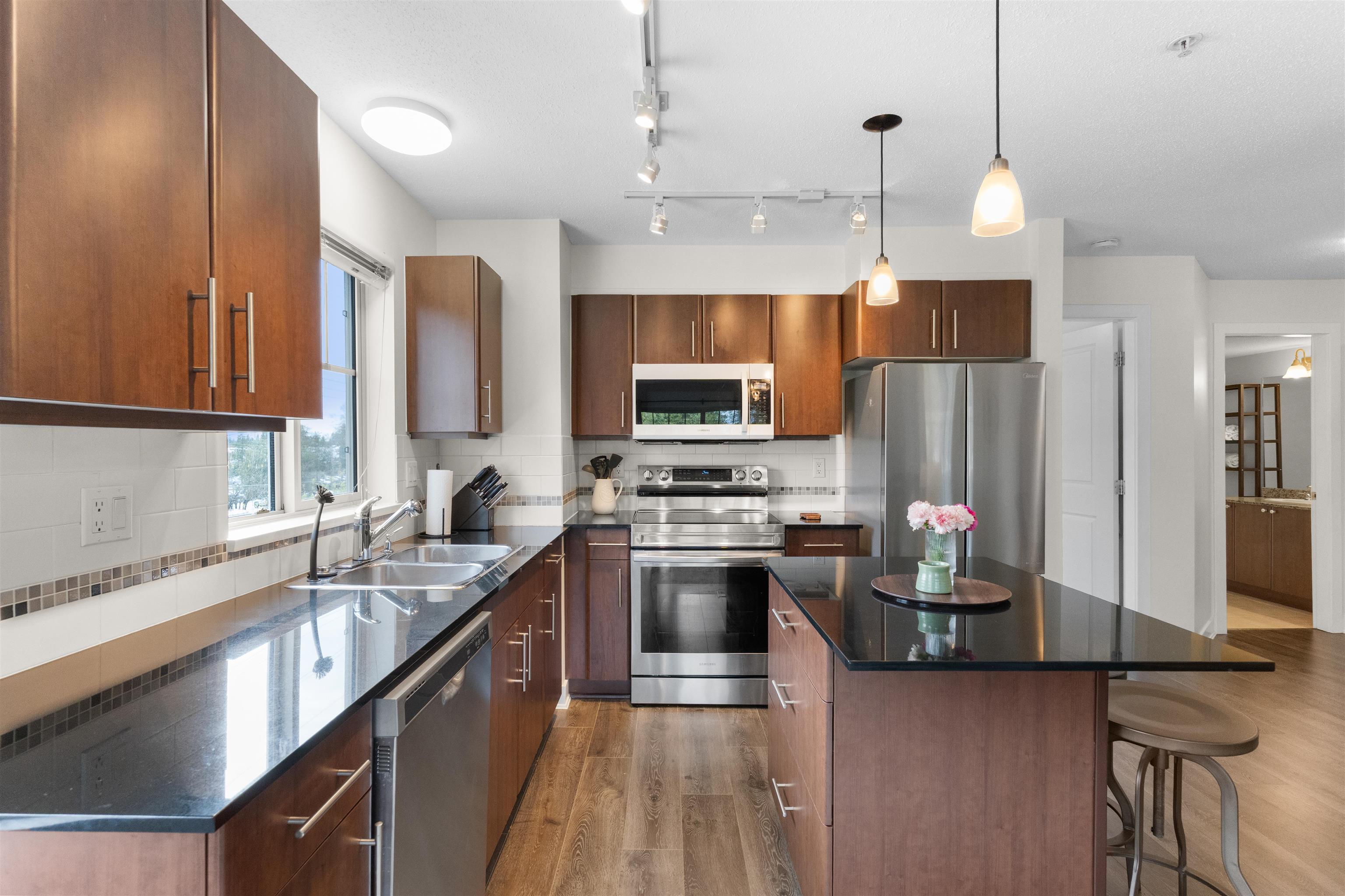 Welcome to centrally located WESTBROOKE, in NW Maple Ridge. This immaculately maintained 2-bedroom, 2-bathroom large corner unit features a fantastic layout & is perfectly positioned on the quiet side of the building. This bright & airy home is filled with natural light & boasts an open-concept living area & kitchen with granite countertops and ample cupboard space. This unit is truly ideal for both everyday living & entertaining. The primary is large, boasting a walk though closet to the ensuite & the 2nd ...