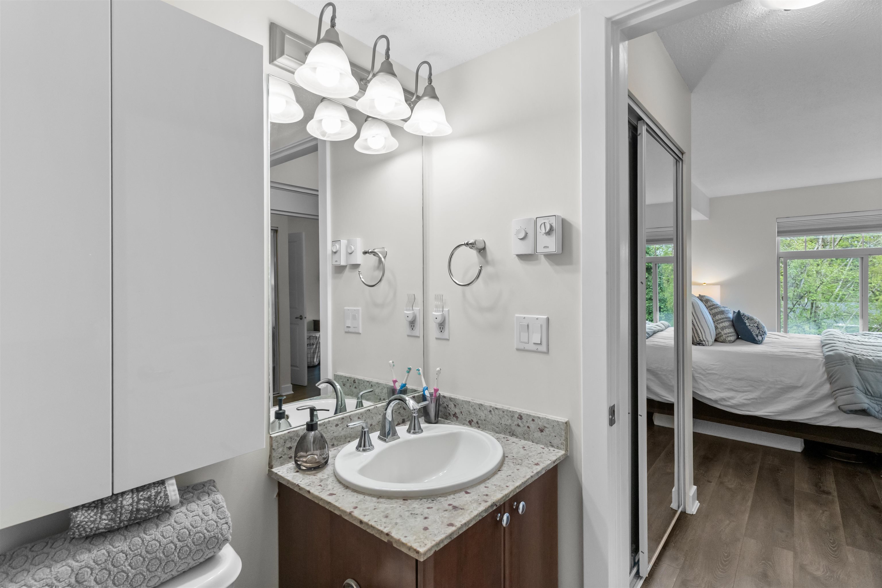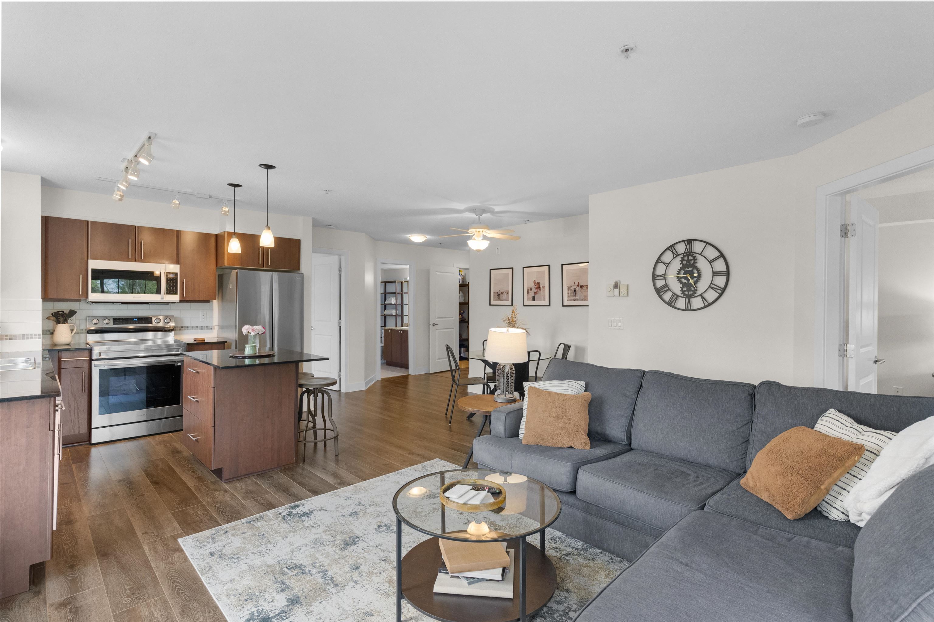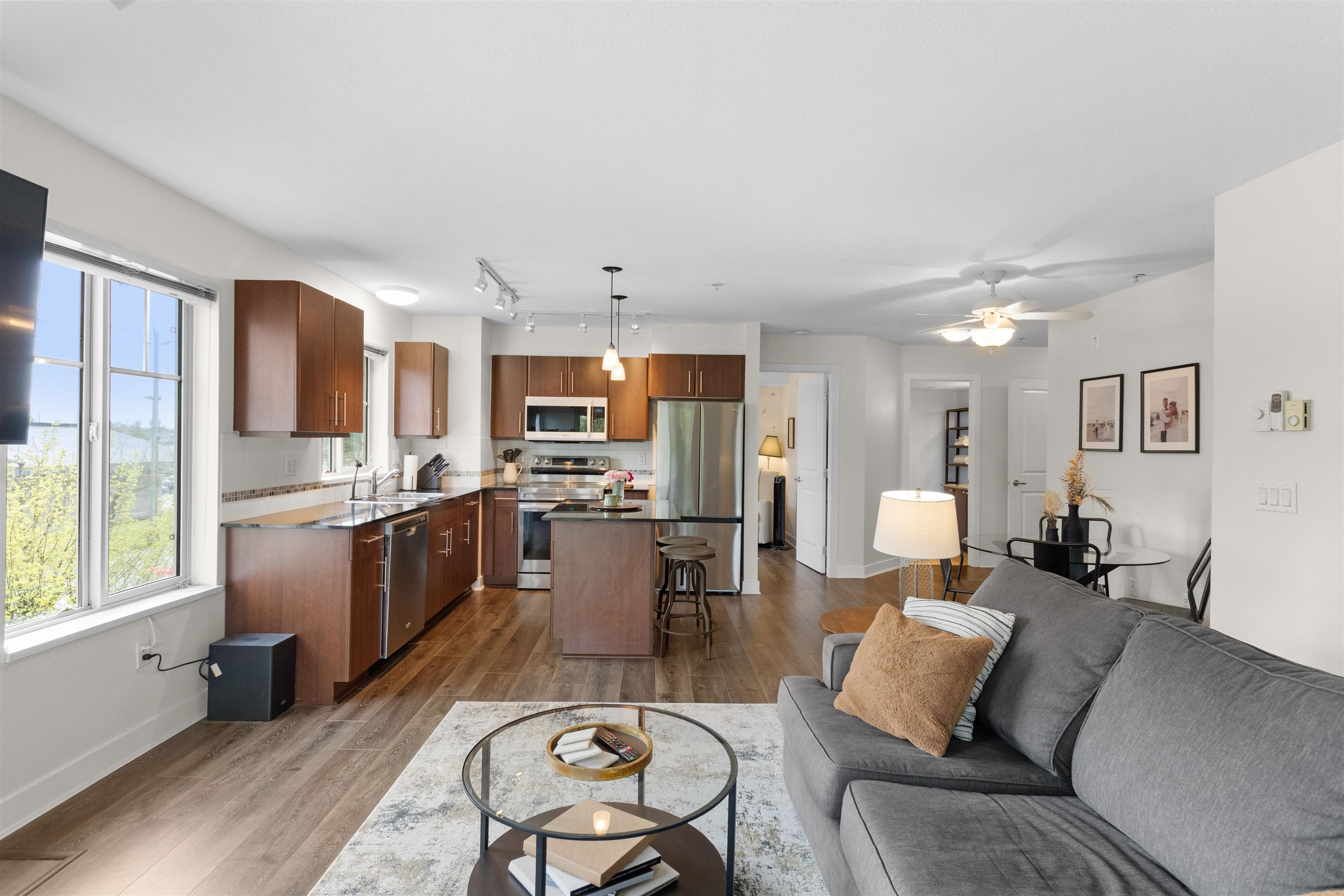 Welcome to centrally located WESTBROOKE, in NW Maple Ridge. This immaculately maintained 2-bedroom, 2-bathroom large corner unit features a fantastic layout & is perfectly positioned on the quiet side of the building. This bright & airy home is filled with natural light & boasts an open-concept living area & kitchen with granite countertops and ample cupboard space. This unit is truly ideal for both everyday living & entertaining. The primary is large, boasting a walk though closet to the ensuite & the 2nd ...