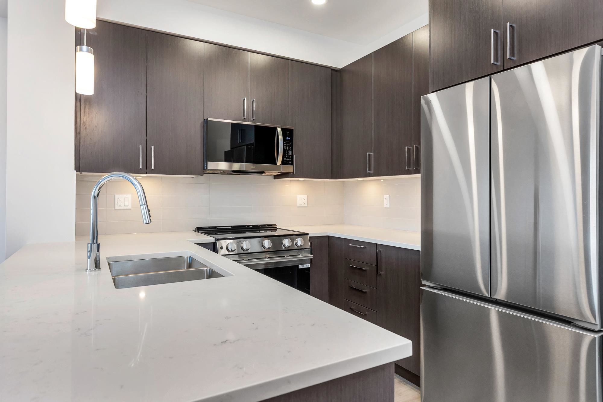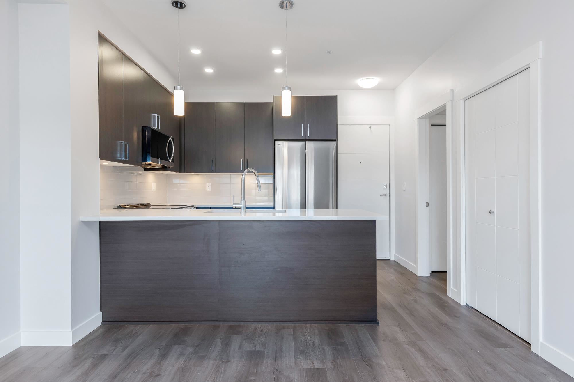 Welcome home to this stunning 730 sq. ft. 2-bed,1 bath condo, in beautiful Jacob. A new 6-storey, modern development in Central Abby! Tree-top views, and an abundance of natural light! Skillfully designed with beautiful finishes, and maximum use of space! Gorgeous kitchen with elegant and classic dark cabinetry, quartz counter tops, under-mount lighting,S/S appliances, soft-close drawers.Upgrades incl. gorgeous laminate floors and 2x6 micro locker. Beautifully landscaped, with a 'gathering' space, plus a sa...
