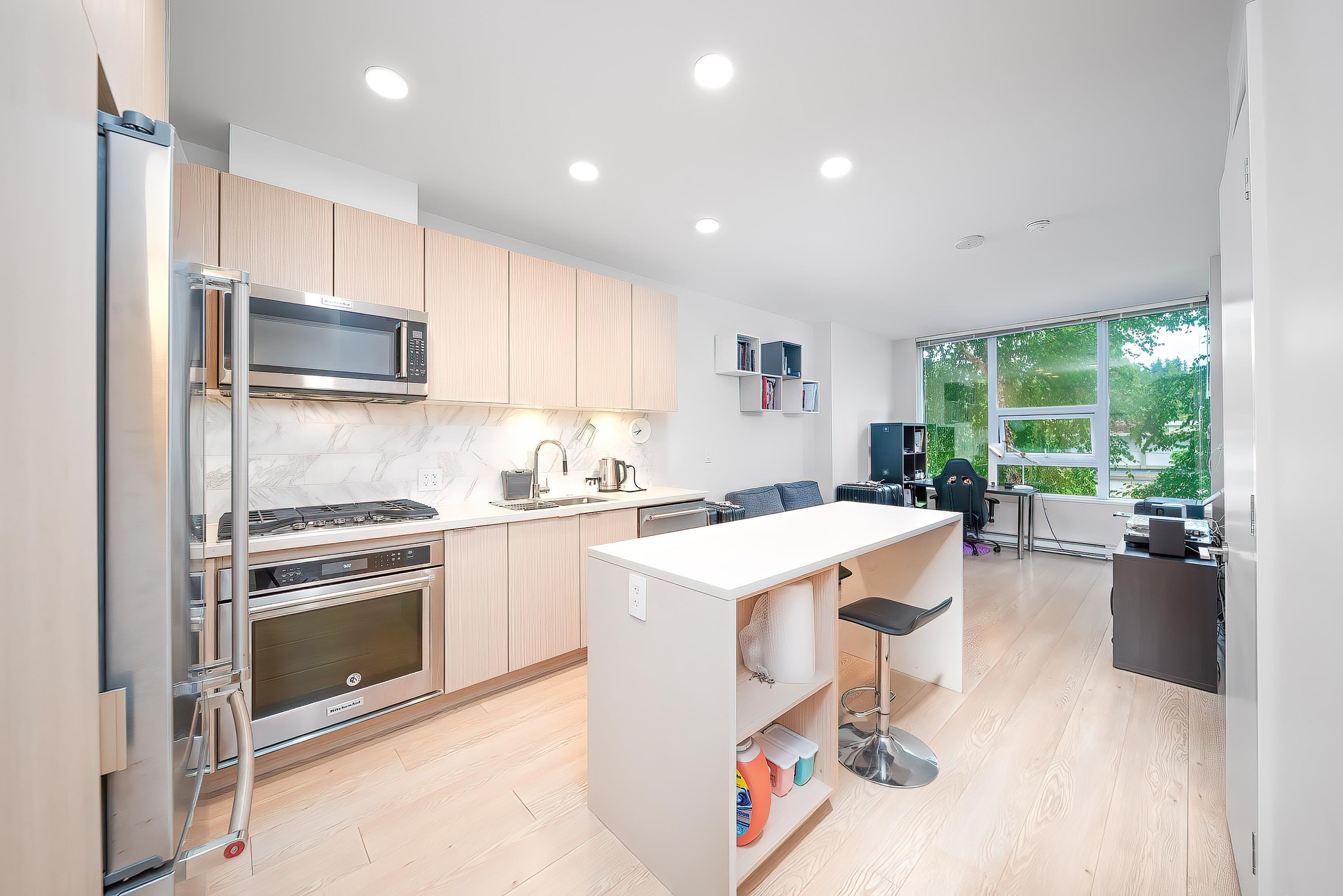 Beautiful 1-bedroom home at Brooksmere by Onni, ideally located near North Road and Lougheed Town Centre. This cozy residence faces the quiet inner street with greenery views and features 9-ft ceilings, laminate flooring, quartz countertops, a large island, and KitchenAid appliances with gas range. Amenities include concierge, guest suite, kids’ playroom, veggie garden, gym, yoga/yoga room, media and games lounges, party room, and business center. Comes with 1 parking and 1 storage locker — perfect for both...