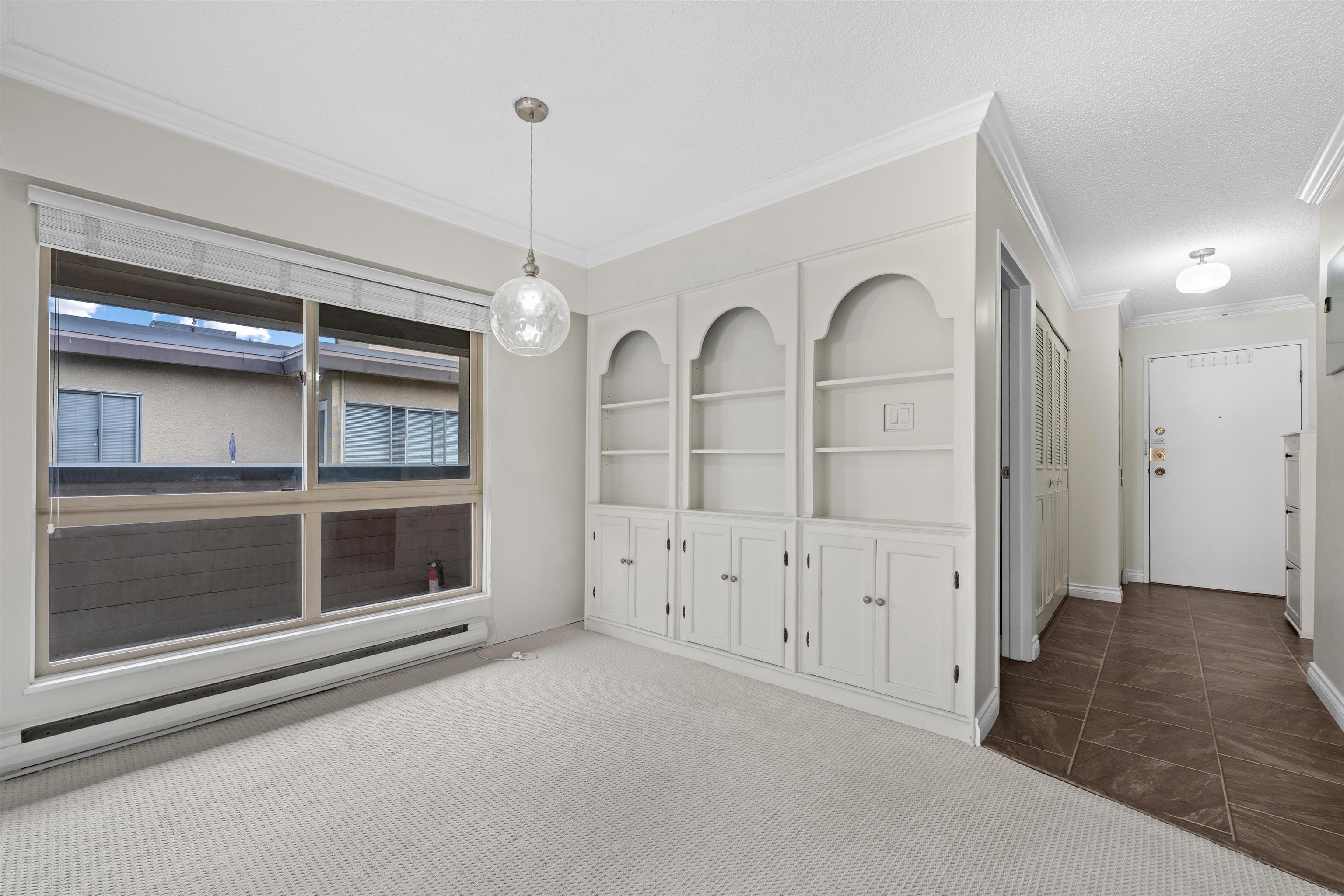 Welcome to La Belle Court. This TOP FLOOR over 700 sq/ft 1 bedroom unit offers a very efficient floor plan and south facing covered patio. The suite itself has a huge living and dining space, large bedroom that easily accommodates a king sized bed, ample closet space, insuite laundry and partially updated bathroom and kitchen with newer appliances and granite counters. Well maintained partially rainscreened building with upgrades incl siding, windows & sliding doors (2000 & 2003), roof (2019), pipes (2000)....
