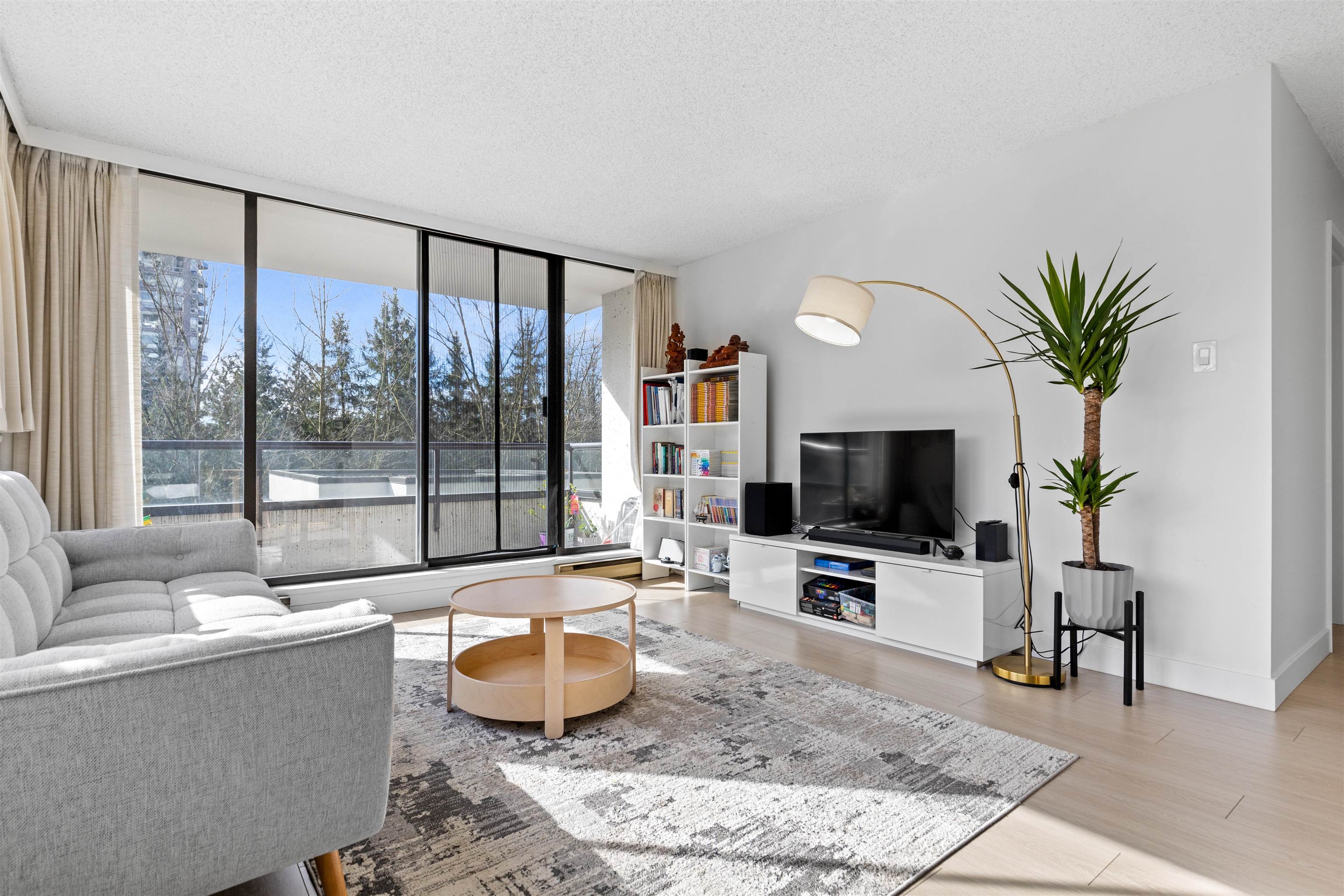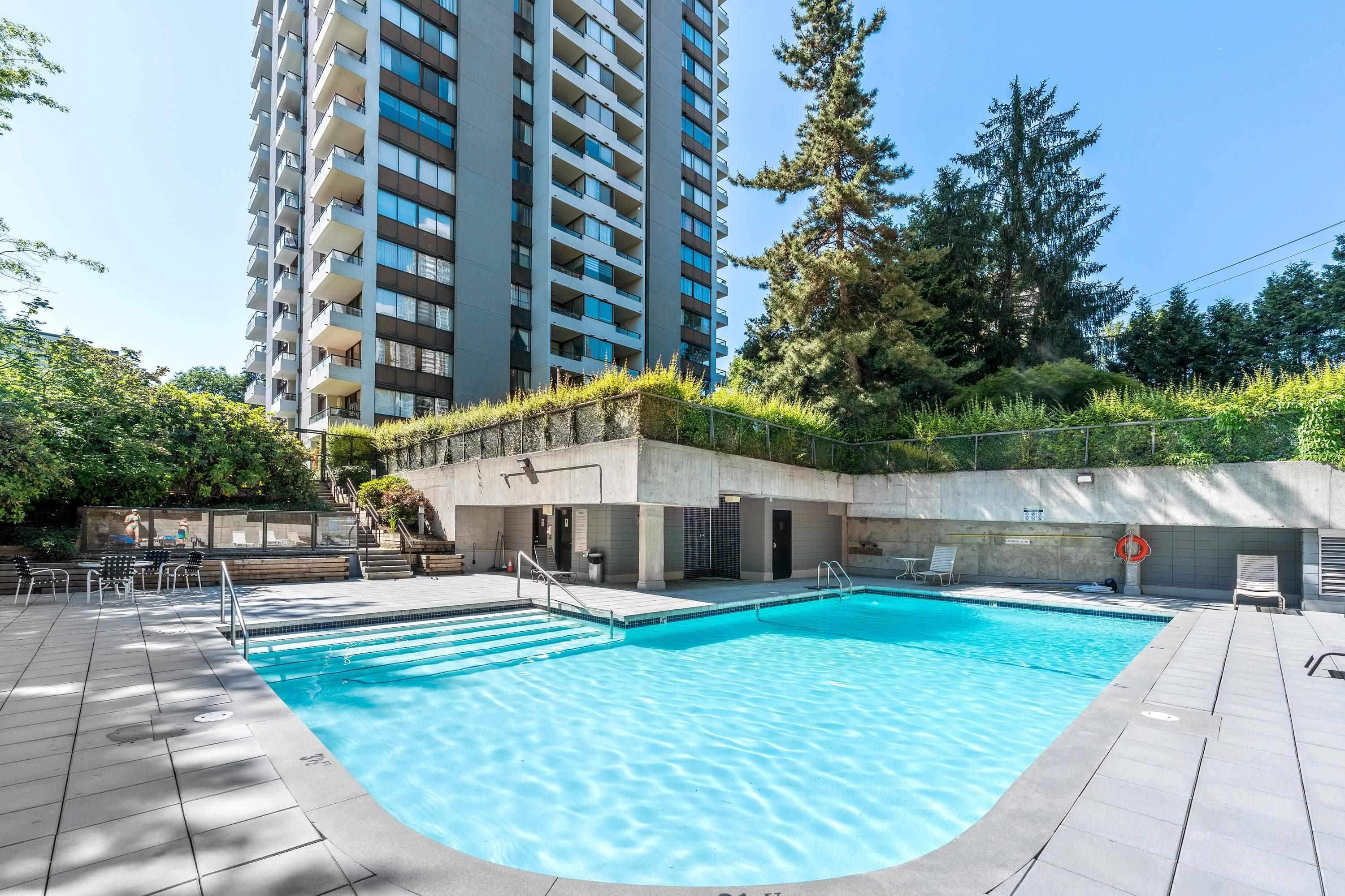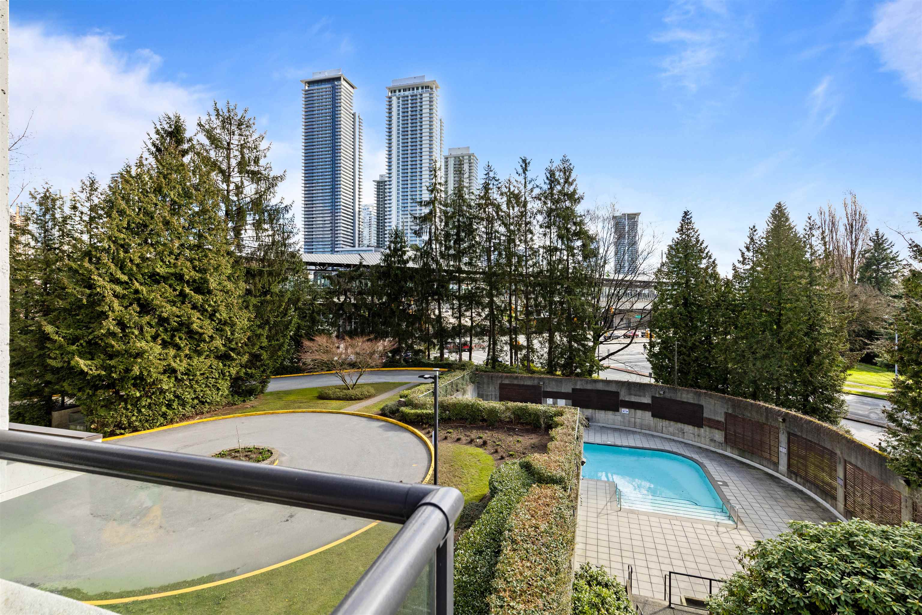 Welcome to Concorde Place! This 2-bedroom CORNER unit offers exceptional privacy with bedrooms thoughtfully positioned on opposite sides. Enjoy a peaceful, southeast-facing outlook from your spacious covered balcony overlooking lush greenery and the outdoor pool—perfect for relaxing or entertaining. Inside features new washer/dryer, in-suite laundry, granite kitchen countertops, & upgraded laminate flooring with premium underlay. Hot water included in maintenance fee ! Residents enjoy an outdoor pool, sauna...