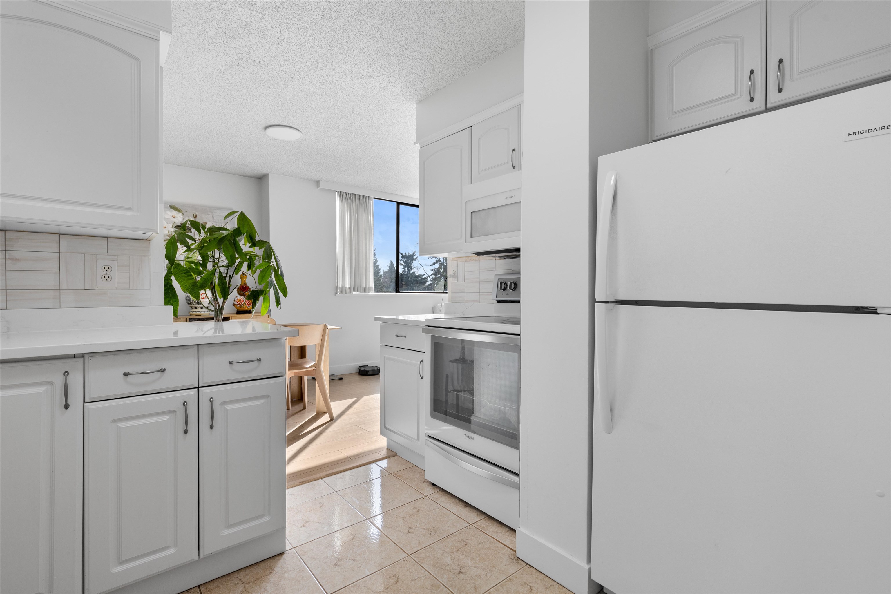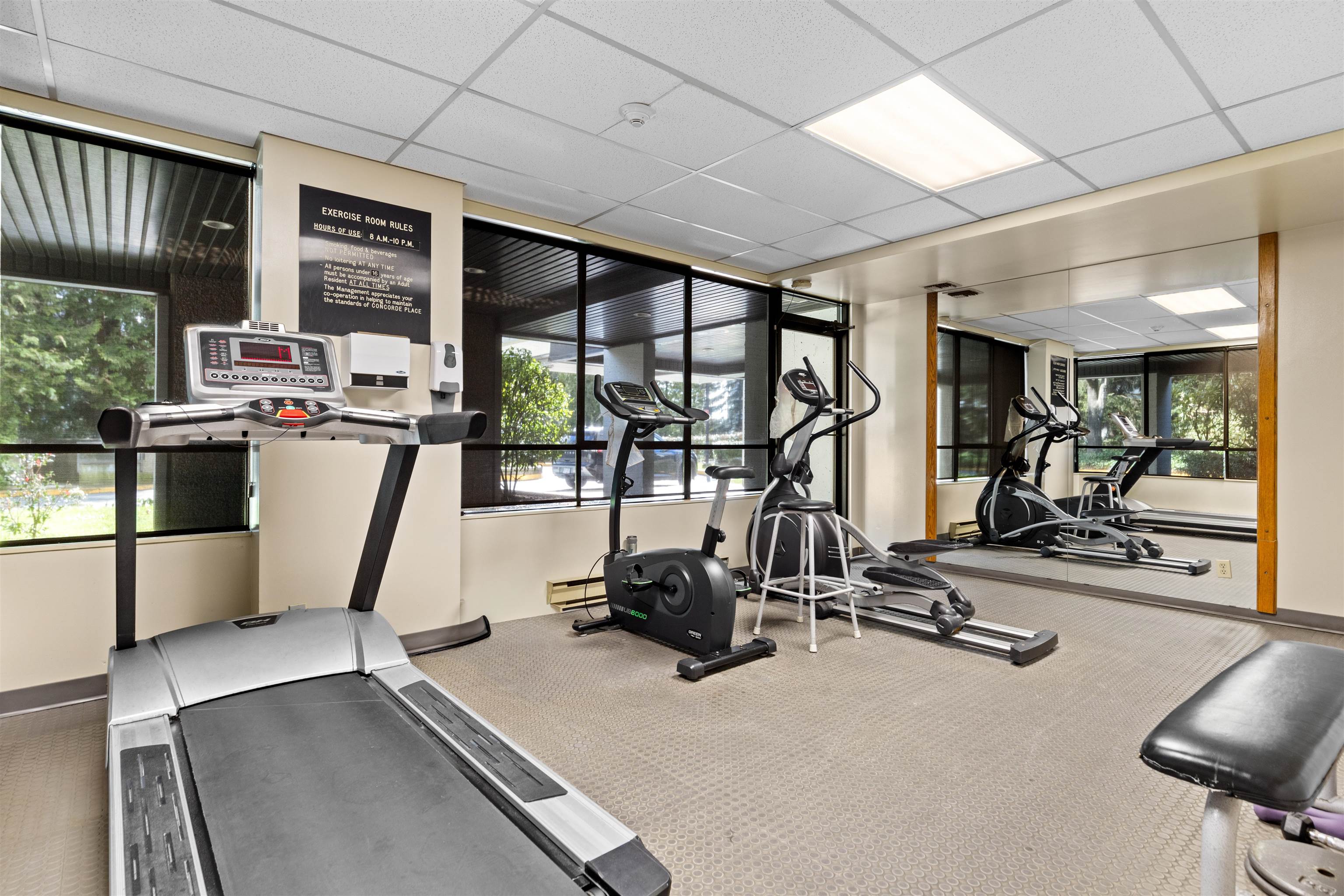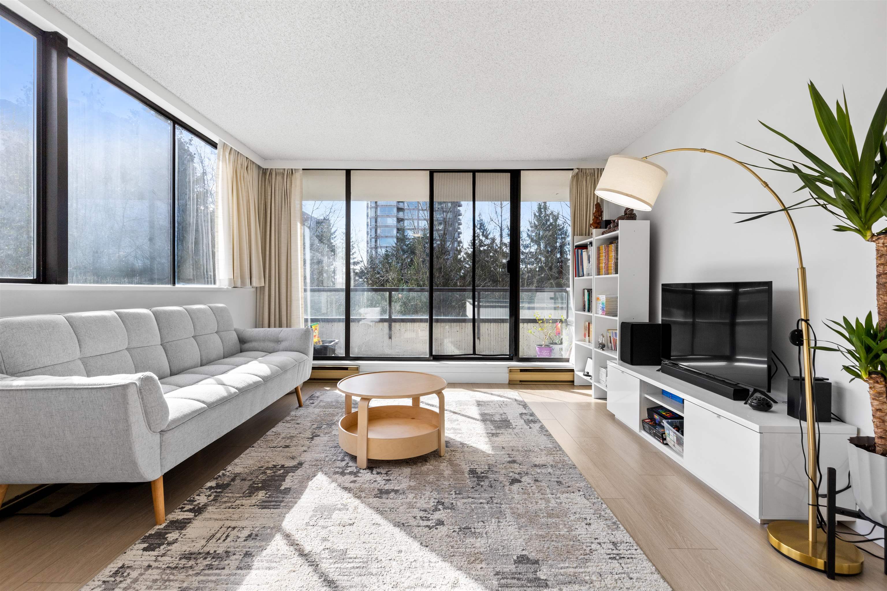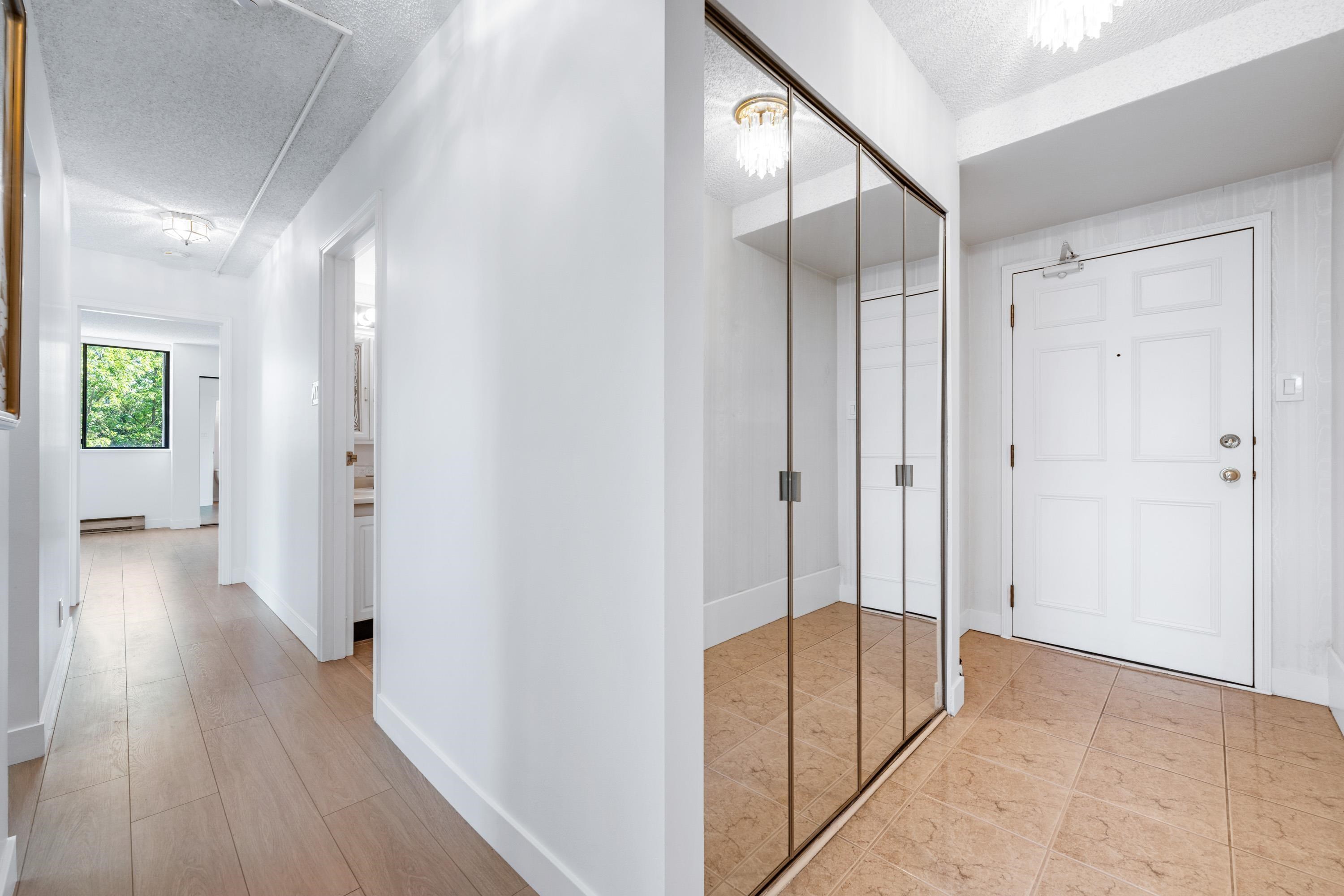 Welcome to Concorde Place! This 2-bedroom CORNER unit offers exceptional privacy with bedrooms thoughtfully positioned on opposite sides. Enjoy a peaceful, southeast-facing outlook from your spacious covered balcony overlooking lush greenery and the outdoor pool—perfect for relaxing or entertaining. Inside features new washer/dryer, in-suite laundry, granite kitchen countertops, & upgraded laminate flooring with premium underlay. Hot water included in maintenance fee ! Residents enjoy an outdoor pool, sauna...
