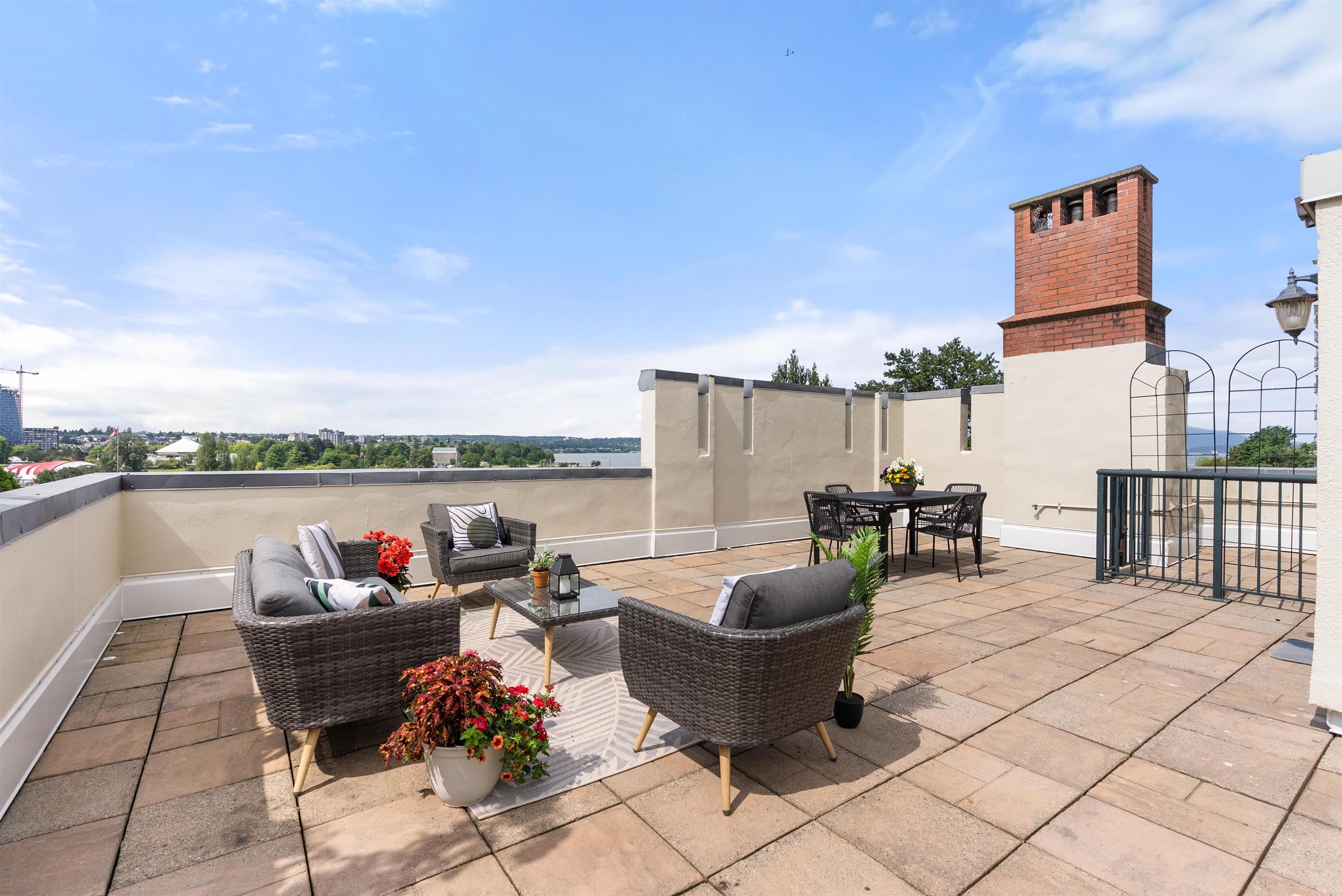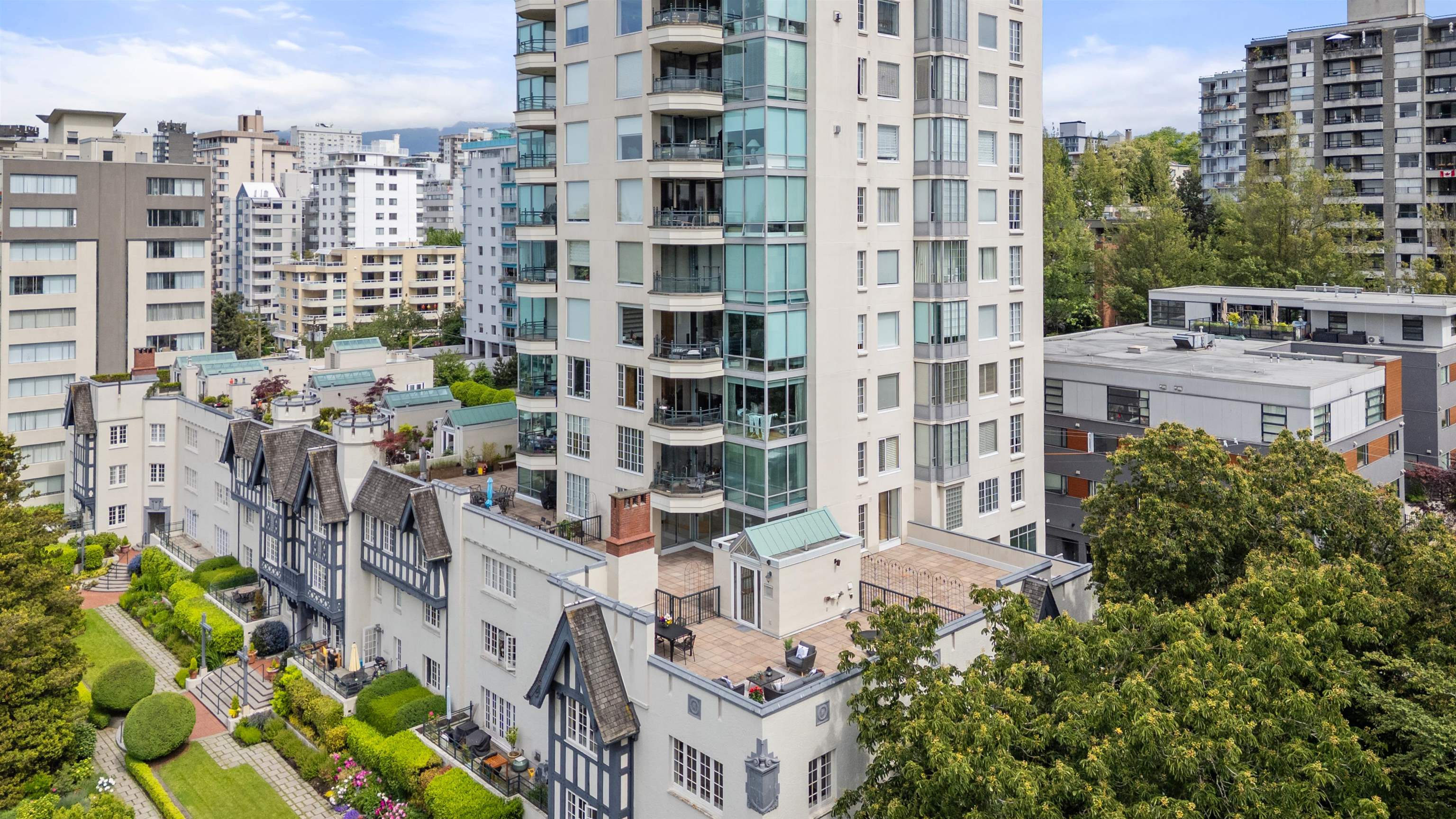 Commanding unparalleled ocean views from its show stopping private rooftop terrace, this sophisticated residence sits on the top level of the original and iconic Tudor Manor in Vancouver's sought-after West End. An entertainer's dream, the rooftop terrace offers an exquisite setting for sunset soirees or quiet enjoyment, framed by endless skies and coastal vistas. Inside, you will find two beds/baths, and a custom-designed wine room, all within a bright, southwest-facing layout that exudes elevated urban li...