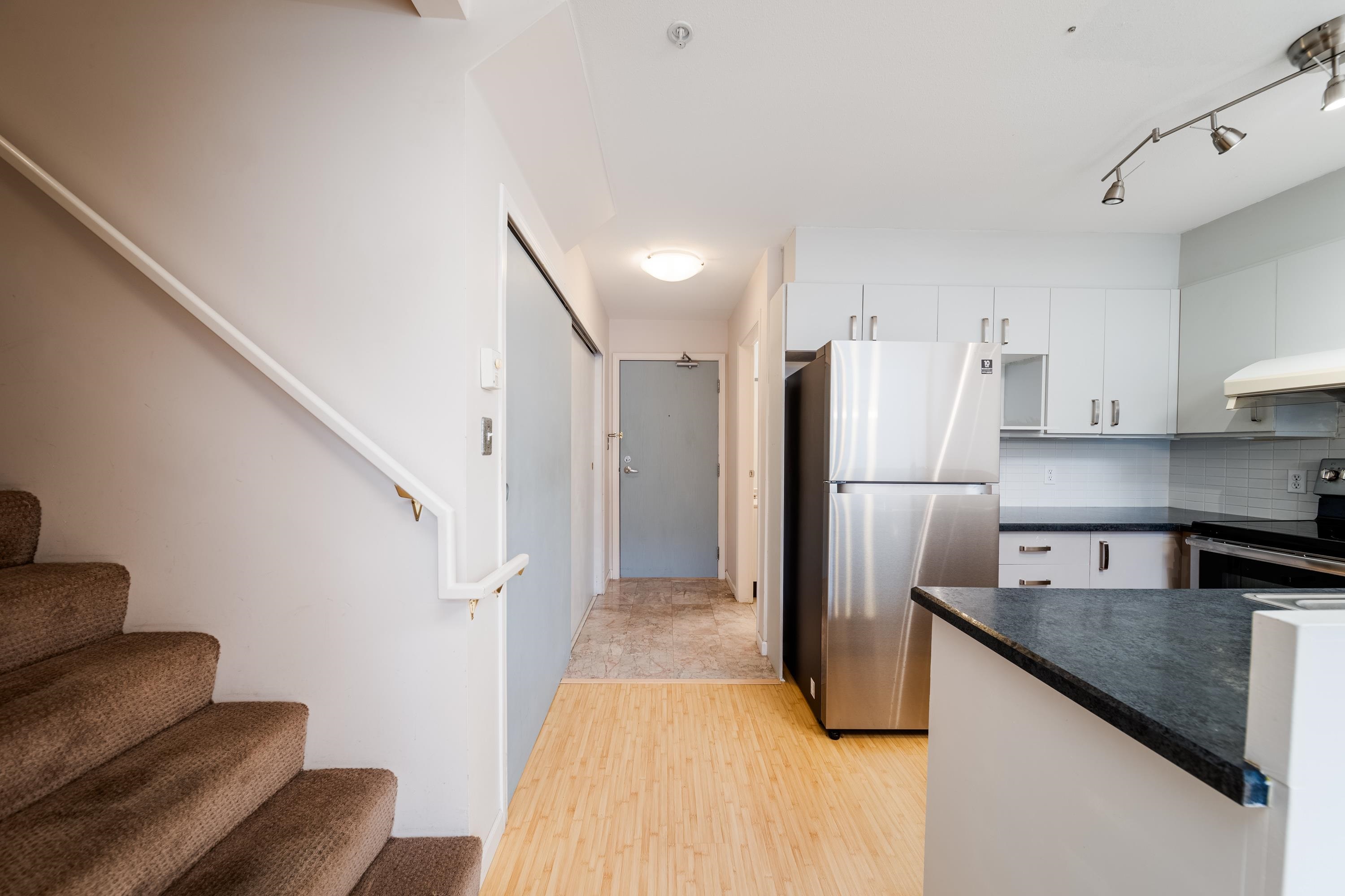 WOW! 1030sqft TWO LEVEL, TWO BEDROOM+LARGE DEN (could easily be a 3rd bedroom) Airy, light-filled living in one of Vancouver’s most sought-after neighbourhoods. Soaring 17-ft ceilings in the living room & oversized window banks flood the space with natural light. Bamboo flooring, a contemporary & highly functional kitchen with generous cupboard & counter space, two 4-piece bathrooms, a cozy gas fireplace, & the convenience of in-suite laundry. This well-maintained, pet-friendly building features a proactive...
