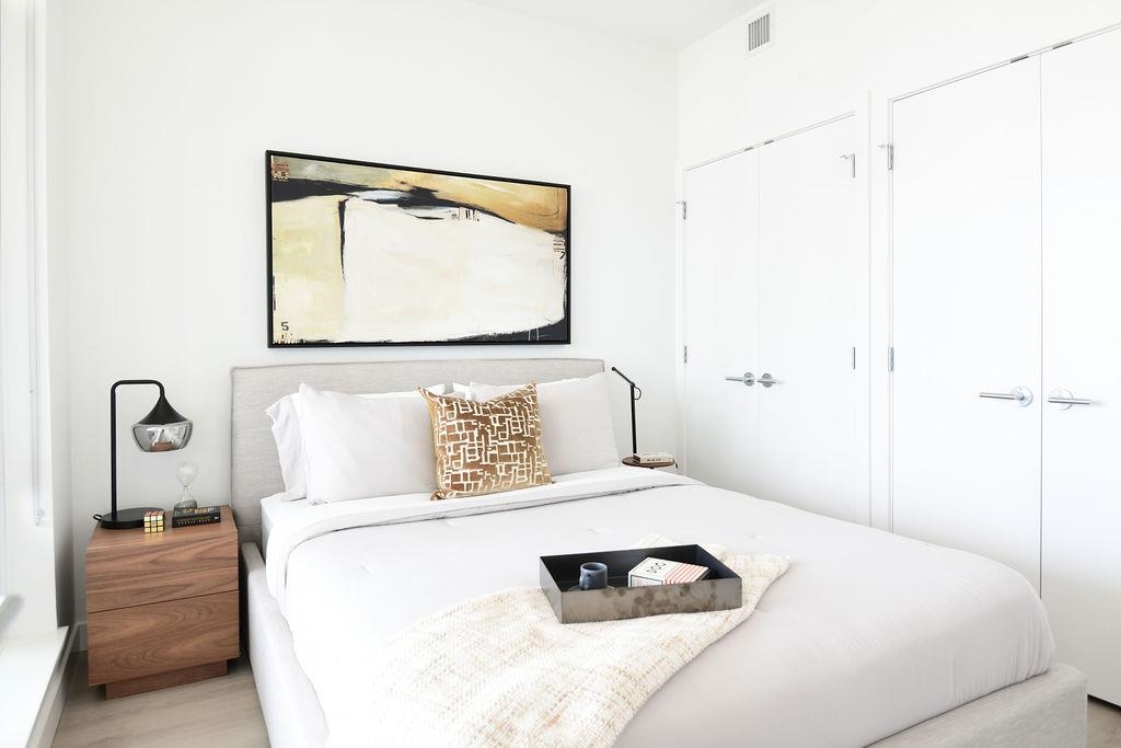 This thoughtfully designed 2-bedroom "mingler" layout offers bedrooms on opposite sides of the living area for enhanced privacy and a greater sense of space. Overlooking the peaceful courtyard, the home features an open-concept kitchen with a large waterfall island, full-size appliances, and seamless flow into the living and dining area. The primary bedroom includes a walk-in closet, while the secondary bedroom boasts a full wall of closet space. Enjoy hotel-inspired amenities including a Concierge, Fitness...