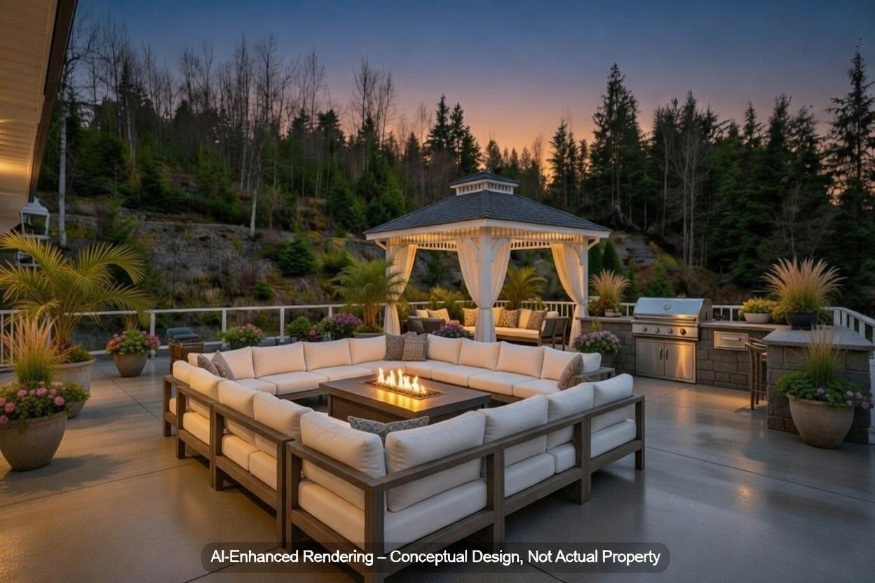 Truly one of a kind multi-generational estate on 2.72 acres in Mission! Castle-like custom build with Turret, 5,273 sqft home w/ 8 bedrooms & 6 bathrooms. Tucked behind lush greenery & gates w/ lazy river, pond, fire pit, garden, biking trails & play structure for kids. Built for 3 families w/ flexible suites for living or income! (Downstairs) 3-bed suite w/ full bath + (unfinished ensuite) massive open great room & in-floor heating throughout. (Entry level) 2-bed 2-bath suite w/ great room. (Upper) 3 beds,...
