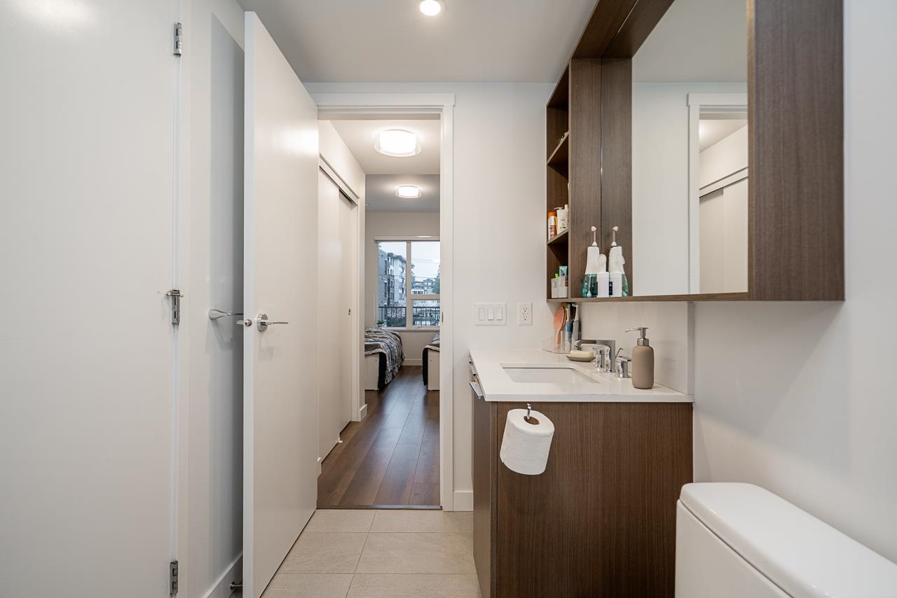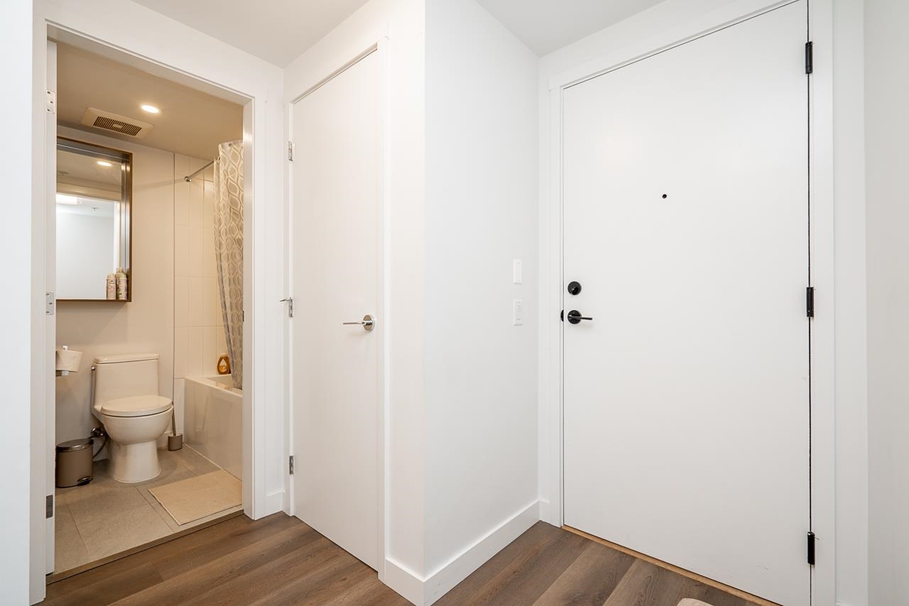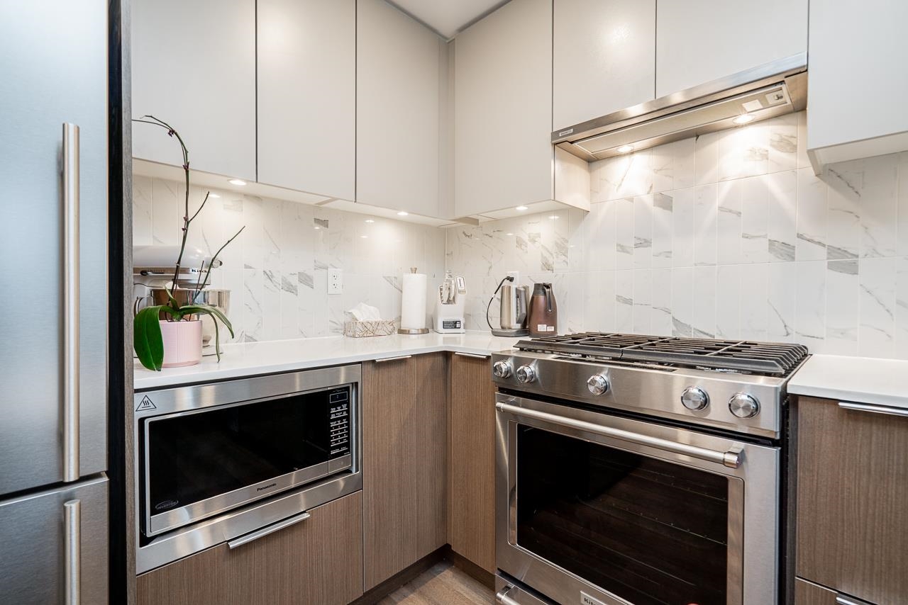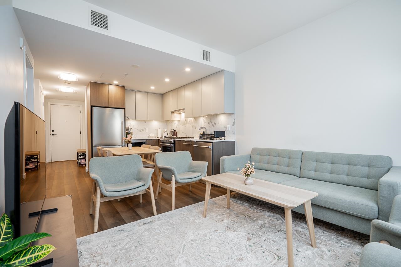 Experience modern living in the stunning Port & Mill development. This spacious 1-bedroom plus den features a bright, open interior and a high efficiency heat pump for year-round heating and cooling comfort. The gourmet kitchen shines with high-end appliances, perfect for the home chef, while the versatile den serves as an ideal home office or nursery. Residents enjoy premium amenities, including a fully equipped gym, clubhouse, and a safe playground. This location is unbeatable-just steps from Burquitlam S...