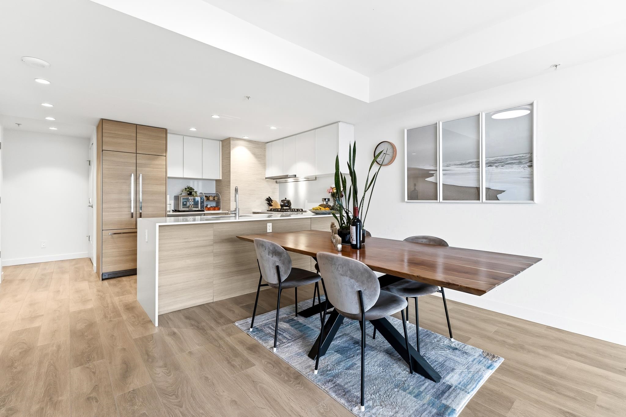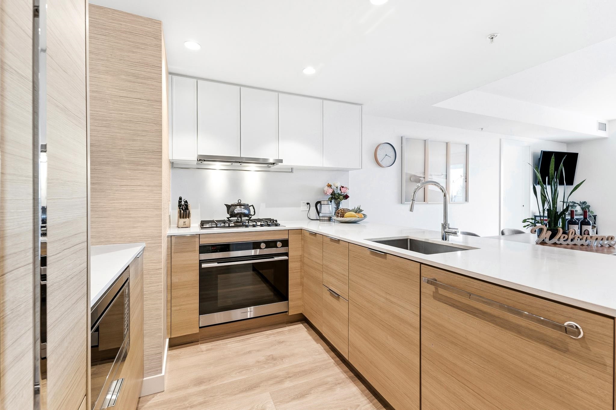 Welcome to Beedie’s Heights! This bright 2-bedroom, 2-bathroom corner home offers stunning mountain and river views. Enjoy the spacious wraparound balcony with breathtaking panoramic scenery—perfect for relaxing or entertaining. Same-floor parking is conveniently located next to the unit. Features include high-end Fisher & Paykel appliances, ample closet and storage space, and floor-to-ceiling windows that fill the home with natural light. Residents enjoy excellent amenities including a gym, rooftop garden ...