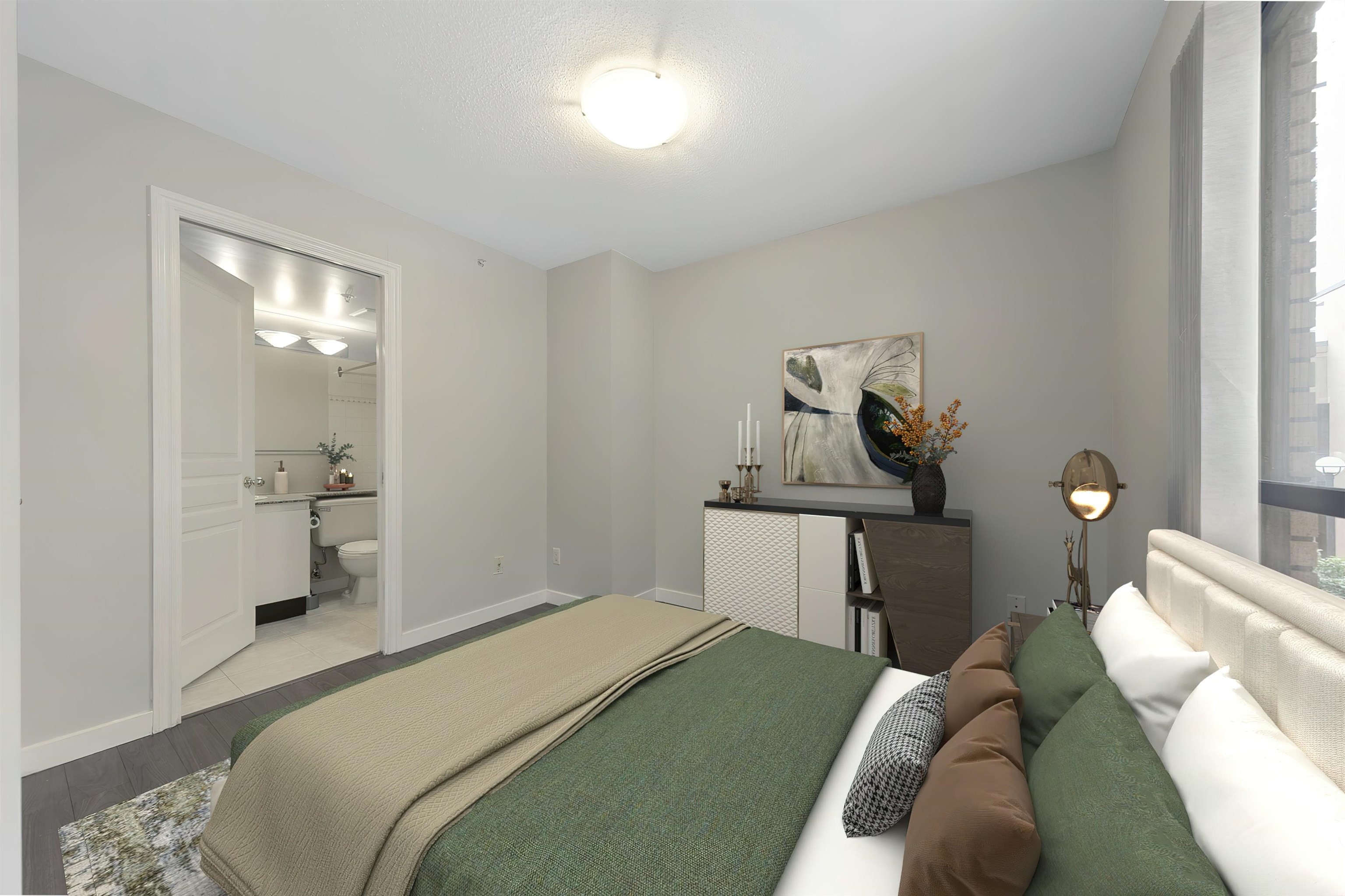Excited to introduce The Genesis! This 1 Bed + LARGE Den + in-suite storage home on the quiet side of the building offers excellent FLEXIBILITY, with a den large enough to serve as a junior SECOND bedroom or spacious home office. NEW flooring and FRESH paint create a move-in ready space ideal for both living and investing. Proudly invite guests to your GRAND renaissance lobby with elegant art and painted ceilings, or enjoy EXTENSIVE amenities including indoor pool, hot tub, sauna, 24hr concierge, guest suit...