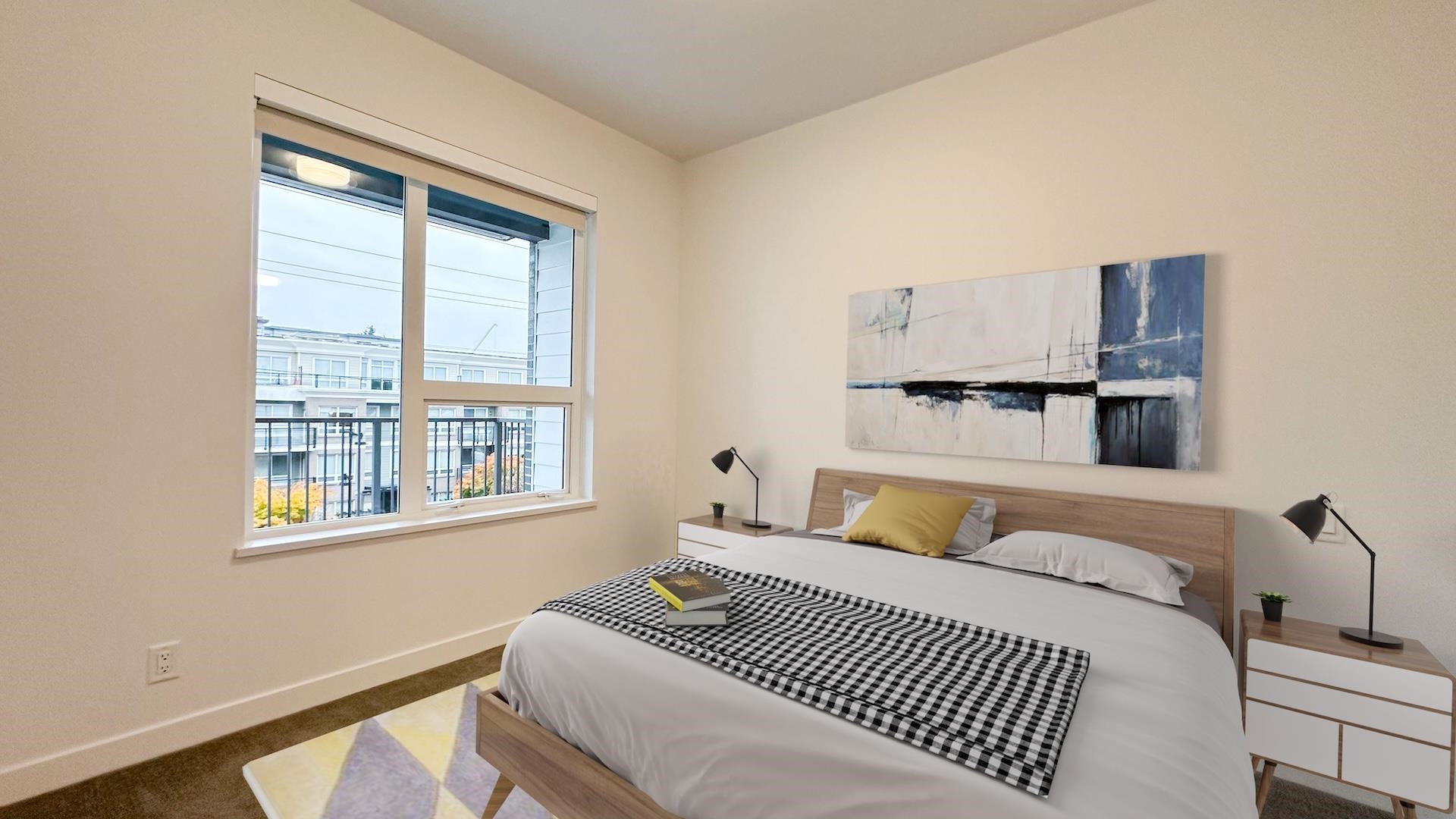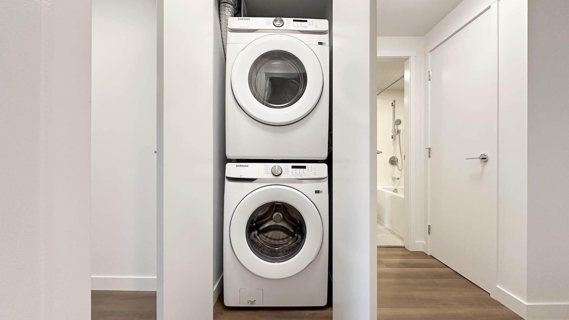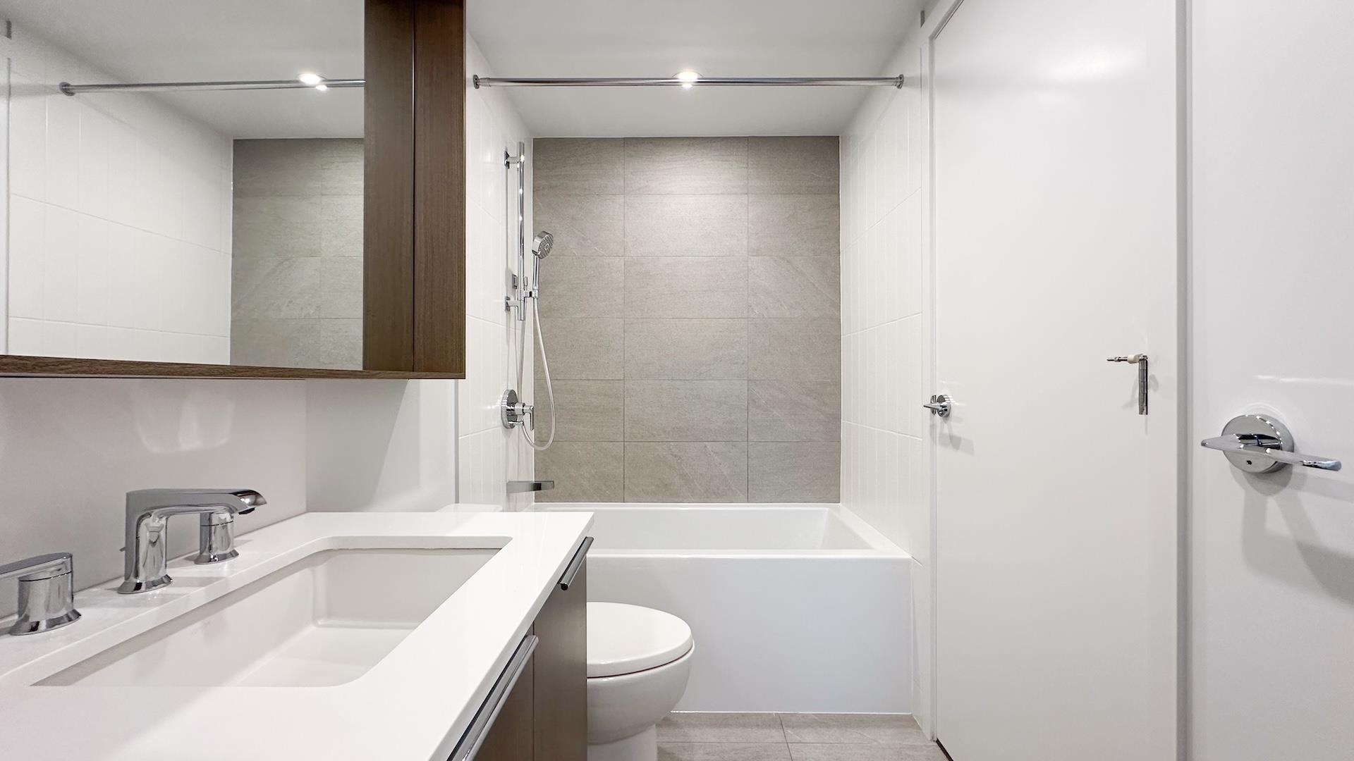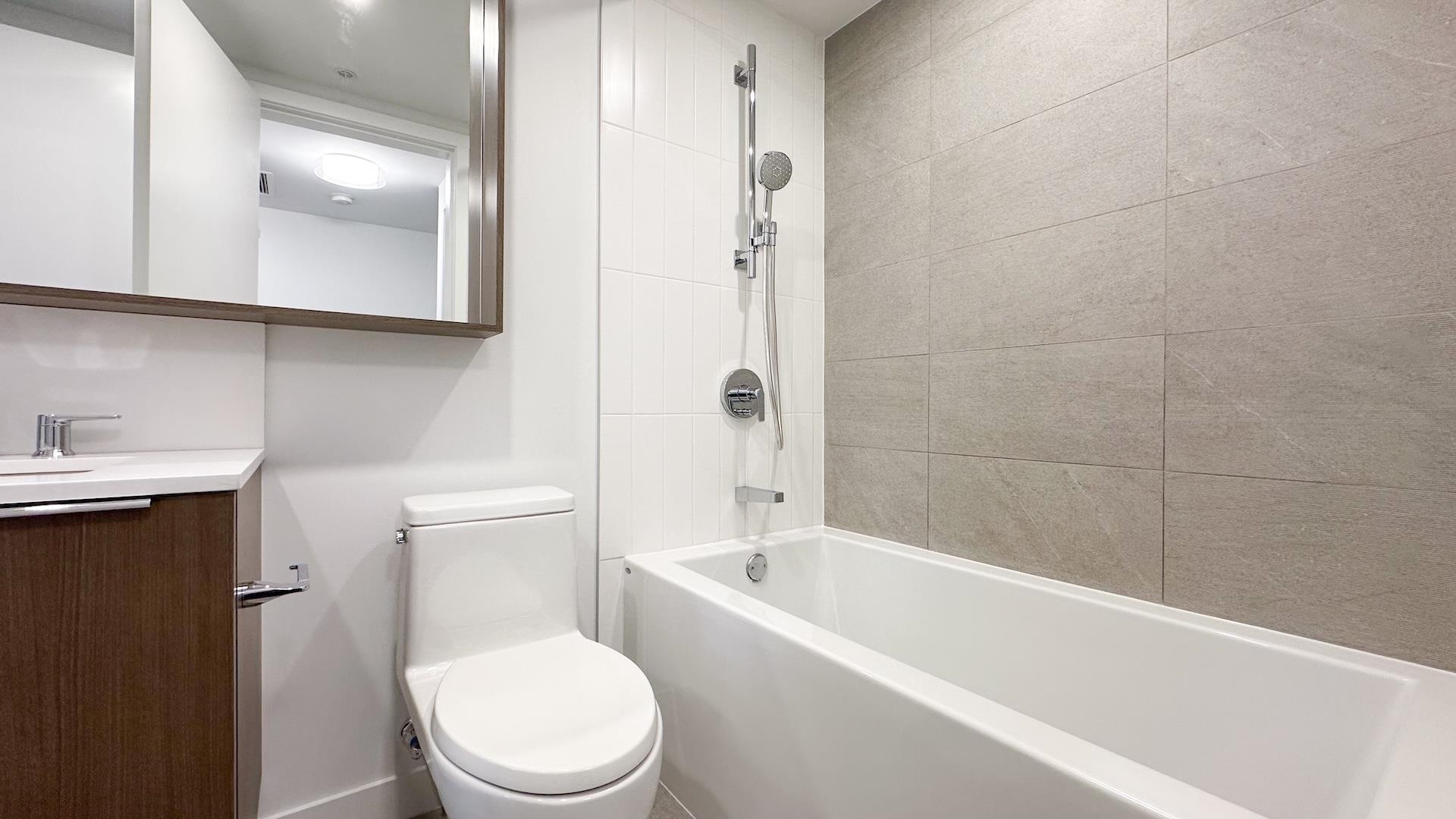 Welcome to Port & Mill built in 2023 by Streetside, part of reputable Qualico. S facing 1BR + den home feels brand new & features AC! L-shaped kitchen features full size Kitchen Aid & Blomberg appliances & quartz countertops. BR offers spacious walk-thru closets & cheater ensuite access to bathrm. Den is large enough for comfortable single bedrm, nursery, TV room or office. Full size washer/dryer. Parking features level 2 EV charger - just plug in your car! Storage & Bike locker. Amenities incl. caretaker; ...